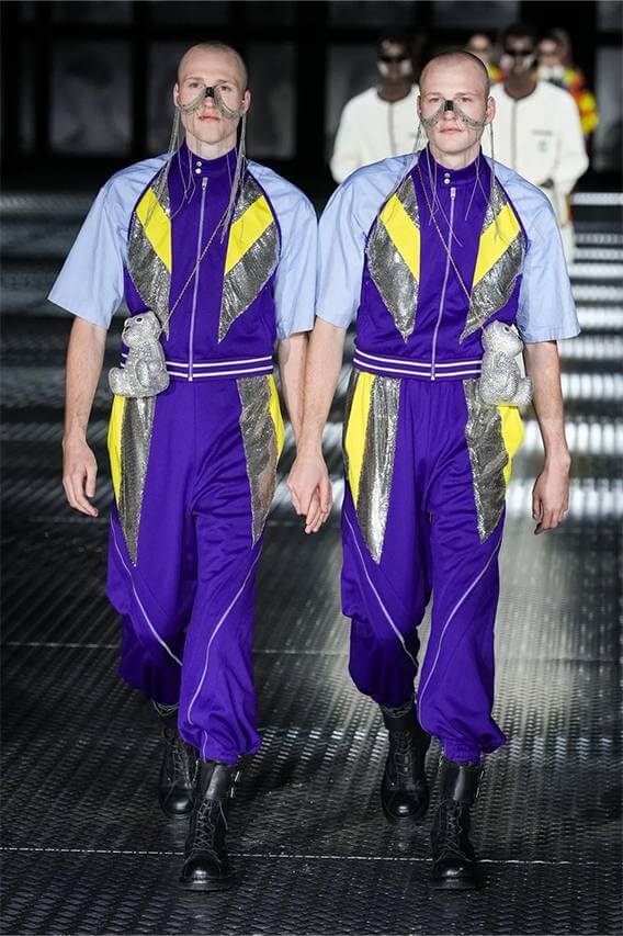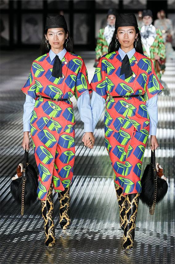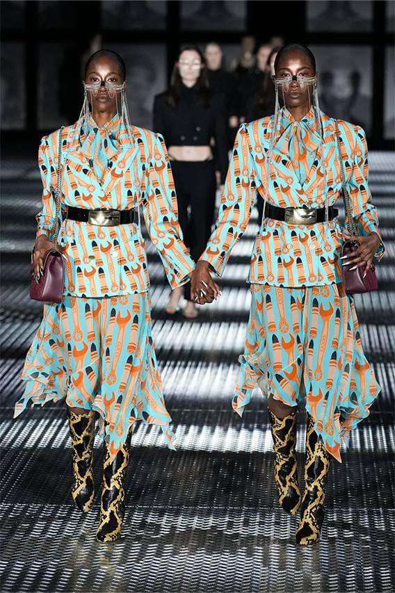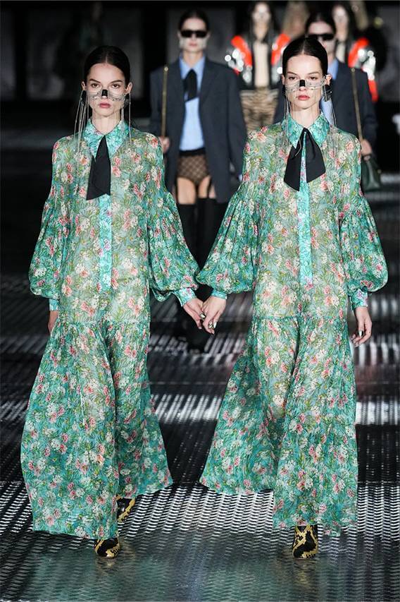韓國人氣女星 IU 也登陸 GUCCI SS23 大騷現場,為大騷打響頭炮,率先惹來一眾媒體爭相拍照報導。今季 ALESSANDRO MICHELLE 以 GUCCI TWINSBURG 命名,使用了68對雙生兒模特兒,對稱感十足,再次震憾我們的感觀。「我有兩位母親: ERALDA 媽媽和 GIULIANA 媽媽。兩位了不起的女性形影不離,二為一體。她們穿一樣的衣服,梳著一樣的髮型,共用同一個軀體,猶如鏡像倒影,映照出一模一樣的兩生花。那就是我的世界 ──不停地完美複製的世界。」