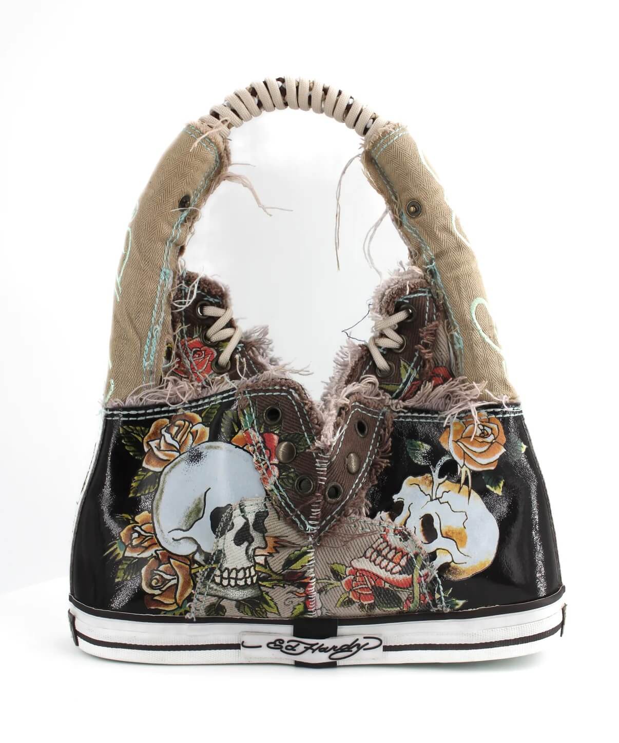 在 ALL AMIN 的手中,一雙雙來自 NIKE 、ADIDAS 、CONVERSE 及 REEBOK 等多個運動品牌,鋪滿歲月痕跡的運動鞋,拆解出其鞋舌、鞋面、鞋底、鞋帶部份,再利用各式拼接手法變成抹胸、背心、CORSET 、手袋、帽子及頭飾單品。