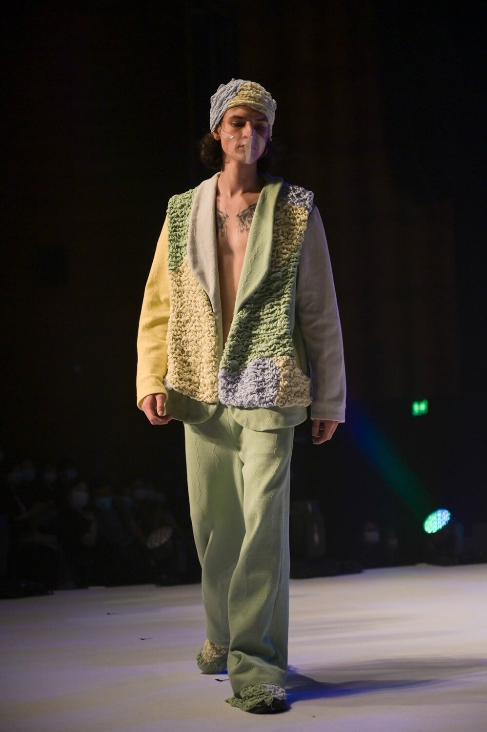 黎鈺嫻的畢業作品「WITHIN THE WATER ; WITHIN THE WAVES.」由她編織的布料製成,彈性極強且帶有水流觸碰肌膚的輕柔觸感。黎鈺嫻指整個設計過程耗時約半年:「這是我第一次以電腦機器製作布料,由每一條紗線開始決定,並反覆實驗改良,雖然花了不少時間,但卻感到相當享受。」
