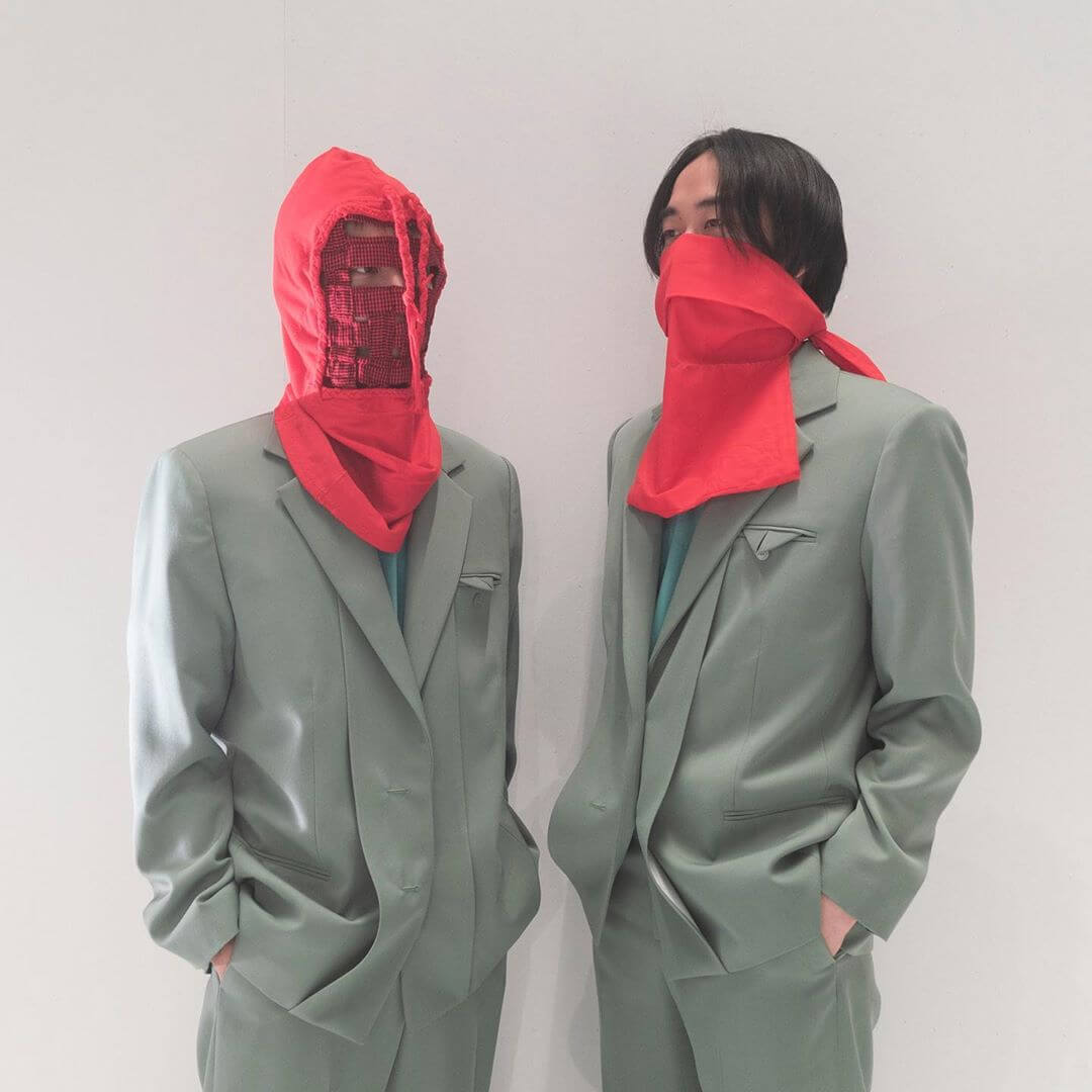 既然擁有復古味濃的西裝輪廓,向來搞怪的HYUKOH當然不會放過頭飾的設計。不但有假髮造型師河野富廣助陣,四人蒙面上陣的怪異頭套出自日本面具設計師SHIN MURAYAMA之手,SHIN MURAYAMA在個人社交網站上傳自己在設計頭套的過程照。有趣的是HYUKOH刻意在面具上標誌著吳赫寵物OYE的社交帳號,這頂頭飾原來是靈感源自愛犬。