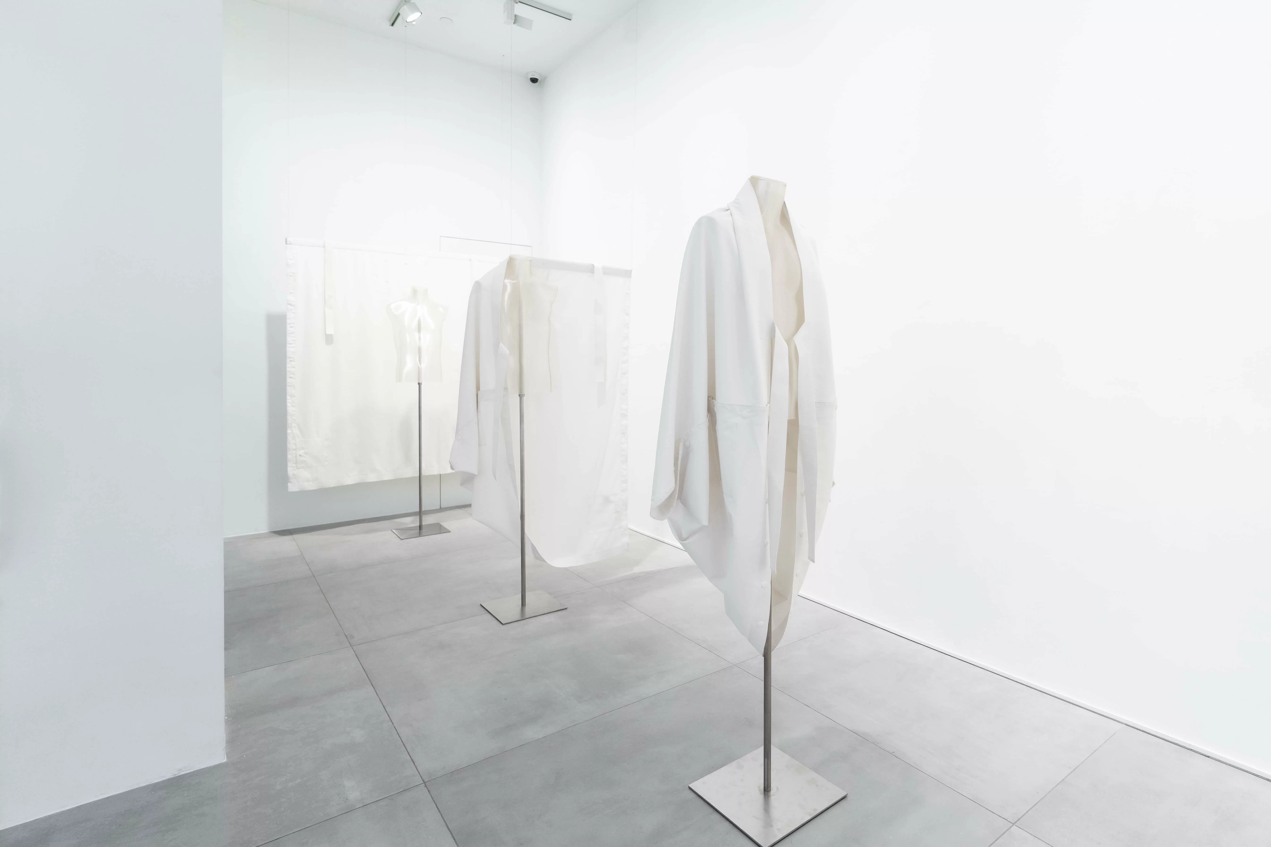 由三宅一生提出的「一塊布」(A Piece of Cloth)理念,不僅是服裝製作的起點,更是一種設計哲學——探索如何以最少的剪裁,讓布料在人體上自然勾勒出立體輪廓。由三宅設計工作室(MIYAKE DESIGN STUDIO, MDS)所打造的男裝品牌 IM MEN,近期於香港上環樂古道的 DOUBLE Q GALLERY 舉辦了一場特別的展覽《FLY WITH IM MEN》,展出其 2025 秋冬系列新作。是次展覽中不僅呈現最新服裝系列,更展示融合尖端科技與傳統織染工藝的原創面料,淋漓盡致地演繹出「一塊布」的無限可能。