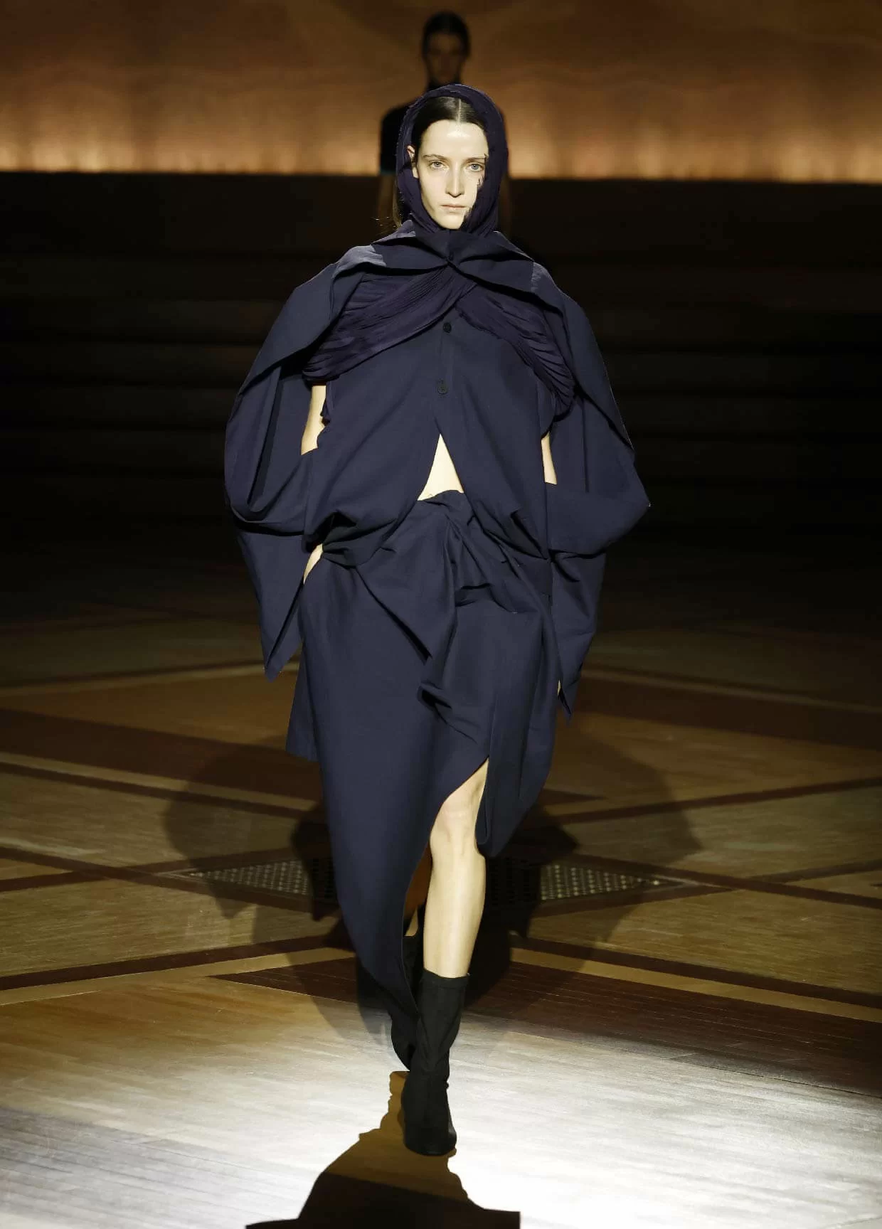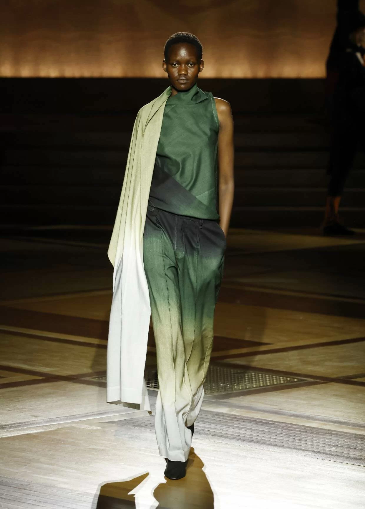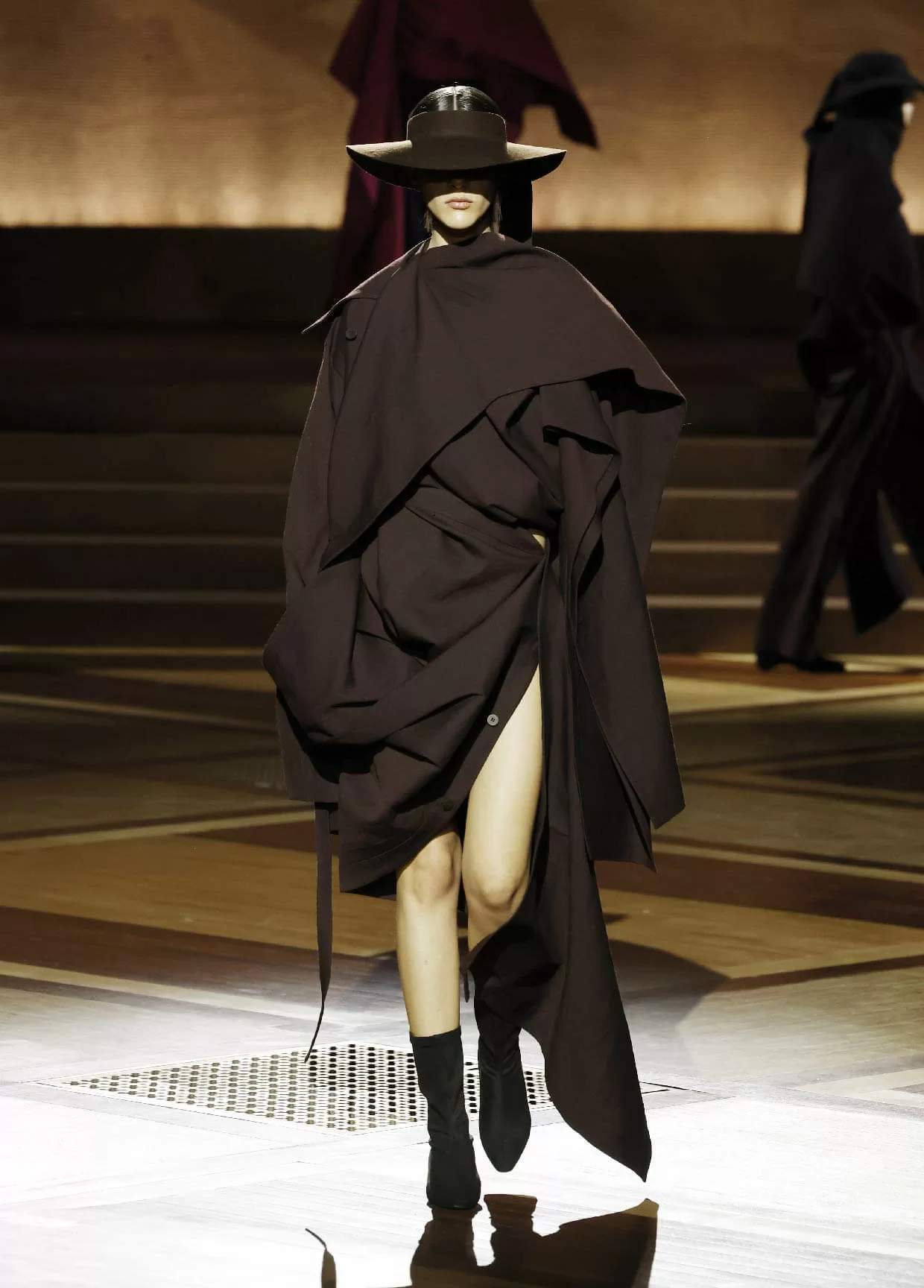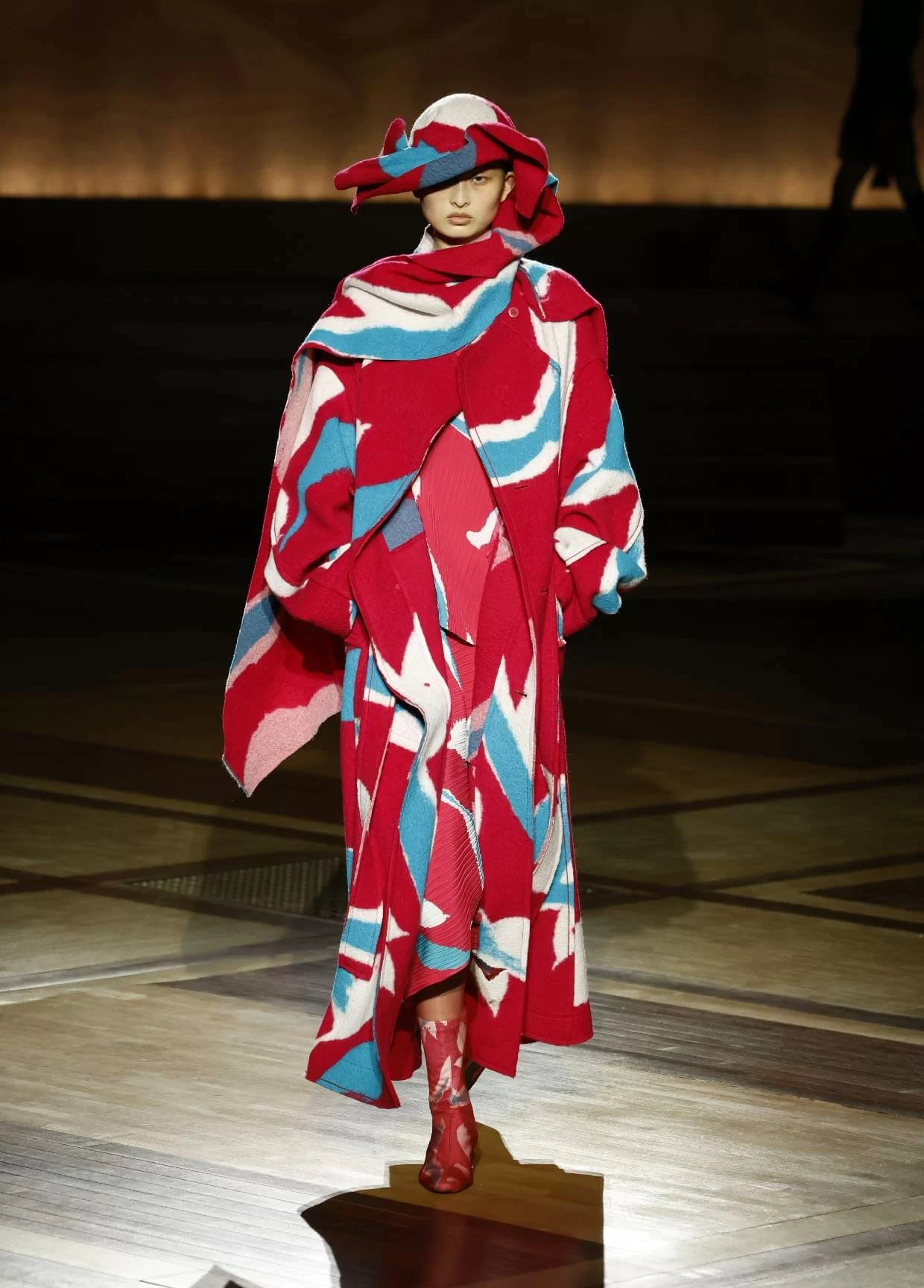 ISSEY MIYAKE 24秋冬系列於巴黎 PALAIS DE LA PORTE DORÉE 發布,以「WHAT HAS ALWAYS BEEN」為主題,探索以一塊布(A PIECE OF CLOTH)為人體著裝的起源,並以此為靈感創造整個系列。2024秋冬,新季回歸用織物著裝的想法,並將此作為製衣的起點進行探索和發展。在不以裁剪服裝為目的的情況下,專注於「穿」,在織物「包裹」身體行為的過程中發現懸垂、重疊、褶皺、扭曲和不對稱的構圖,以及對此偶然創造出的空間進行趣味性的一系列探索,並儘可能減少改動,最終讓服裝以最自然的形式呈現。