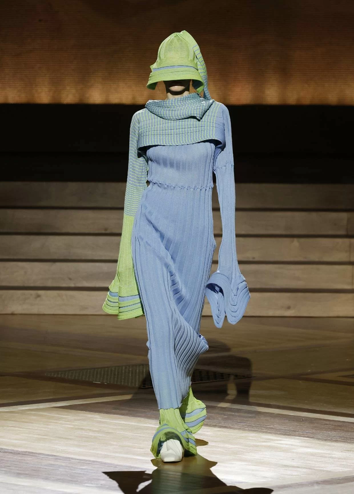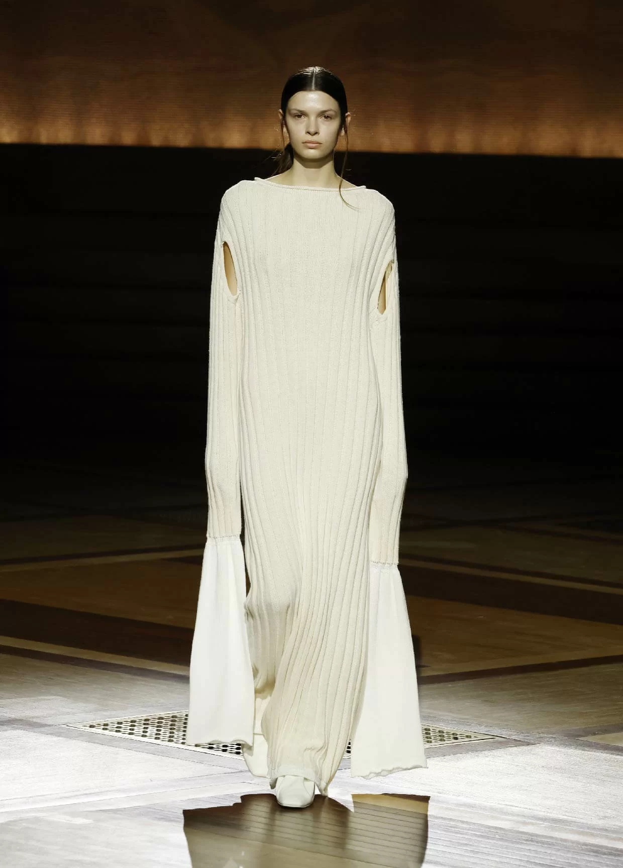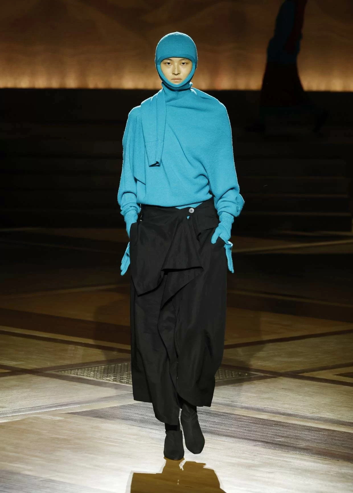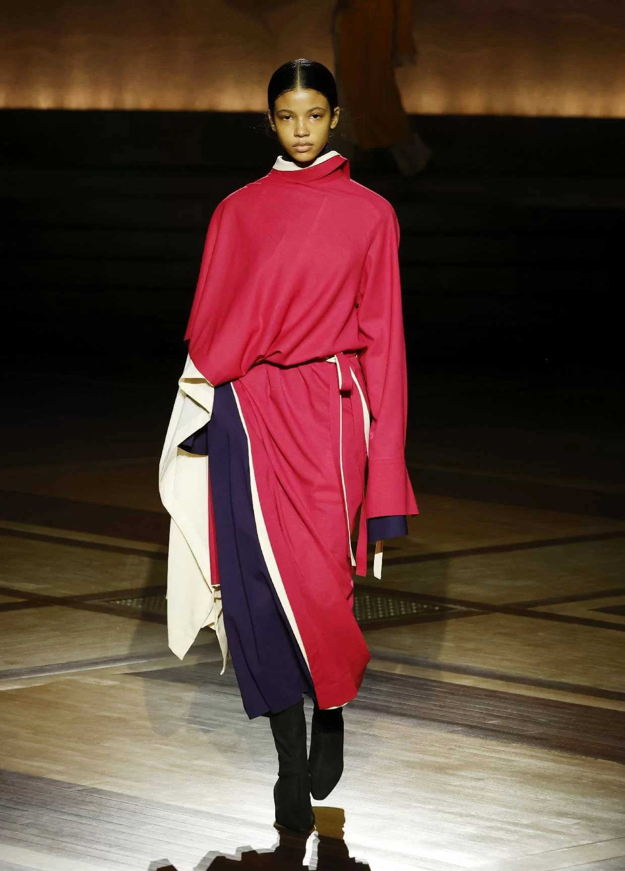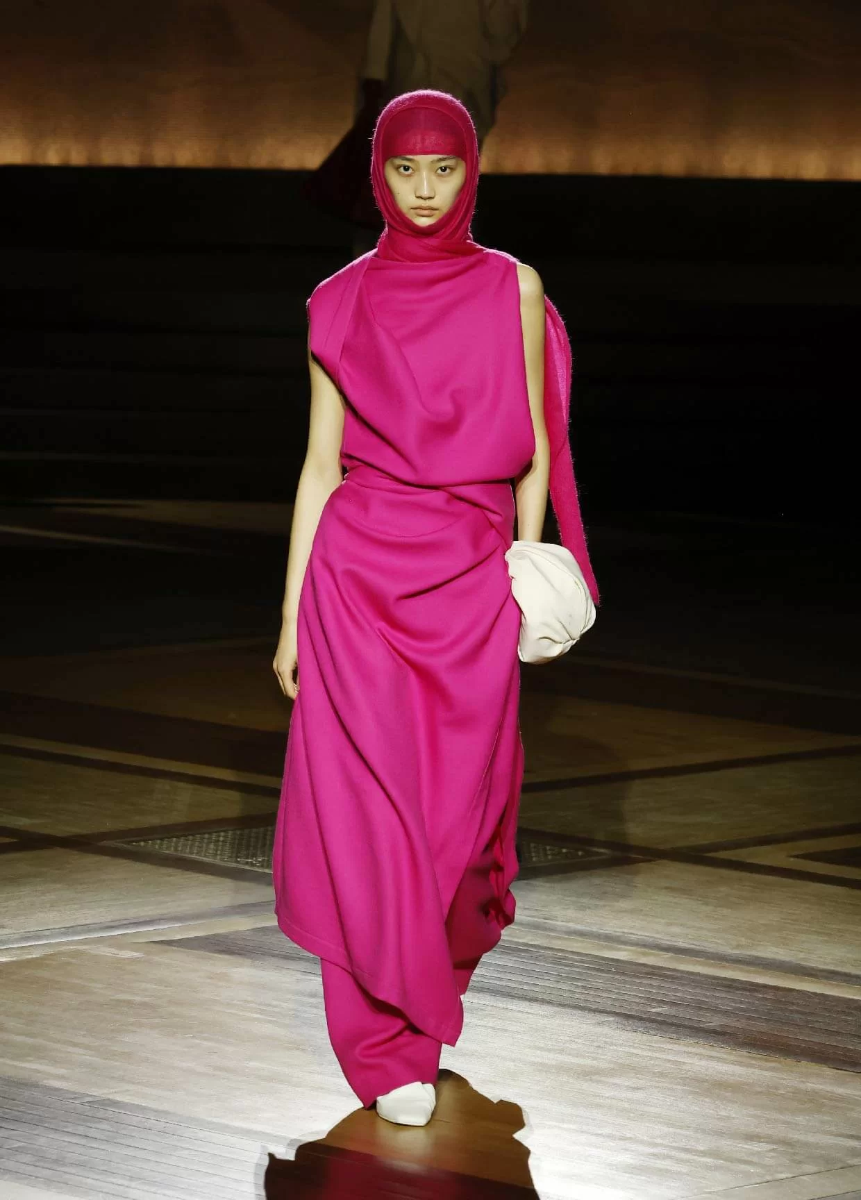 ISSEY MIYAKE 24秋冬系列於巴黎 PALAIS DE LA PORTE DORÉE 發布,以「WHAT HAS ALWAYS BEEN」為主題,探索以一塊布(A PIECE OF CLOTH)為人體著裝的起源,並以此為靈感創造整個系列。2024秋冬,新季回歸用織物著裝的想法,並將此作為製衣的起點進行探索和發展。在不以裁剪服裝為目的的情況下,專注於「穿」,在織物「包裹」身體行為的過程中發現懸垂、重疊、褶皺、扭曲和不對稱的構圖,以及對此偶然創造出的空間進行趣味性的一系列探索,並儘可能減少改動,最終讓服裝以最自然的形式呈現。