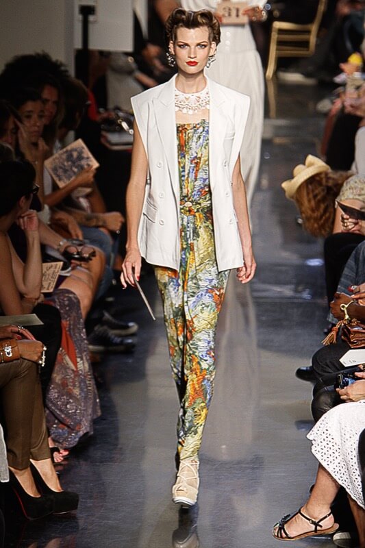 這次春夏系列引用 6 月男裝時裝展的相同佈景,模特兒像參演真人騷一 樣,在兩層高台上即場更衣並隨性的走過天橋。雖沒音樂,但有年輕法國女主播 Charlotte Le Bon 以英語及法語即場風趣旁述每個造型,同場更加映攝影師 Miles Aldridge 於天橋中途設置器材即場拍攝品牌春夏系列宣傳照,可謂目不暇給。