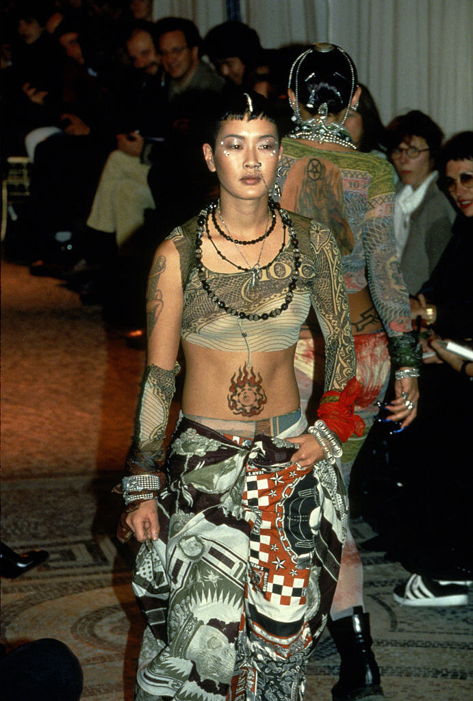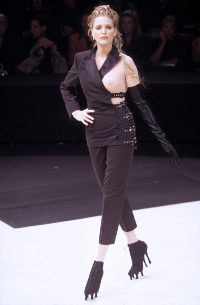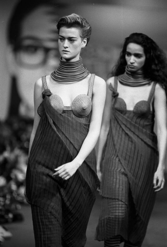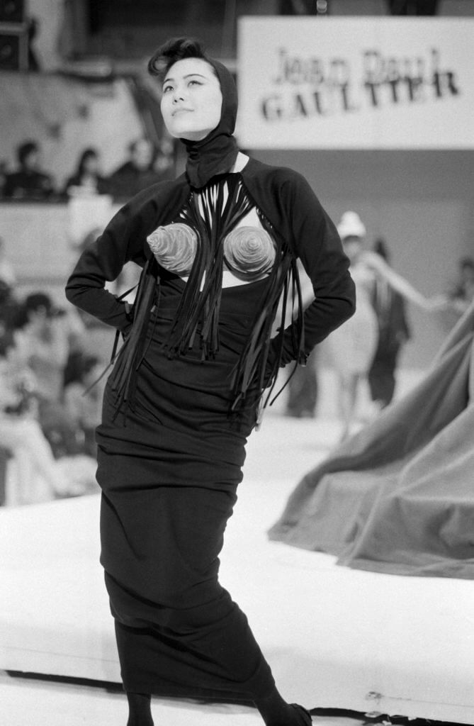 1992年,Madonna在Jean Paul Gaultier秀上,穿上一襲露乳長裙,與 Gaultier結伴謝幕。