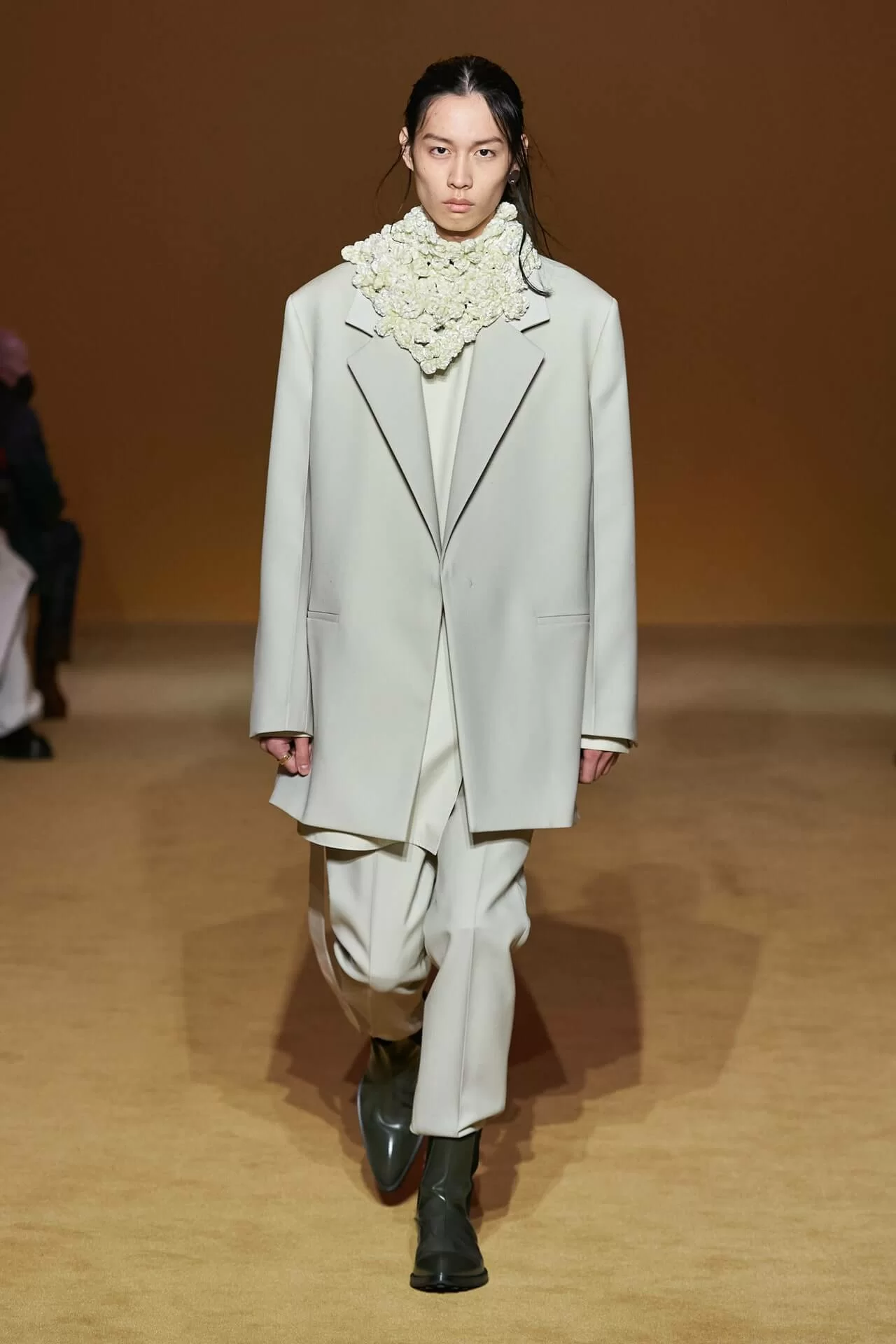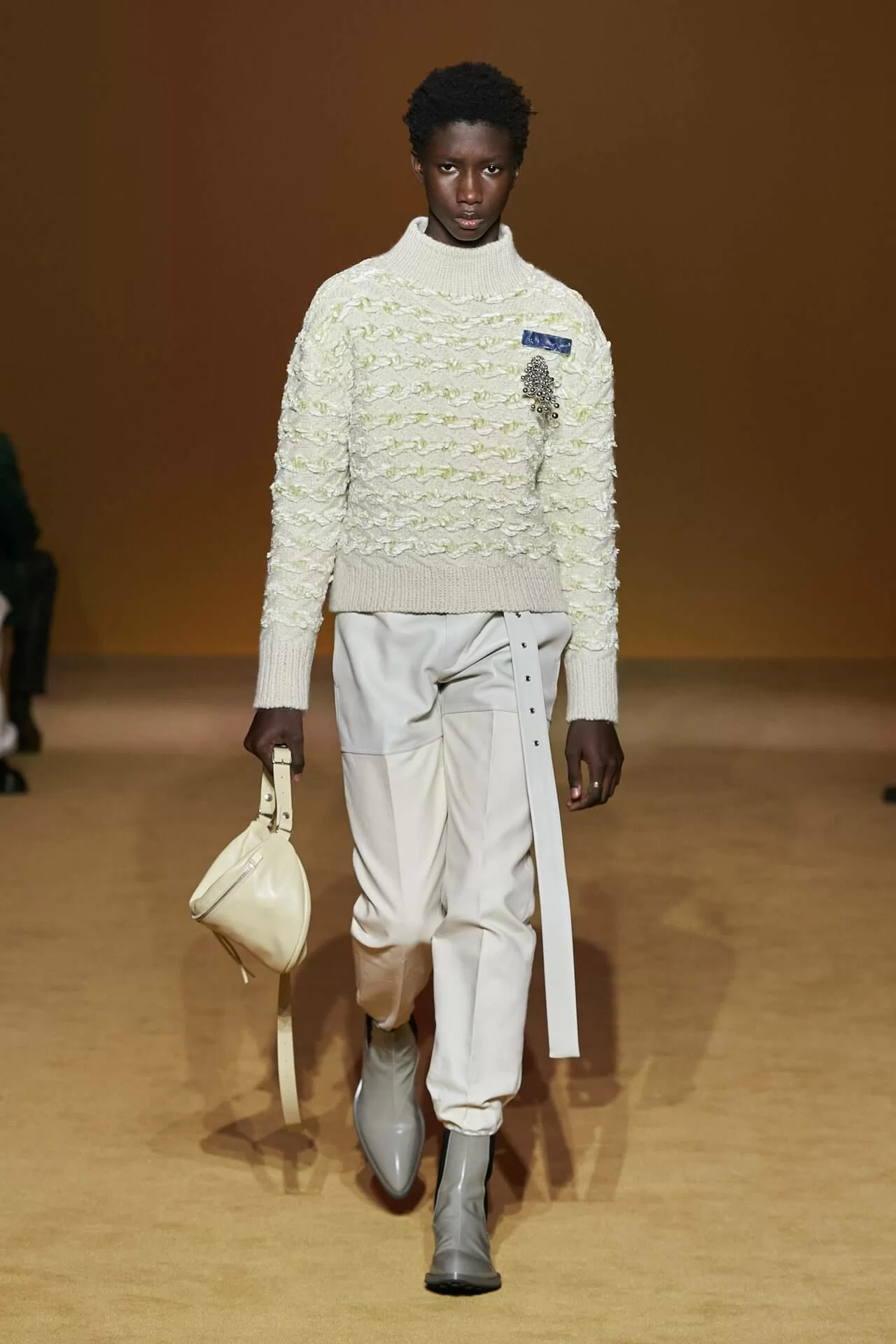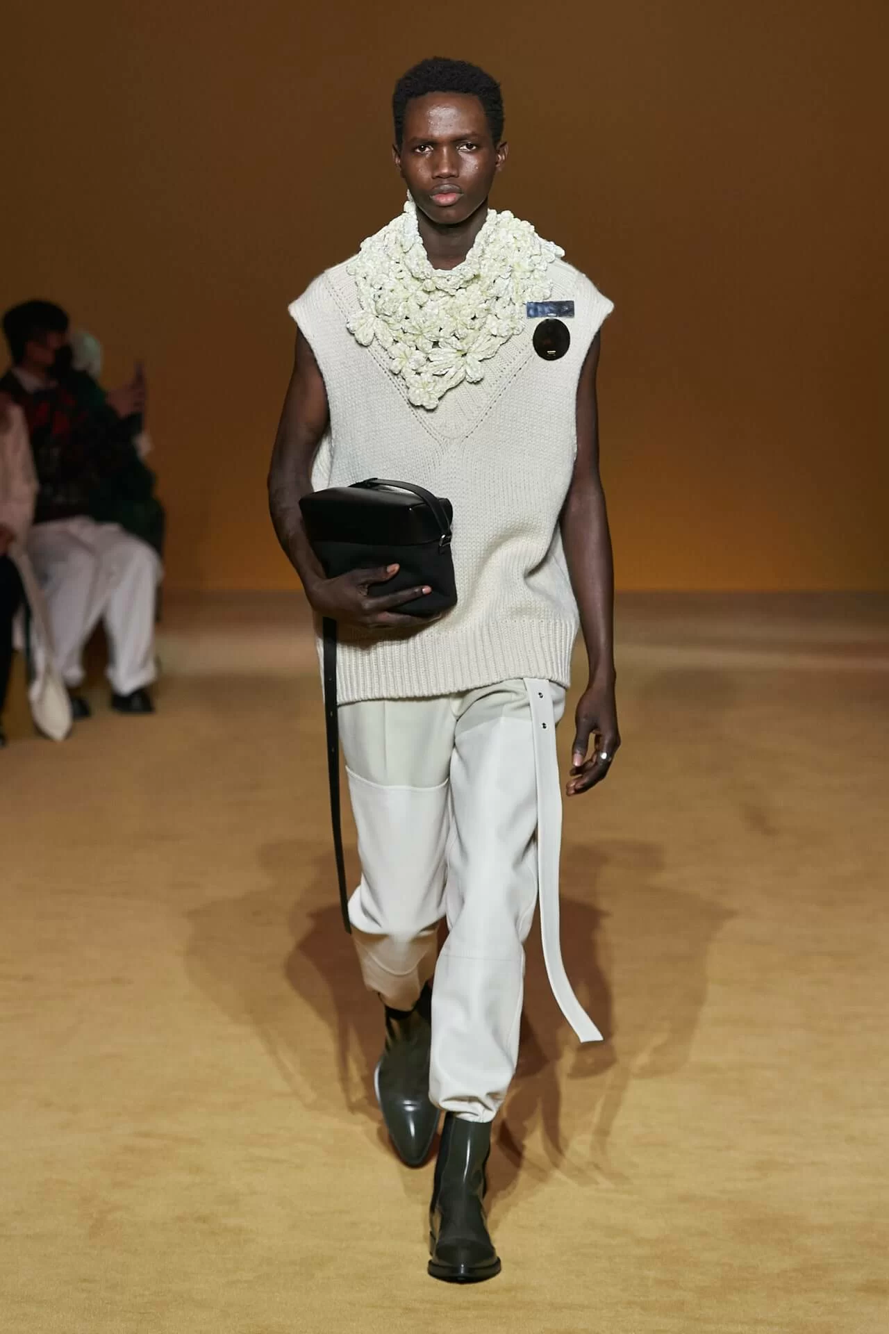 在質地和剪裁都率性有型的衣物上,JIL SANDER 加入了「奶奶時尚」風格的鉤針編織,形成強烈的視覺對比卻又不失和諧感。「大家都有點想念那些真正打扮得漂漂亮亮的人,」 LUCIE 和 LUKE MEIER 表示疫情限制了我們的風格,也減少了讓我們炫耀和展示自己風格的機會。
