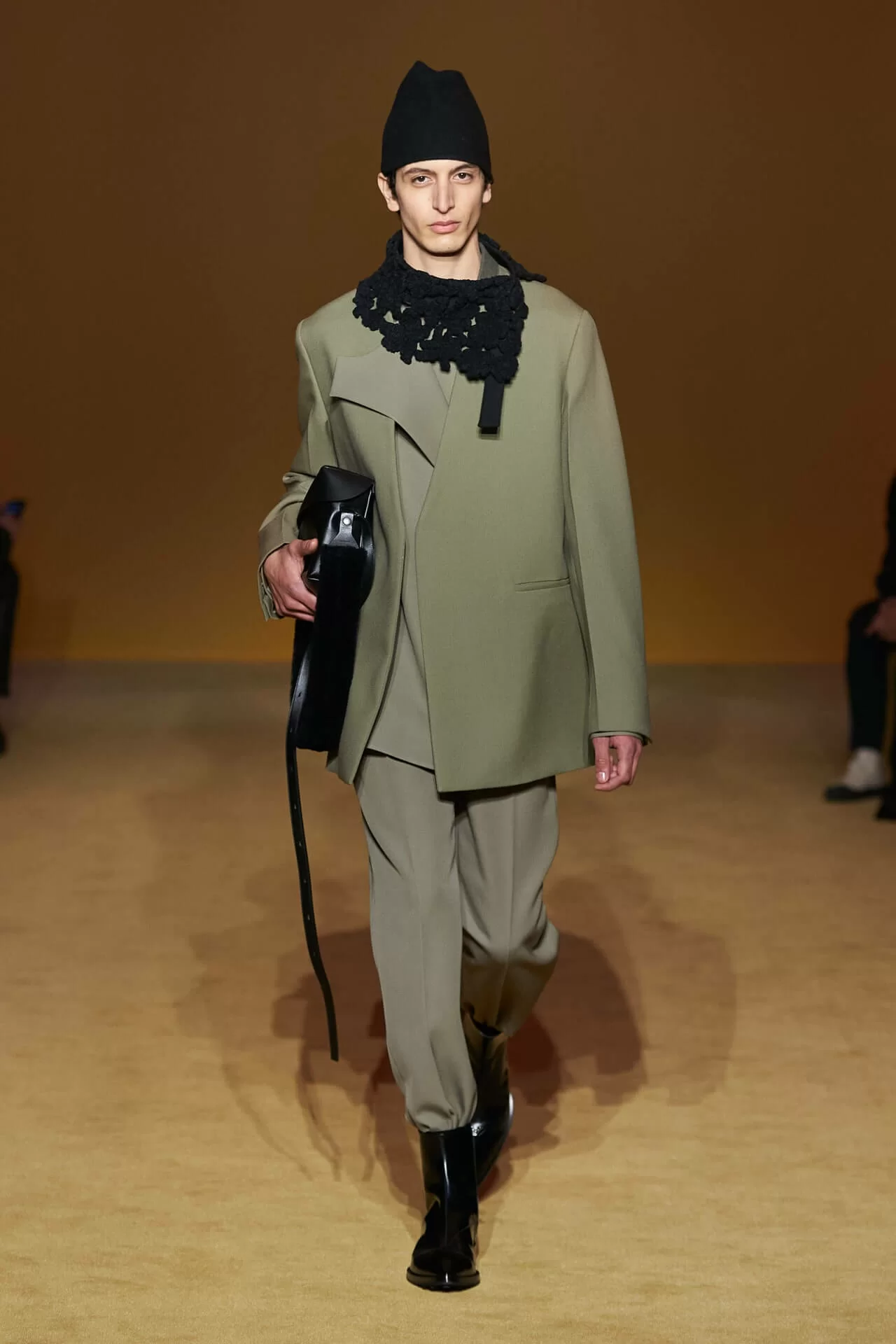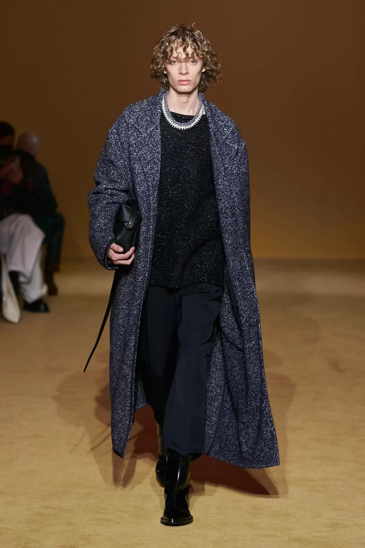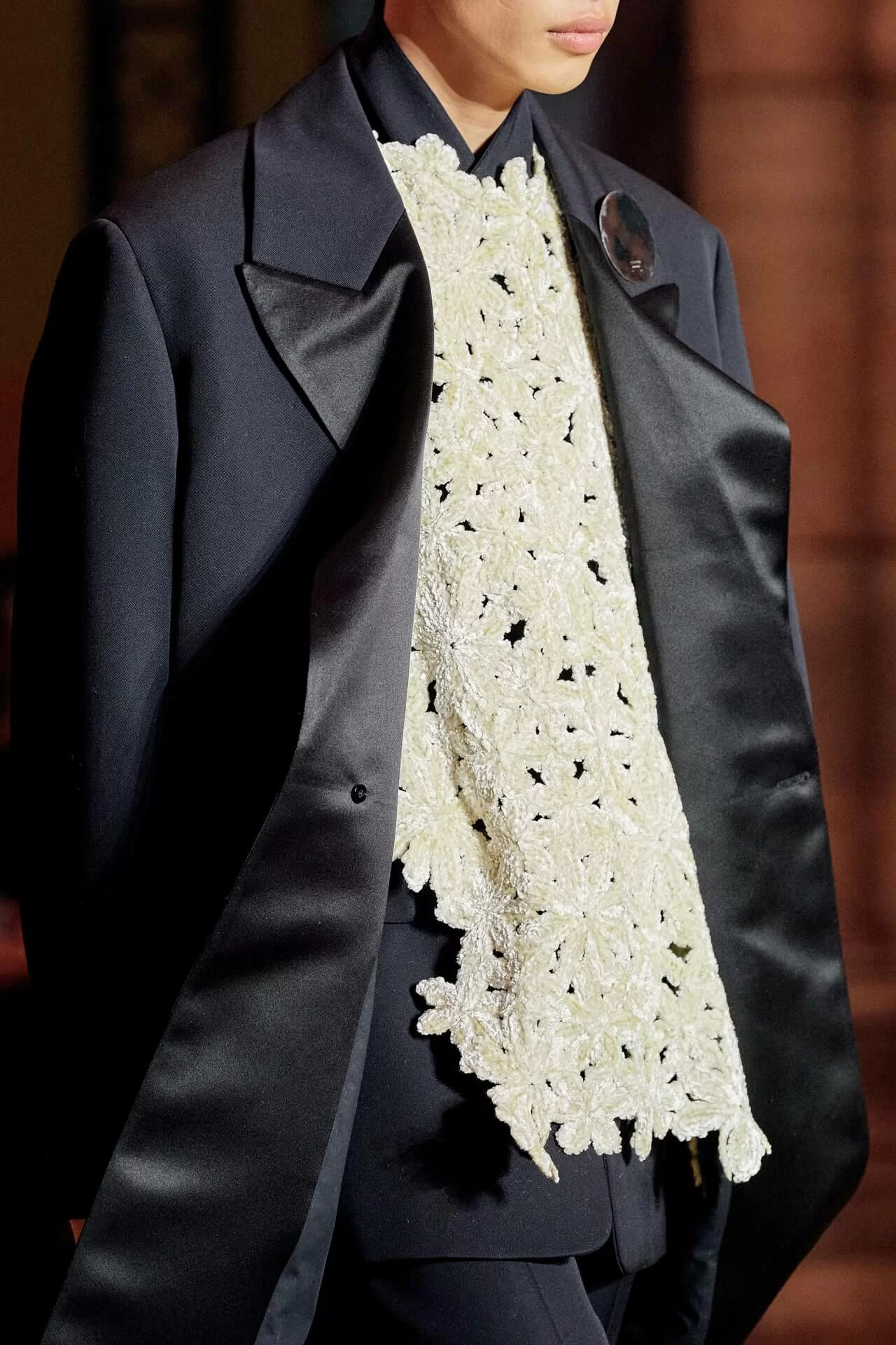 在質地和剪裁都率性有型的衣物上,JIL SANDER 加入了「奶奶時尚」風格的鉤針編織,形成強烈的視覺對比卻又不失和諧感。「大家都有點想念那些真正打扮得漂漂亮亮的人,」 LUCIE 和 LUKE MEIER 表示疫情限制了我們的風格,也減少了讓我們炫耀和展示自己風格的機會。