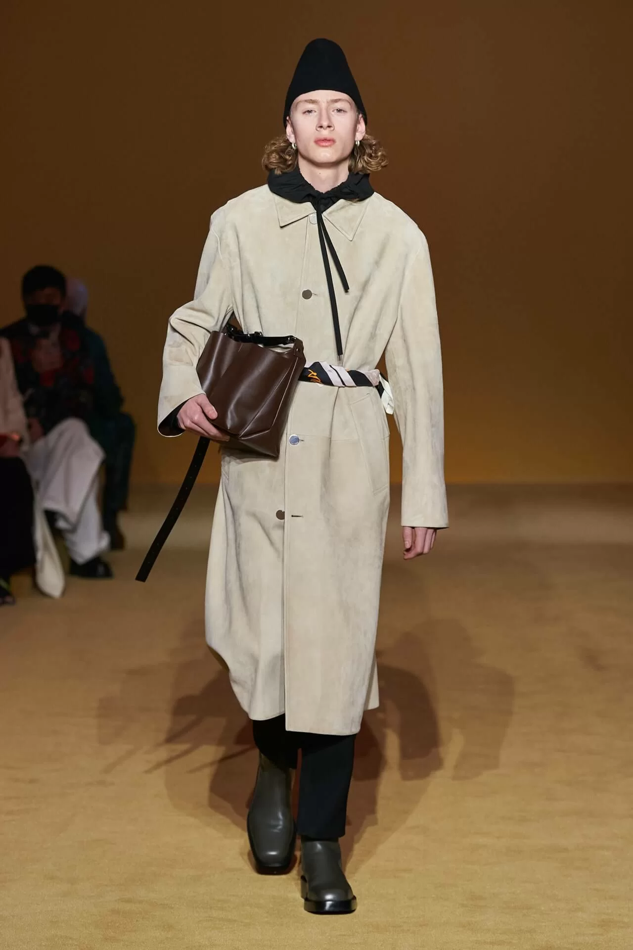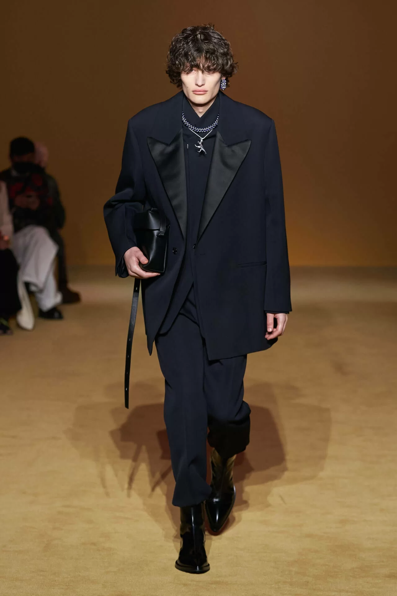 一個巨型的粉紅色發光汽球懸掛在天花,節奏明快且牽動人心的配樂讓人有沉浸式的感觀享受,今季 FW22 時裝秀的氣氛比一貫常見走極簡風格的 JIL SANDER 更為嬉皮有趣。軟質地皮革以及剪裁挺拔而輕盈的各款燕尾服和長褸,配上手工精緻的鉤針編織,簡單俐落而不單調乏味。 LUCIE 和 LUKE MEIER 表示喜歡這種優雅、陽剛而又性感的廓形。