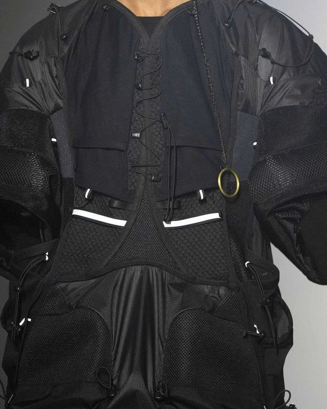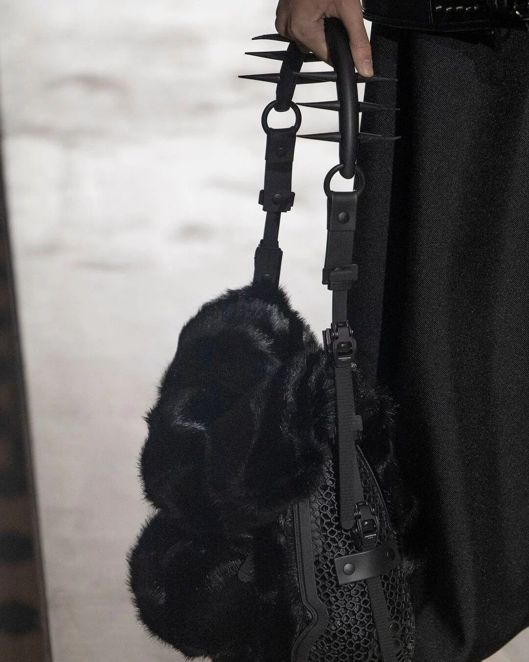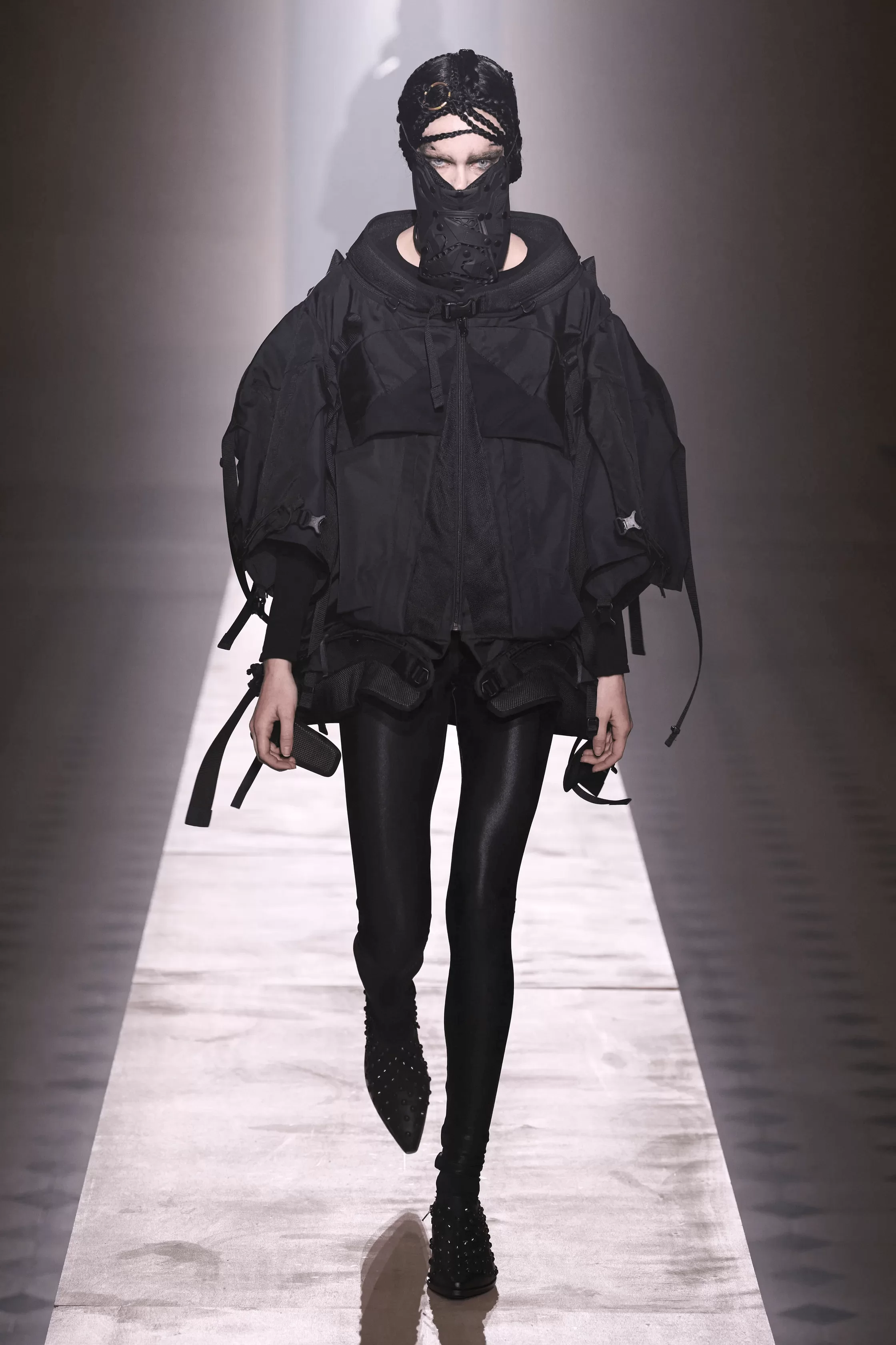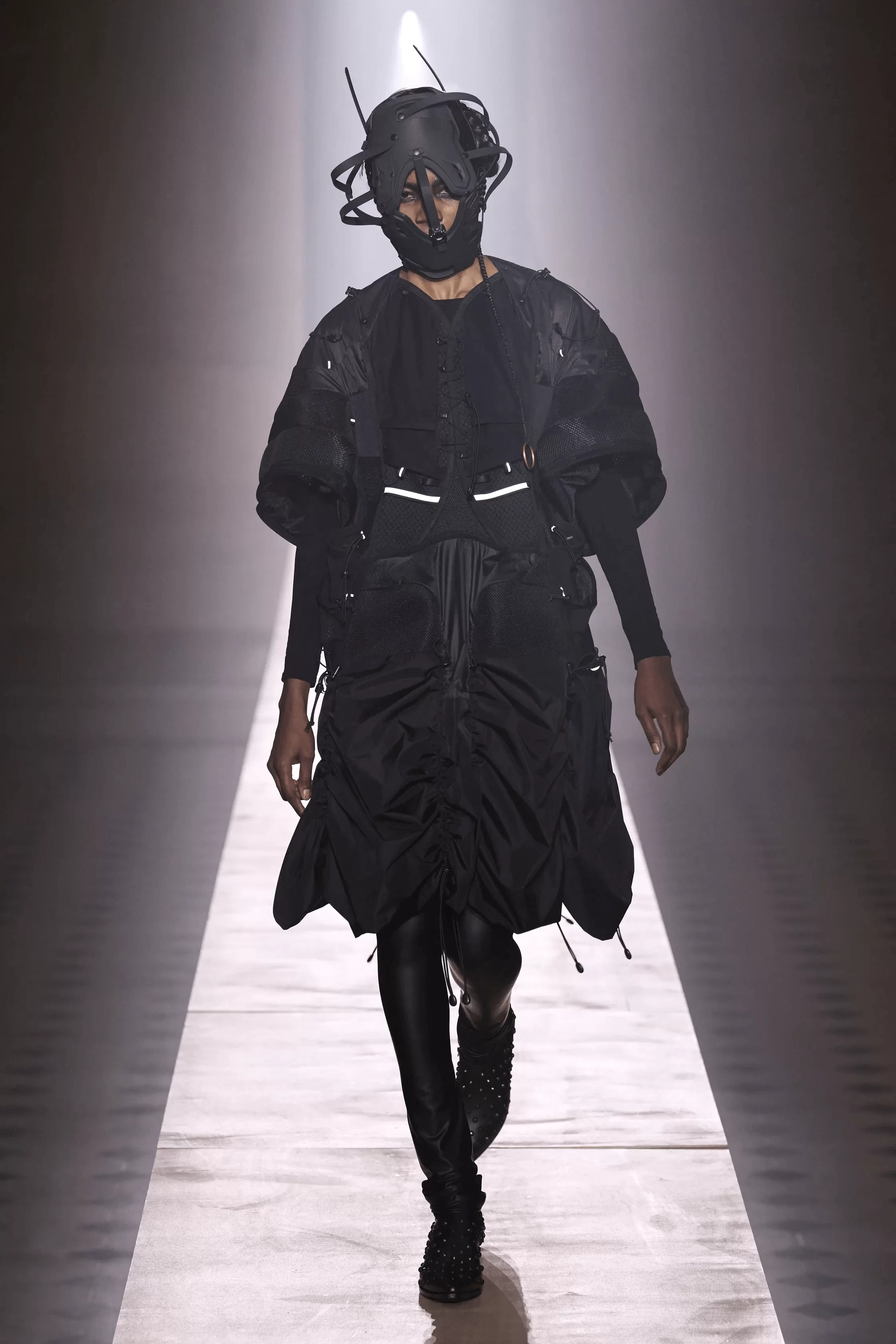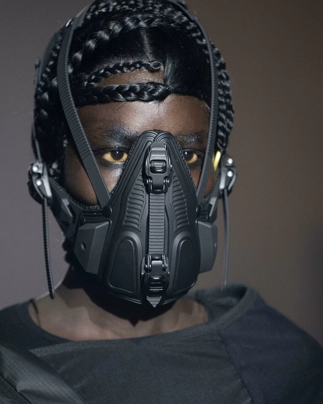 繼早前與 INNERRAUM 推出聯乘系列,今回再次確立合作夥伴關係,共同打造科幻前衛的網紋防護面罩、具攻擊性的窩釘手袋和頭部辮子等造型配飾及小細節,從而顯露強烈的軍事視覺效果。