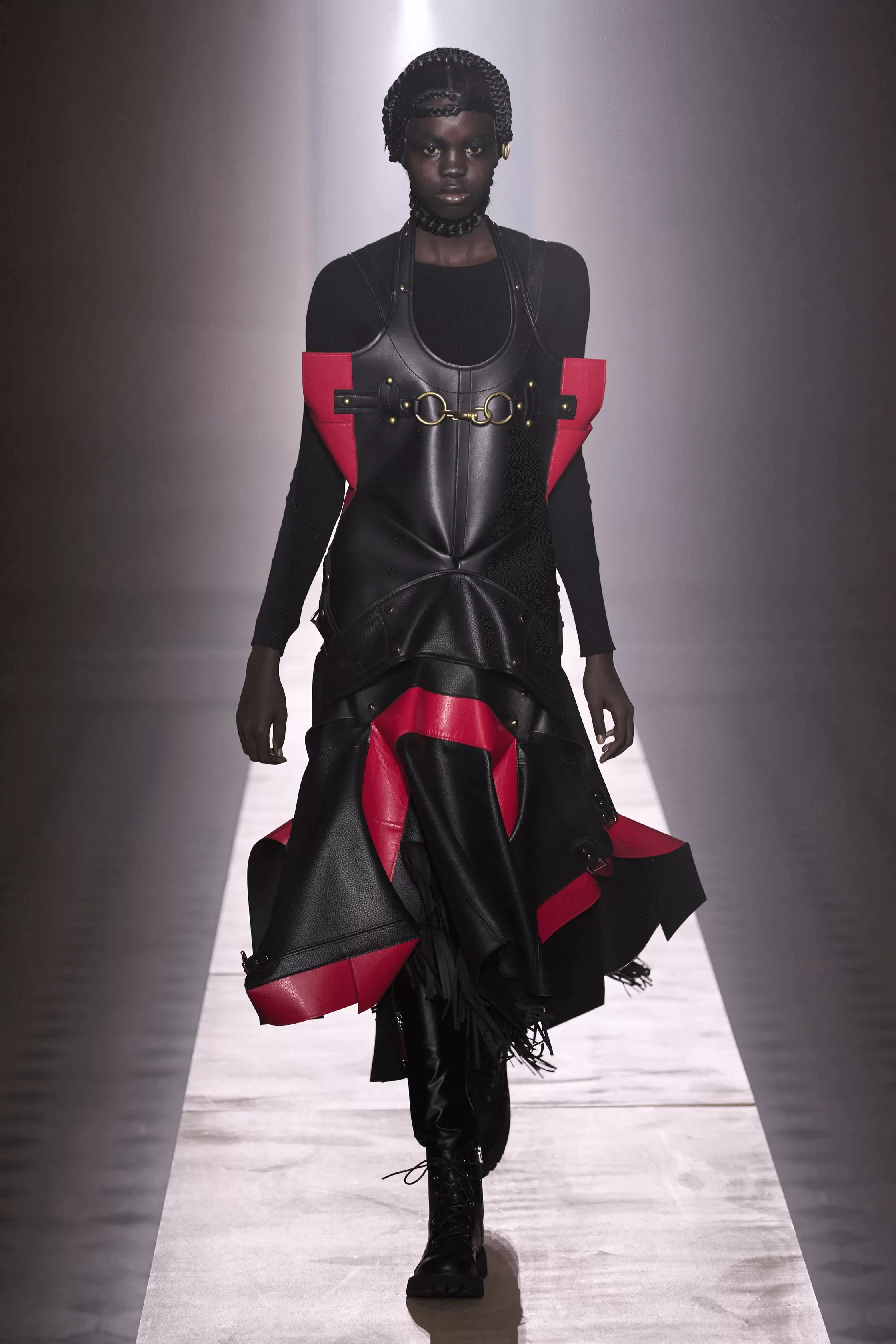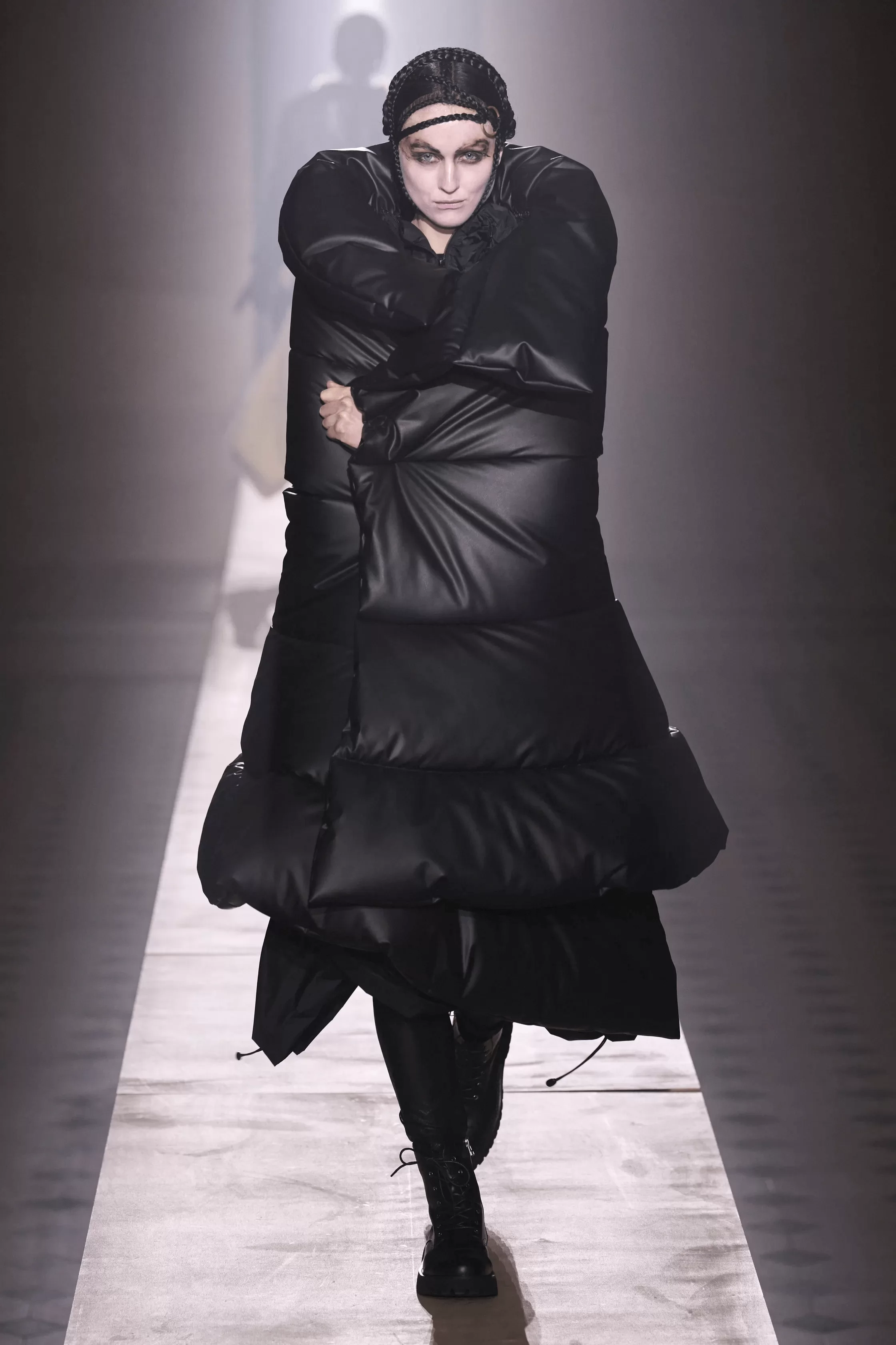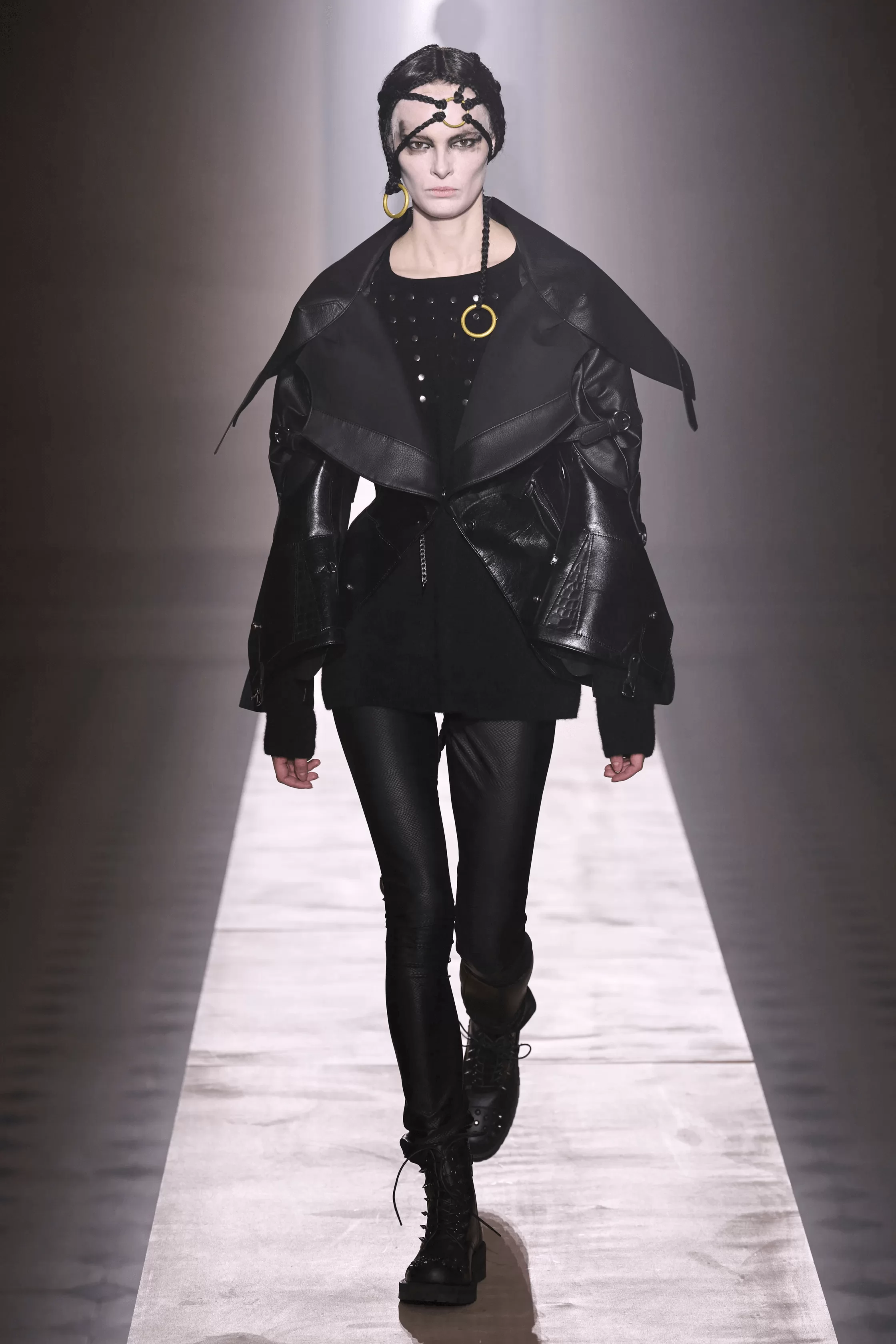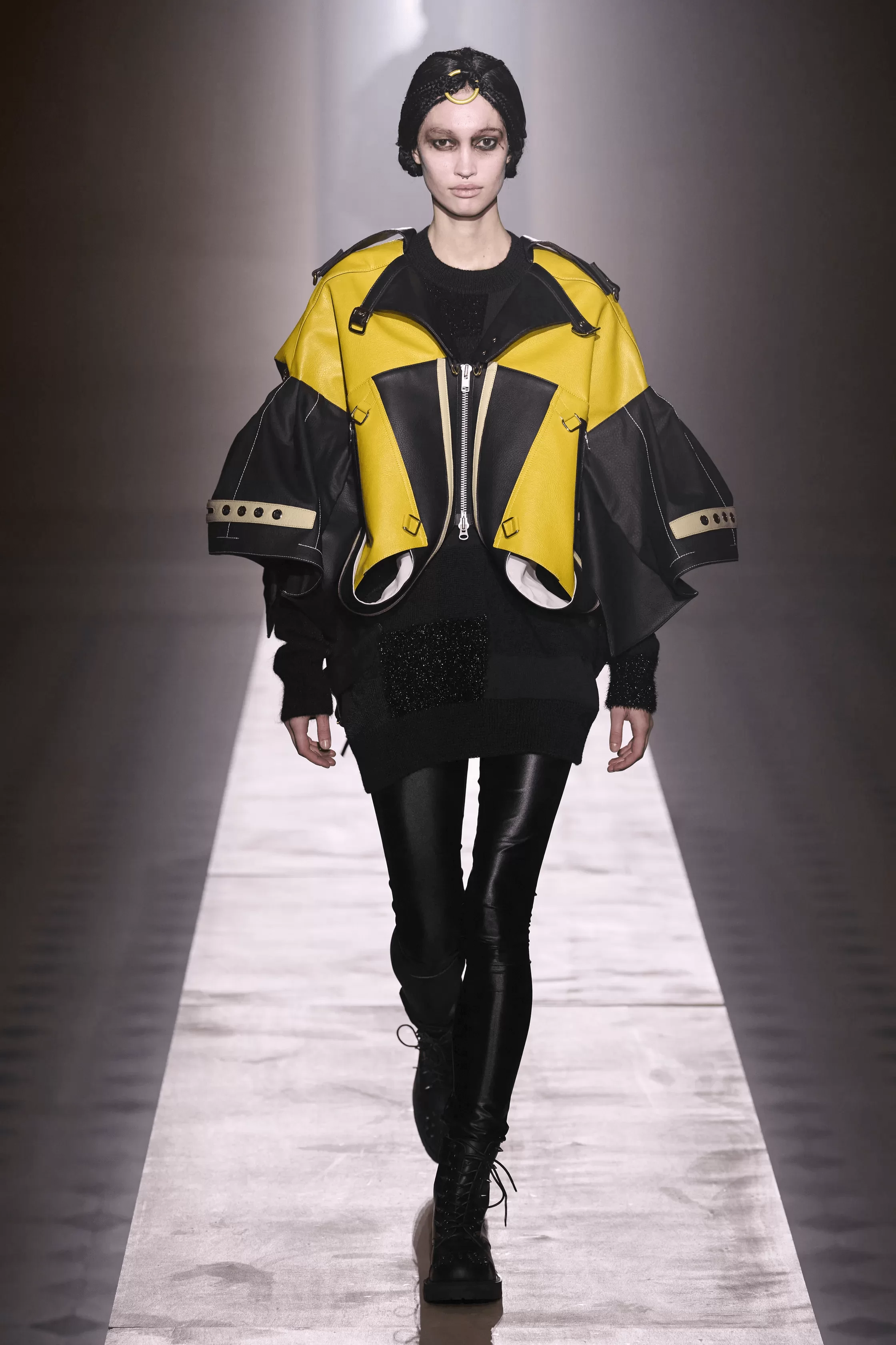 JUNYA WATANABE 秋冬系列主題從經典搖滾樂隊 LED ZEPPELIN 於 1975 年發行的歌曲《KASHMIR》得到靈感啟發,時裝展則選址於巴黎盧浮堂教堂舉行,女模特們帶來一支穿梭未來宇宙的異國女性兵團。