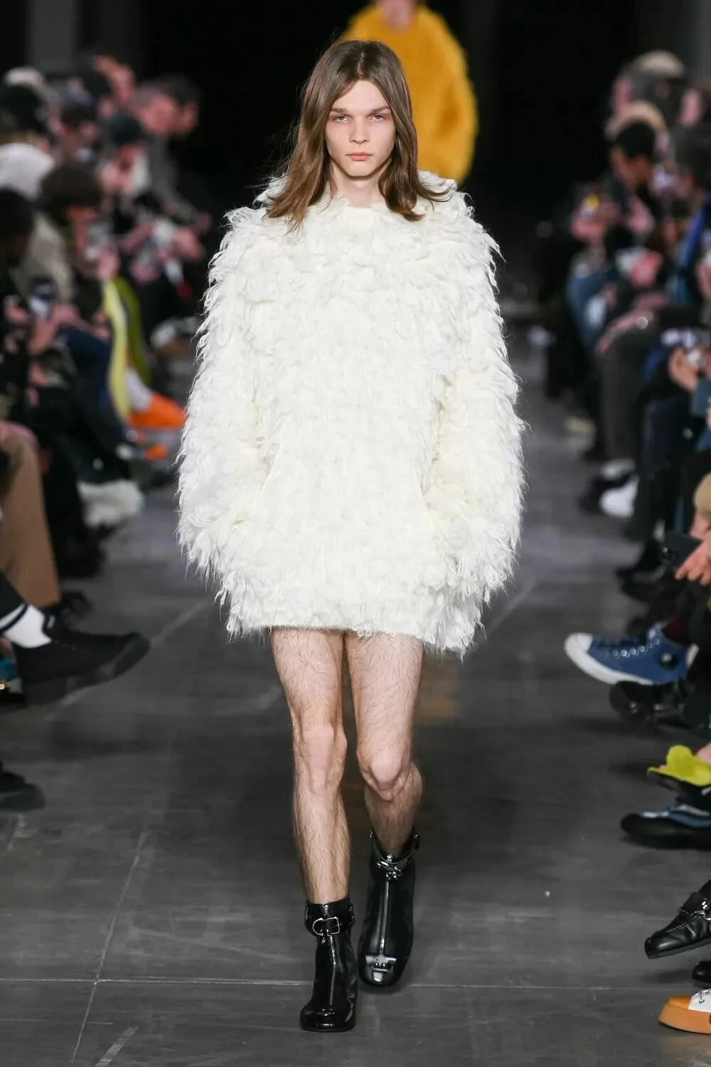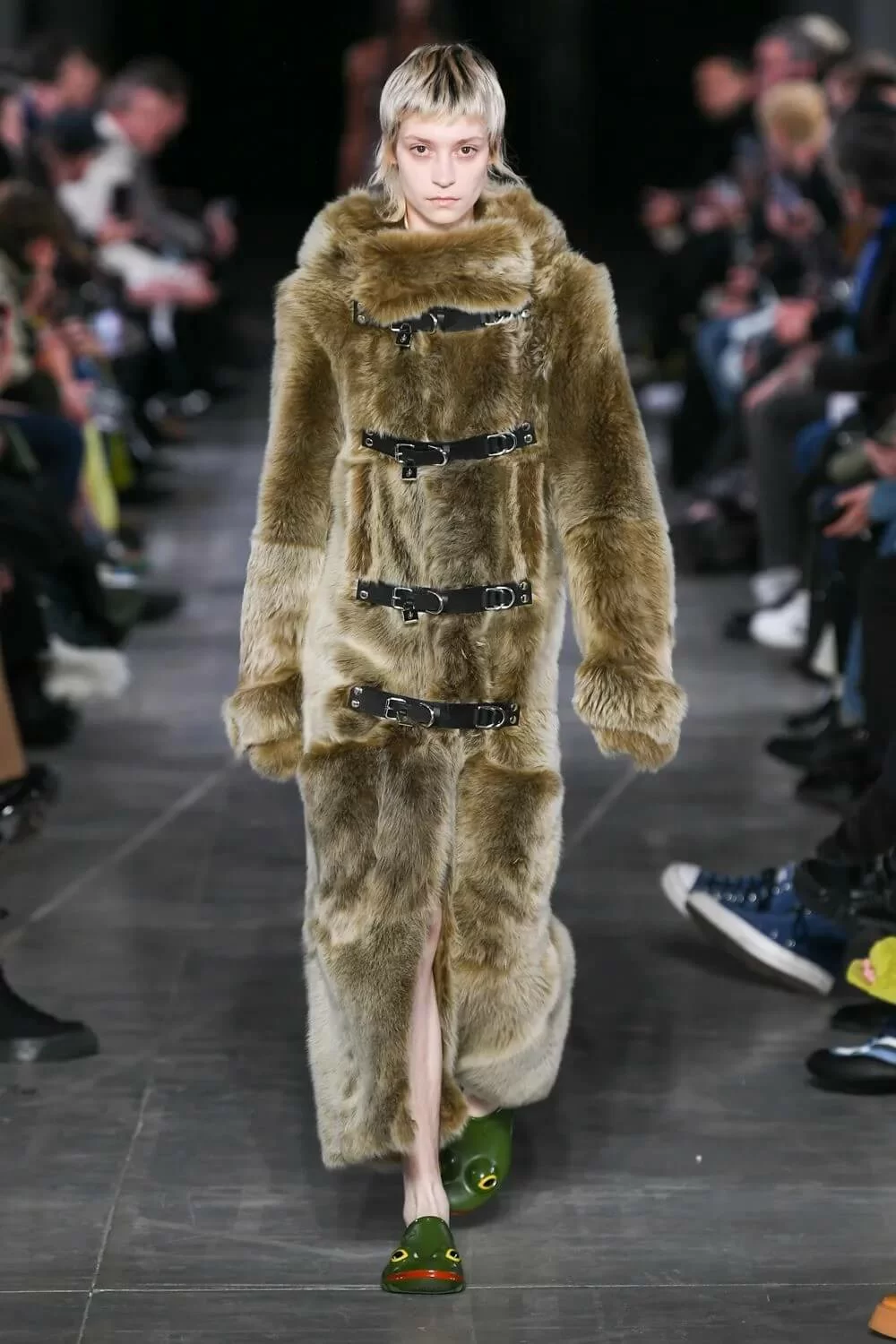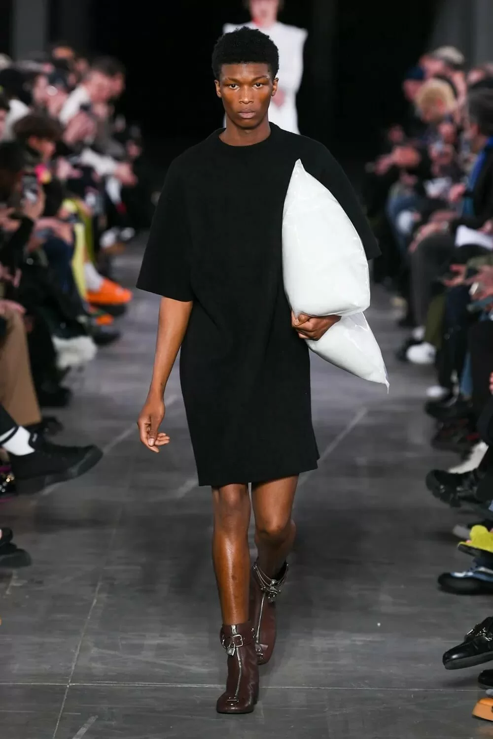 今季的 RUNWAY 造型毫不複雜,配搭上保持著「一件起兩件止」,卻以突殊的剪裁和配色及玩味配件搶奪大家目光,例如有 JW 拿手的人物印花 T-SHIRT、荷葉邊的羊毛皮 JACKET、胸前的 SIM 卡配件,OVER-SIZED 皮褸或居家衛衣配上一個枕頭,讓人想跟隨模特兒們一起進入夢鄉。
