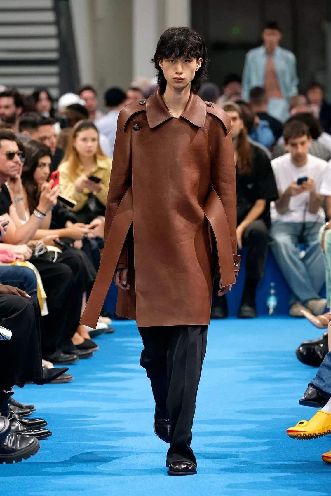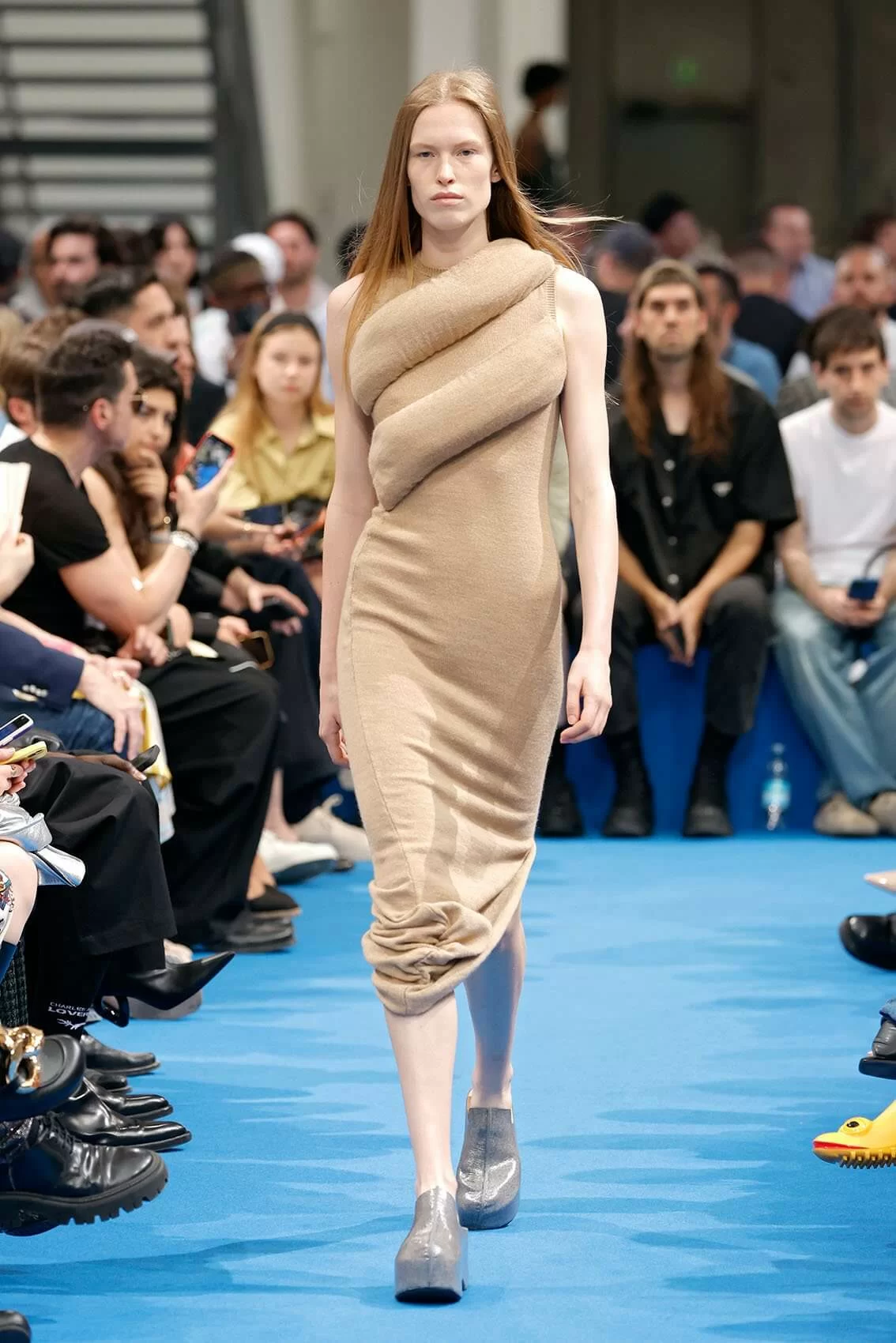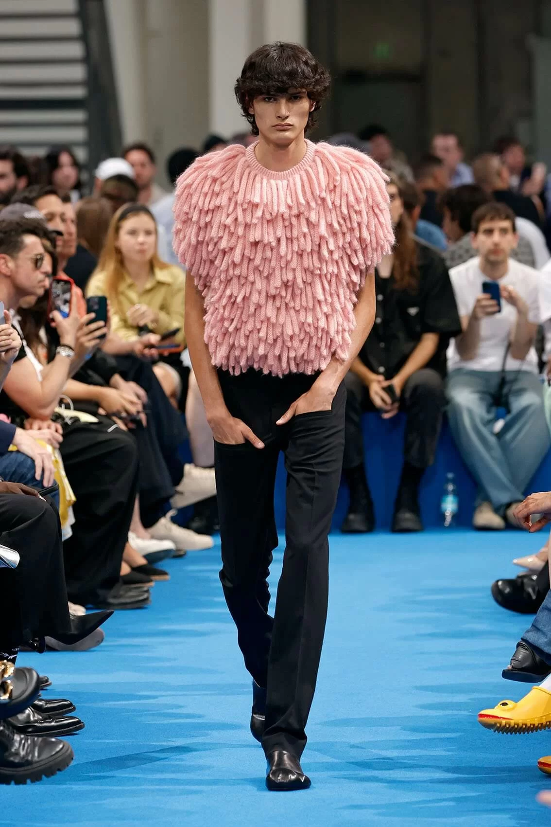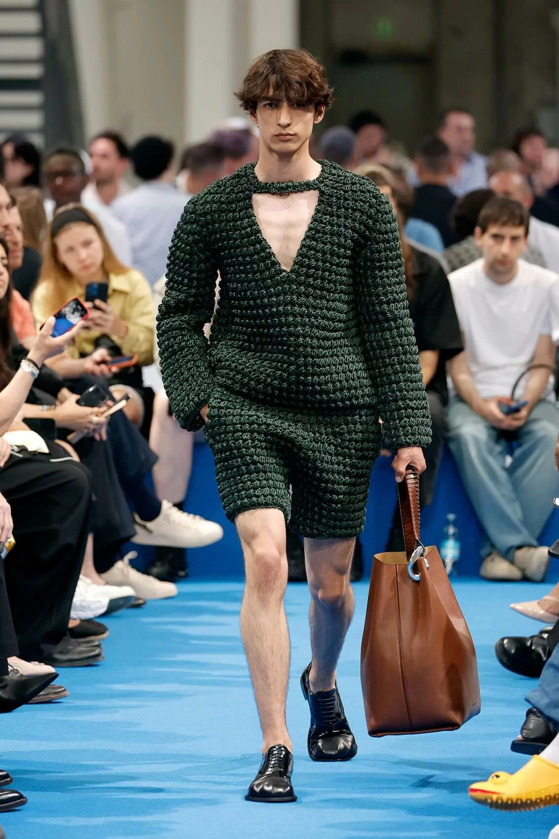 而秀場中的鞋款也是一大看點,除了厚底木屐外,系列中還出現動物角爪的鞋型,這是繼 JW ANDERSON 攜手 WELLIPETS 打造青蛙雨鞋之後,又一引人注目的新奇動物鞋款,可見 JONATHAN 充滿童趣的內心世界。