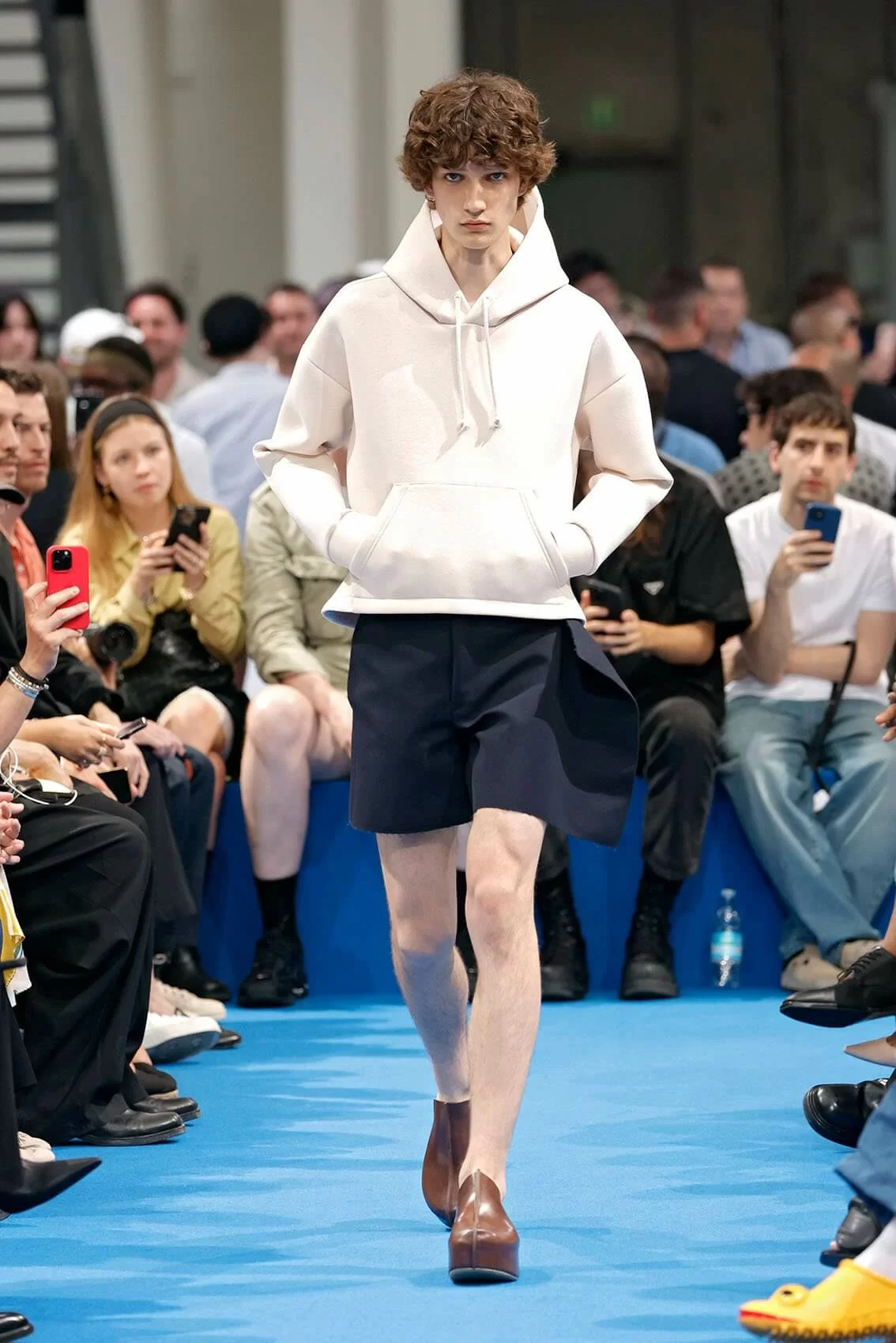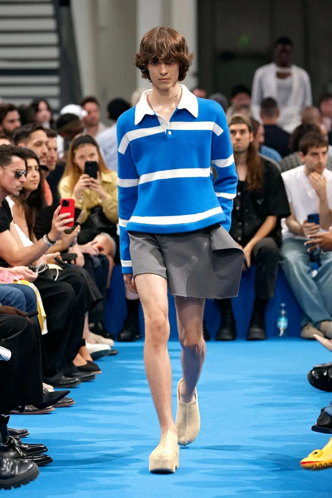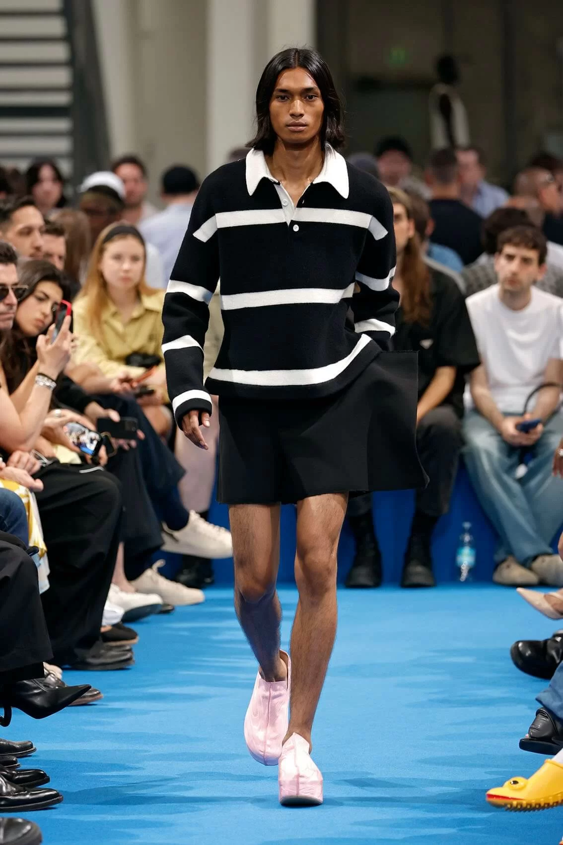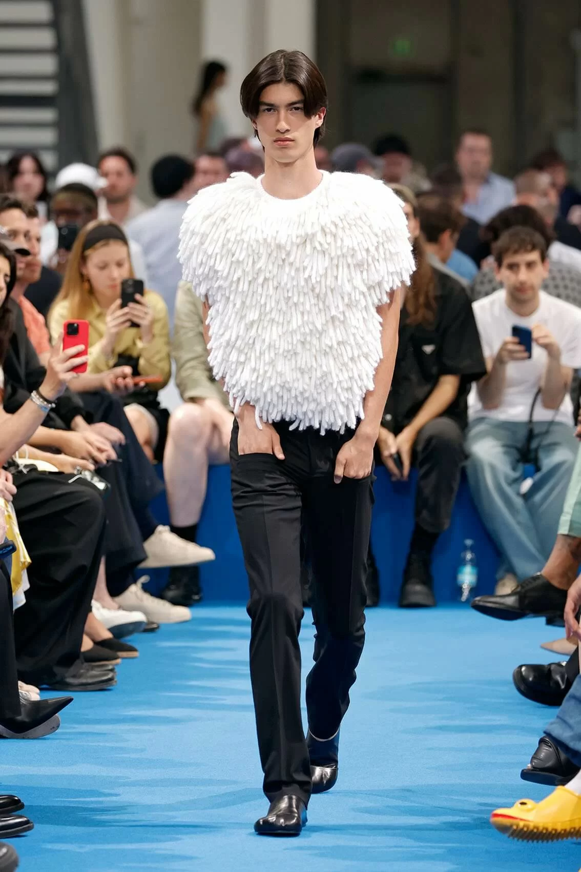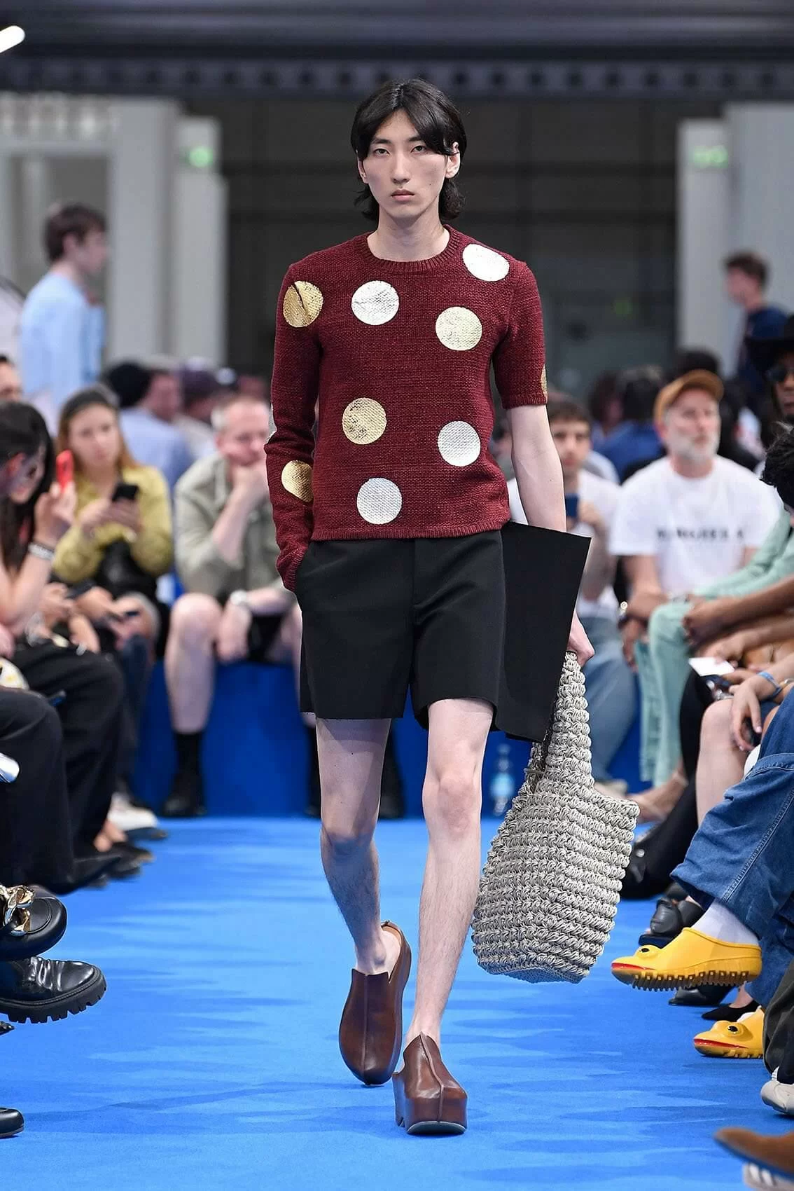 而秀場中的鞋款也是一大看點,除了厚底木屐外,系列中還出現動物角爪的鞋型,這是繼 JW ANDERSON 攜手 WELLIPETS 打造青蛙雨鞋之後,又一引人注目的新奇動物鞋款,可見 JONATHAN 充滿童趣的內心世界。