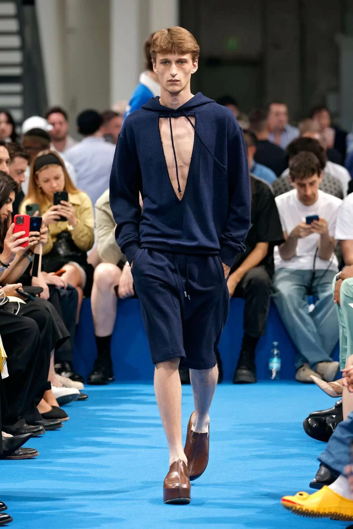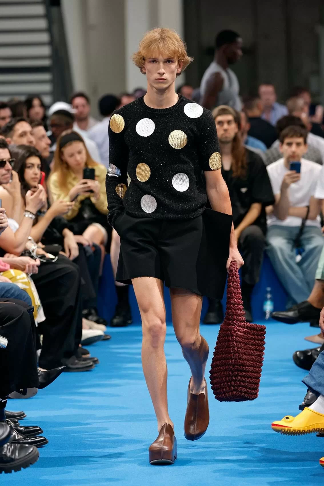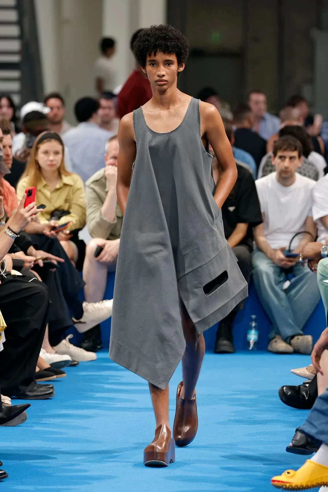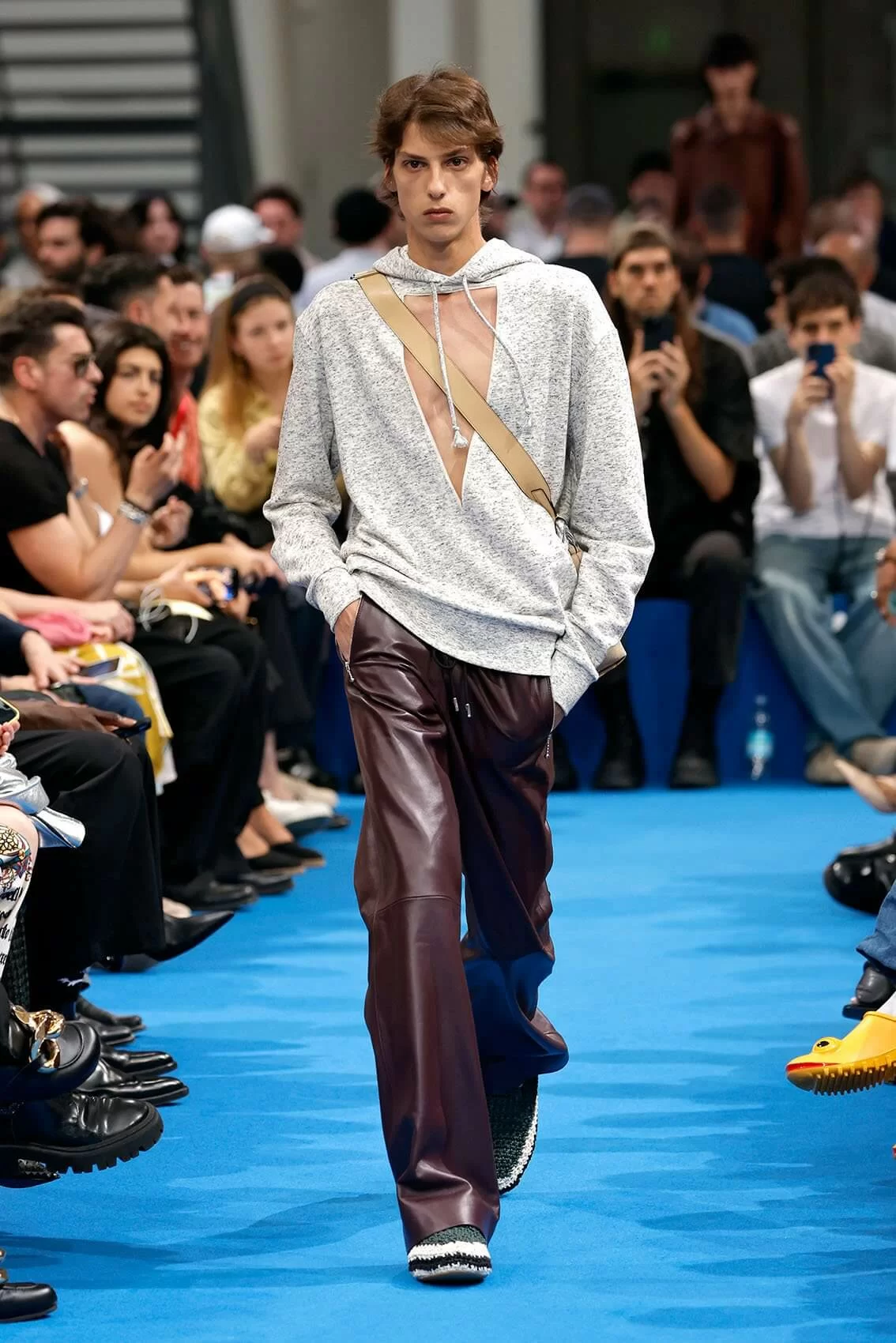 而秀場中的鞋款也是一大看點,除了厚底木屐外,系列中還出現動物角爪的鞋型,這是繼 JW ANDERSON 攜手 WELLIPETS 打造青蛙雨鞋之後,又一引人注目的新奇動物鞋款,可見 JONATHAN 充滿童趣的內心世界。