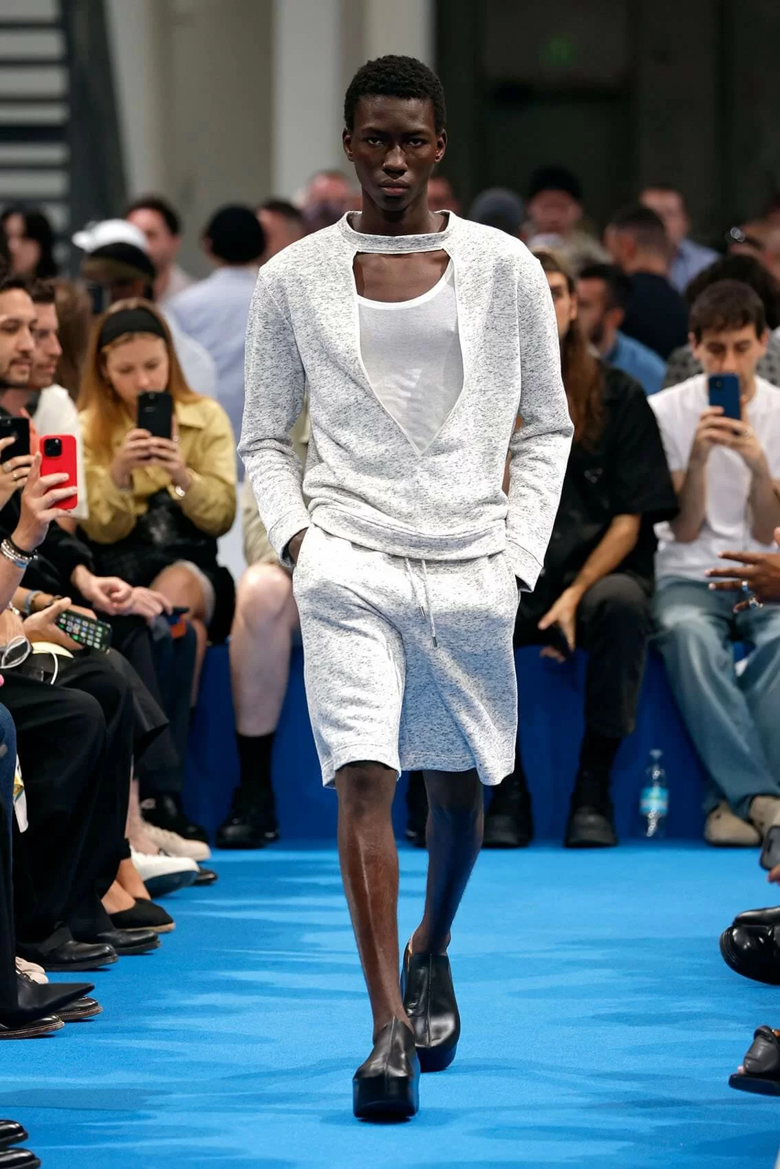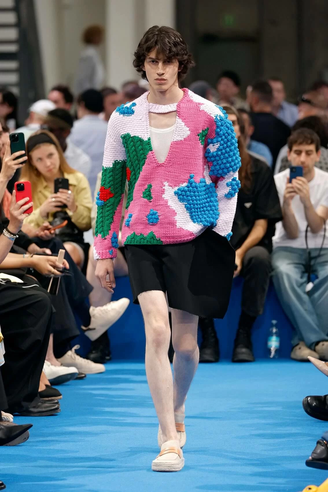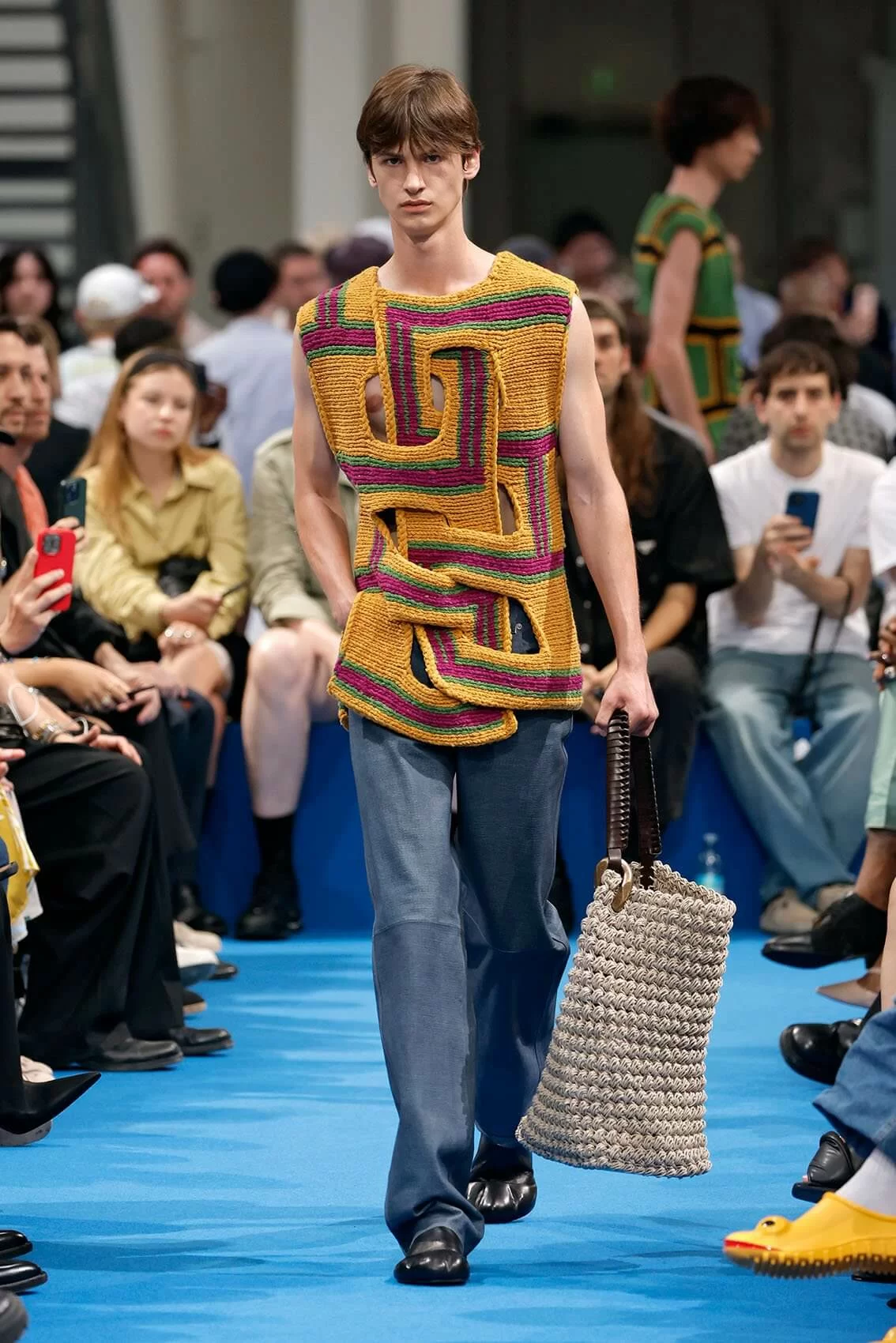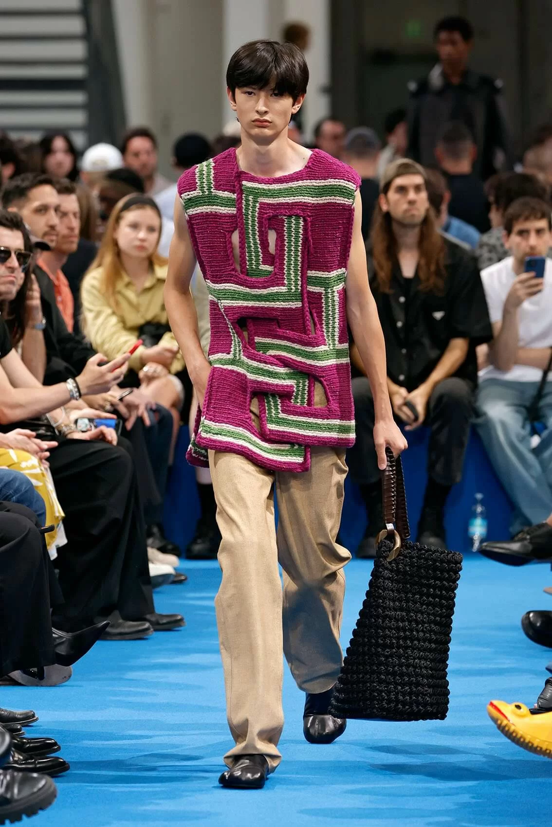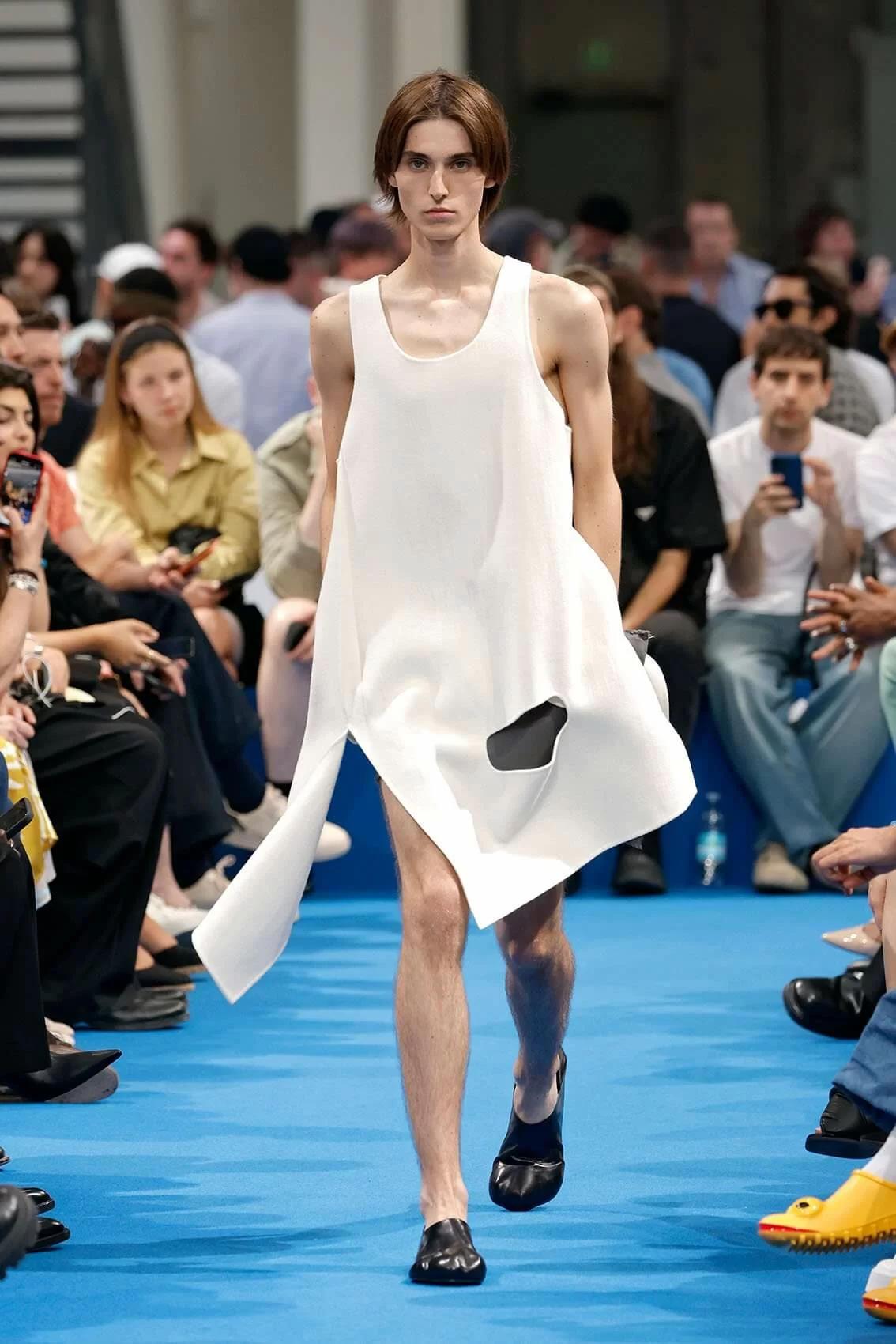 而秀場中的鞋款也是一大看點,除了厚底木屐外,系列中還出現動物角爪的鞋型,這是繼 JW ANDERSON 攜手 WELLIPETS 打造青蛙雨鞋之後,又一引人注目的新奇動物鞋款,可見 JONATHAN 充滿童趣的內心世界。