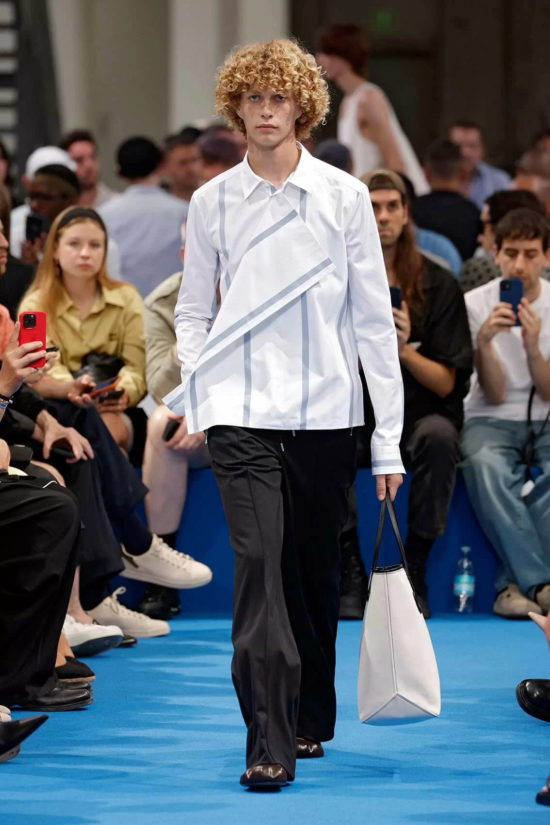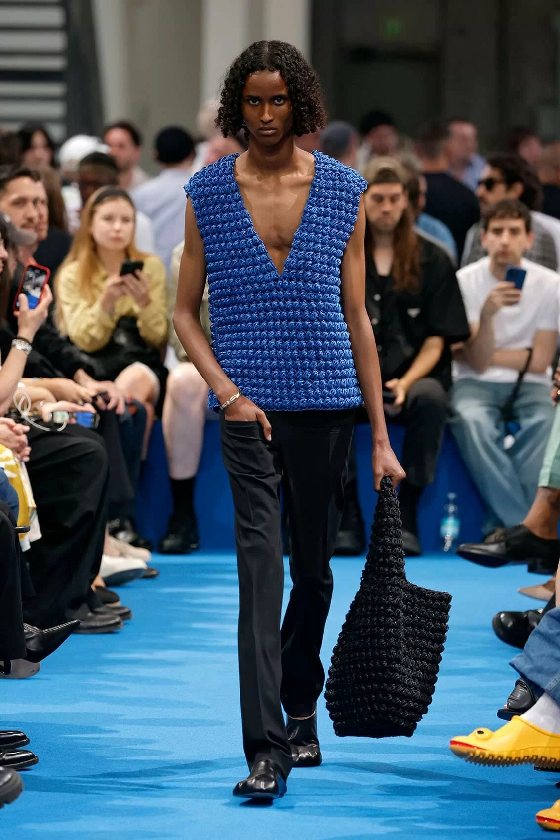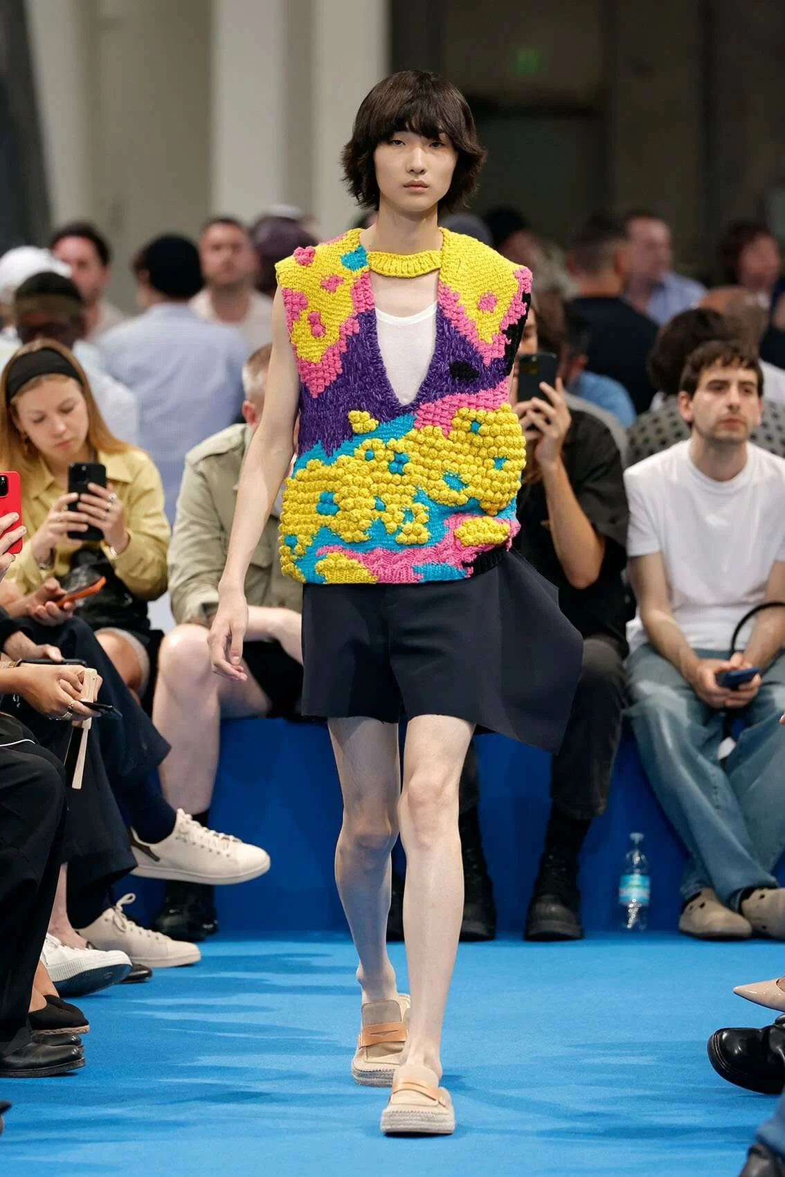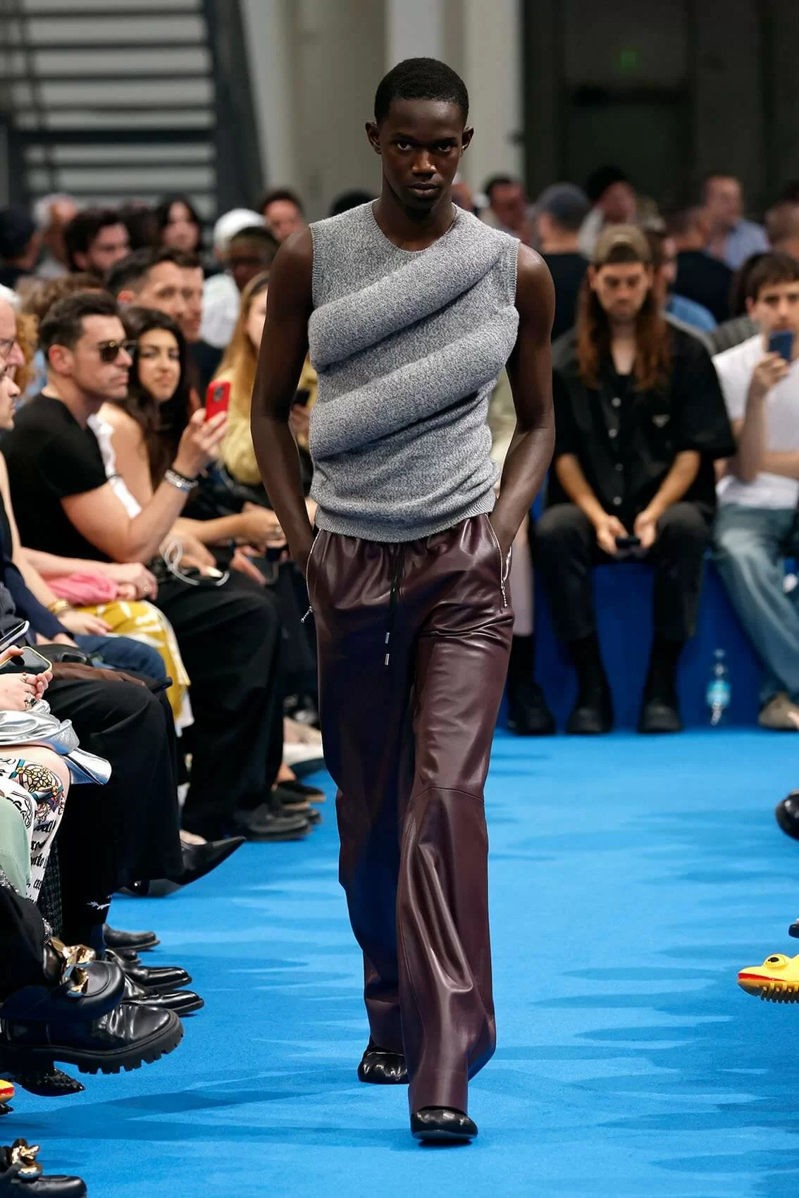 而秀場中的鞋款也是一大看點,除了厚底木屐外,系列中還出現動物角爪的鞋型,這是繼 JW ANDERSON 攜手 WELLIPETS 打造青蛙雨鞋之後,又一引人注目的新奇動物鞋款,可見 JONATHAN 充滿童趣的內心世界。