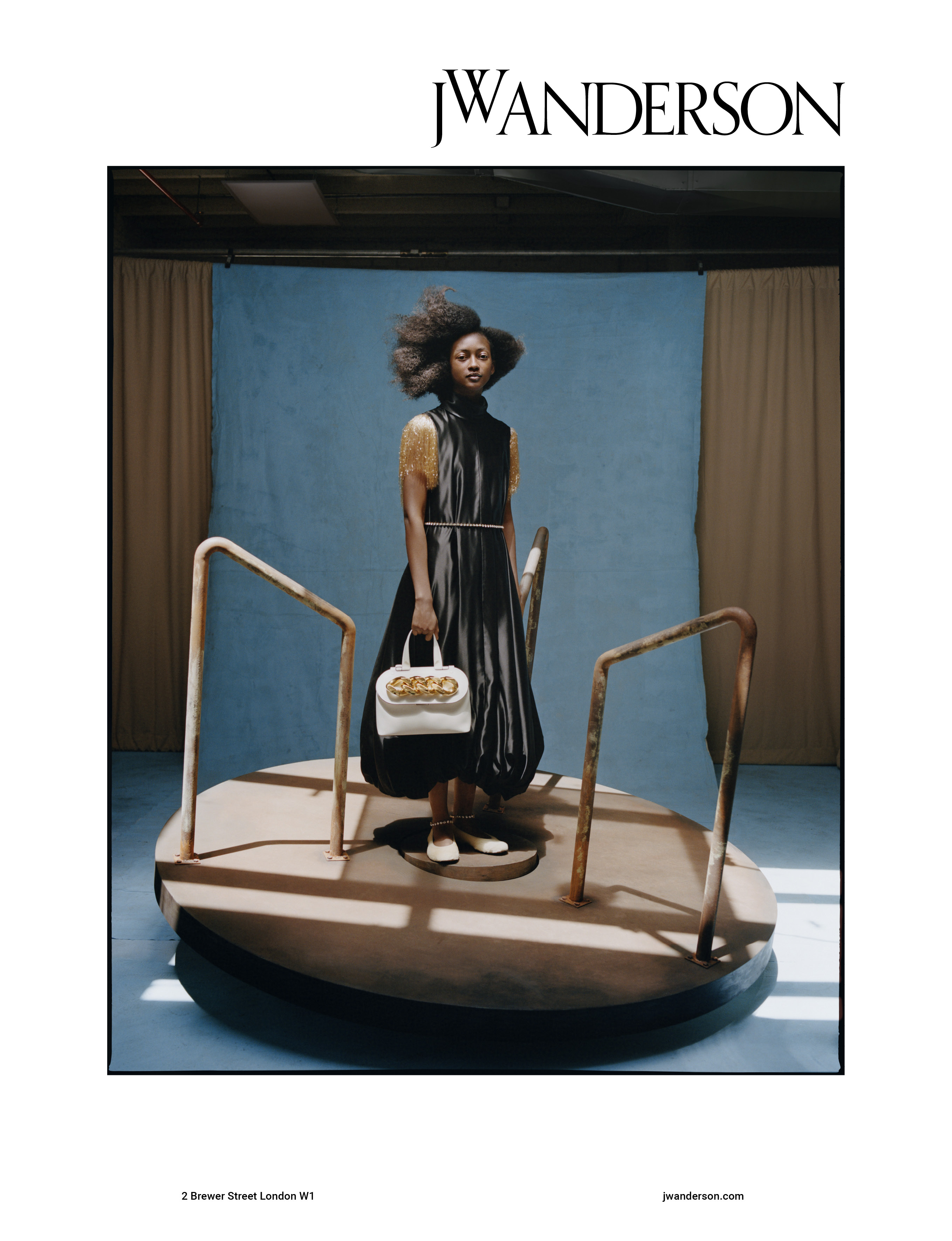 JW ANDERSON 玩味和TYLER的標誌性風格一拍即合,來到第三次合作,延續了上季的宣傳廣告風格,JW ANDERSON 2020秋冬系列廣告以圖像宣揚有趣,年輕及愜意的精神。這次找來了歌手TONI SMITH作為模特兒主角,而在宣傳廣告中,TONI SMITH與攝影師TYLER MITCHELL本人均站立在懷舊操場的「氹氹轉」上,帶來如同由「氹氹轉」外到內的獨特視覺,趣味盎然。