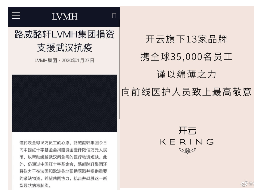 武漢肺炎疫爆發為我們的農曆新年蒙上陰影,為避免感染,大家拜年都戴上口罩,祝福由恭喜發財變成身體健康,不少中國品牌和電商公司都為中國疫情作出慷慨貢獻,而國際奢侈品集團LVMH亦於1月27日宣布將向中國紅十字會捐款近230萬美元(1600萬元人民幣),以幫助武漢醫療物資短缺,而LVMH的競爭對手開雲集團(KERING)最近亦宣布向受災最嚴重的湖北省紅十字會捐款110萬美元(750萬元人民幣)。