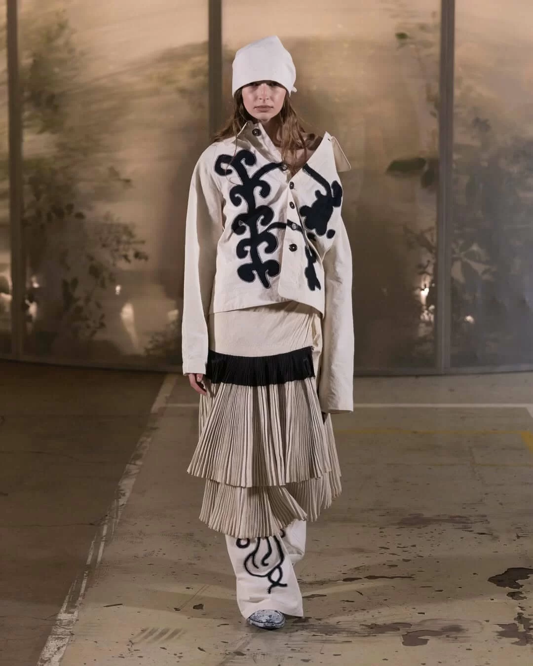 當然,我們也在建立自身獨特的審美,無論是顏色、切割還是圖案,你會認出這是 KIN YAN LAM 的作品。因此,我認為我們需要就此找到一個平衡點。我們品牌初期的服飾作品在剪裁和輪廓上其實是比較難穿著的,但經過第二季、第三季、第四季後,我們慢慢開始從中取得平衡。