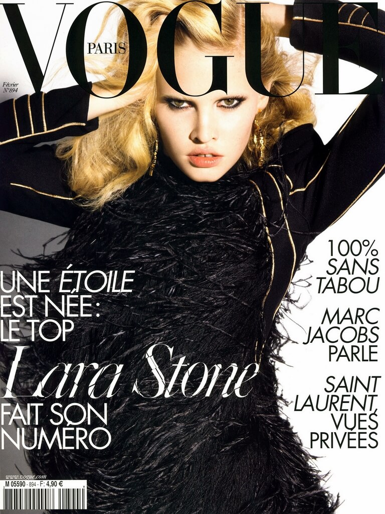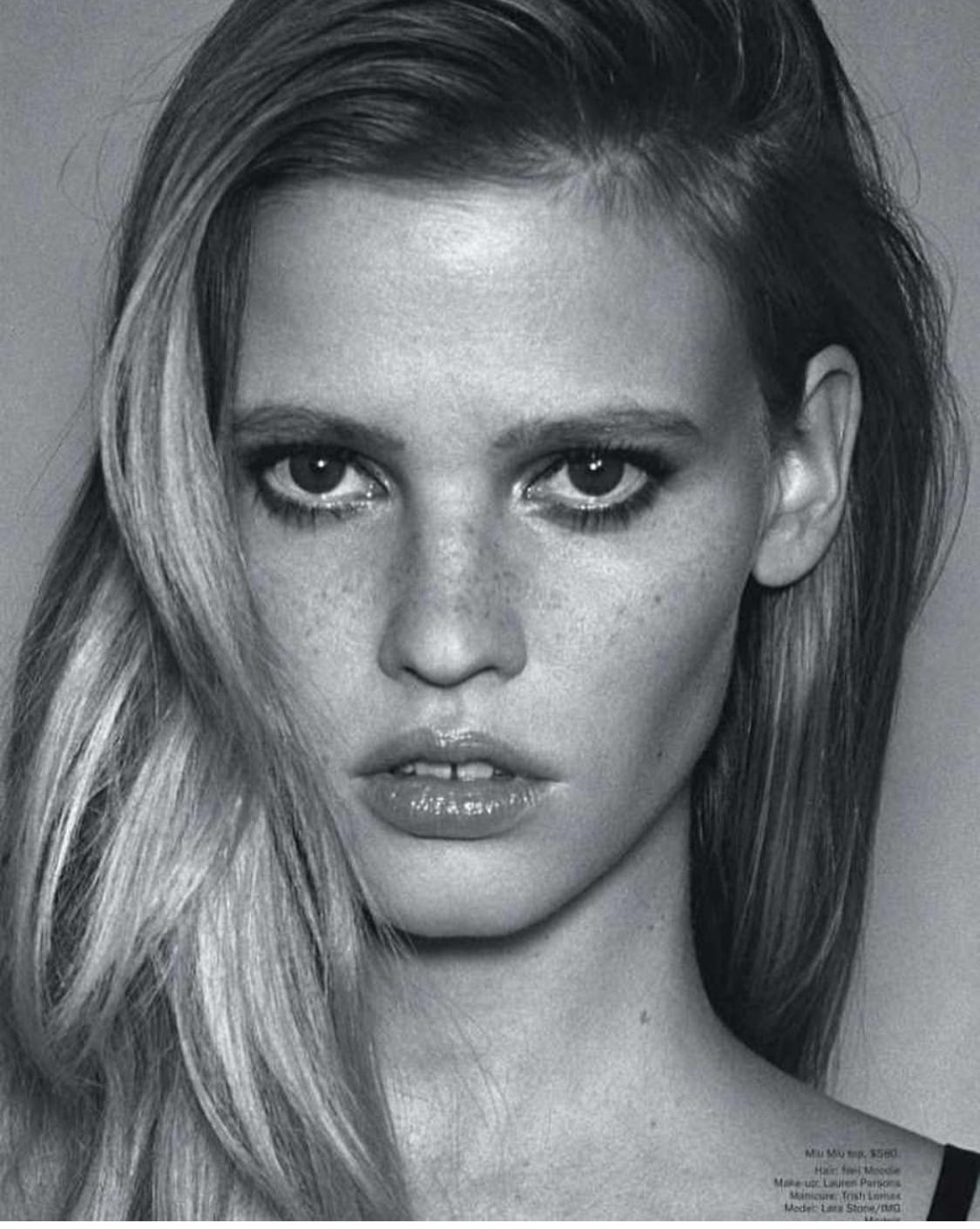 Lara Stone的經典封面有哪些?門牙的缺口給她的形象是不是只有流於表面的性感?事實上是給予她百變的多重風格,懾人的驚豔、像洋娃娃的可愛,還有讓你臉紅的性感她都能包辦,就是她的不完美,成功挑戰時裝界的傳統美學,改變我們對美的審視點。