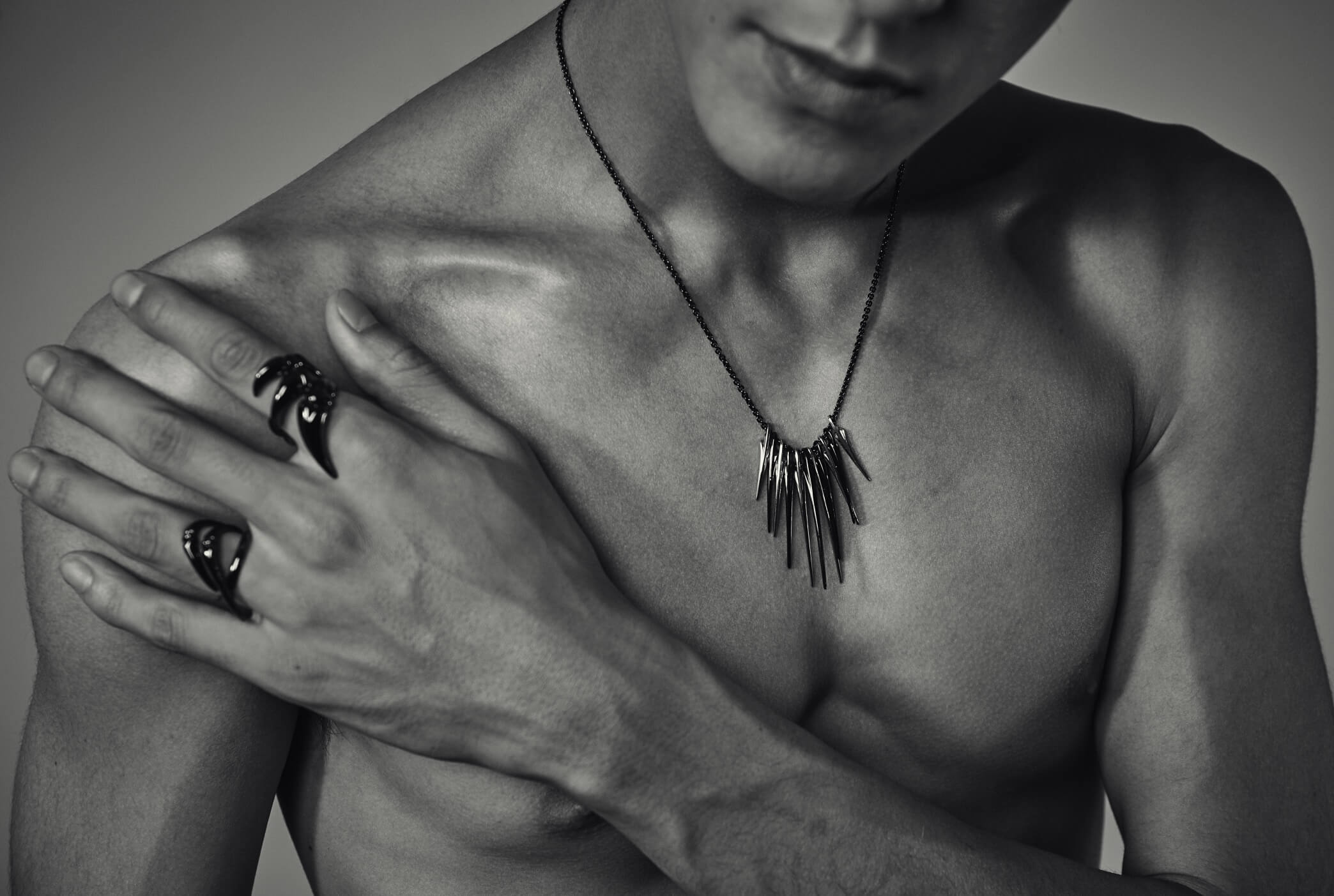 MANA 的爺爺是一名黃金藝術工匠、父母親亦是珠寶設計師,從小已被藝術及珠寶包圍。今季的作品靈感來自歷史博物館,MANA 以博物館中的骨頭、獠牙、爪子和角等展品體驗到生命的存在,作品不追求整齊及勻稱,相反地將傳統日本美學「侘寂」注入作品當中,在不失任何審美平衡下,短暫和不完美,就如 SHAMANISTIC 武士風格, 既具英雄魅力,同時為人帶來寧靜的感覺。