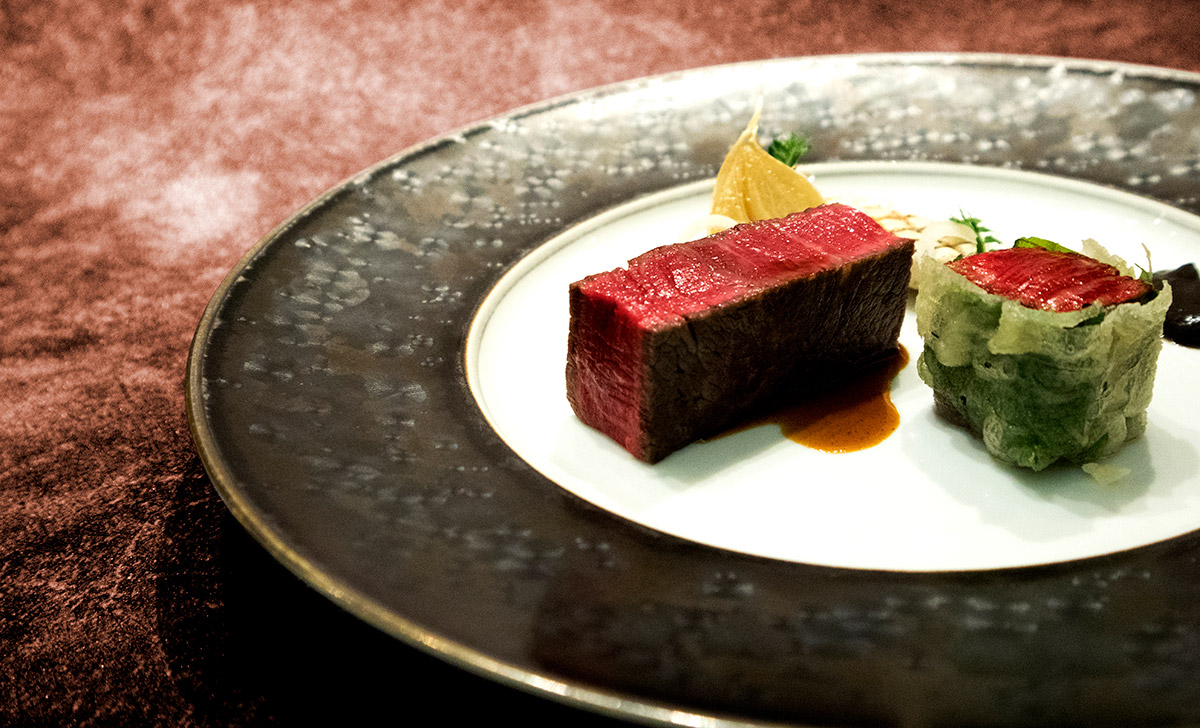 講情調的話,位於中環心臟地帶的Beefbar,以大地色配以皮製傢具、白雲石的裝潢,一定有夠氣派。今年情人節推出六道菜餐單,先有女士大愛的他他前菜,以蝦、南瓜和香橙醬製成的紅蝦他他,酸酸甜甜很開胃,更有法國鴨肉沙律配時令莓子、慢煮蛋黃配海膽和冬季黑松露,以及自家製意式小龍蝦餛飩伴以布袋芝士和蜜餞番茄,未上主菜已經很滿足了。主菜方面還有魚和牛兩種肉類供選擇,香煎鮟鱇魚或短角韓牛西冷扒配牛肝菌及薯蓉,紅肉白肉自己揀。
