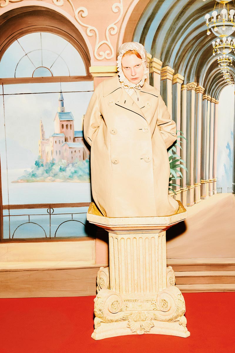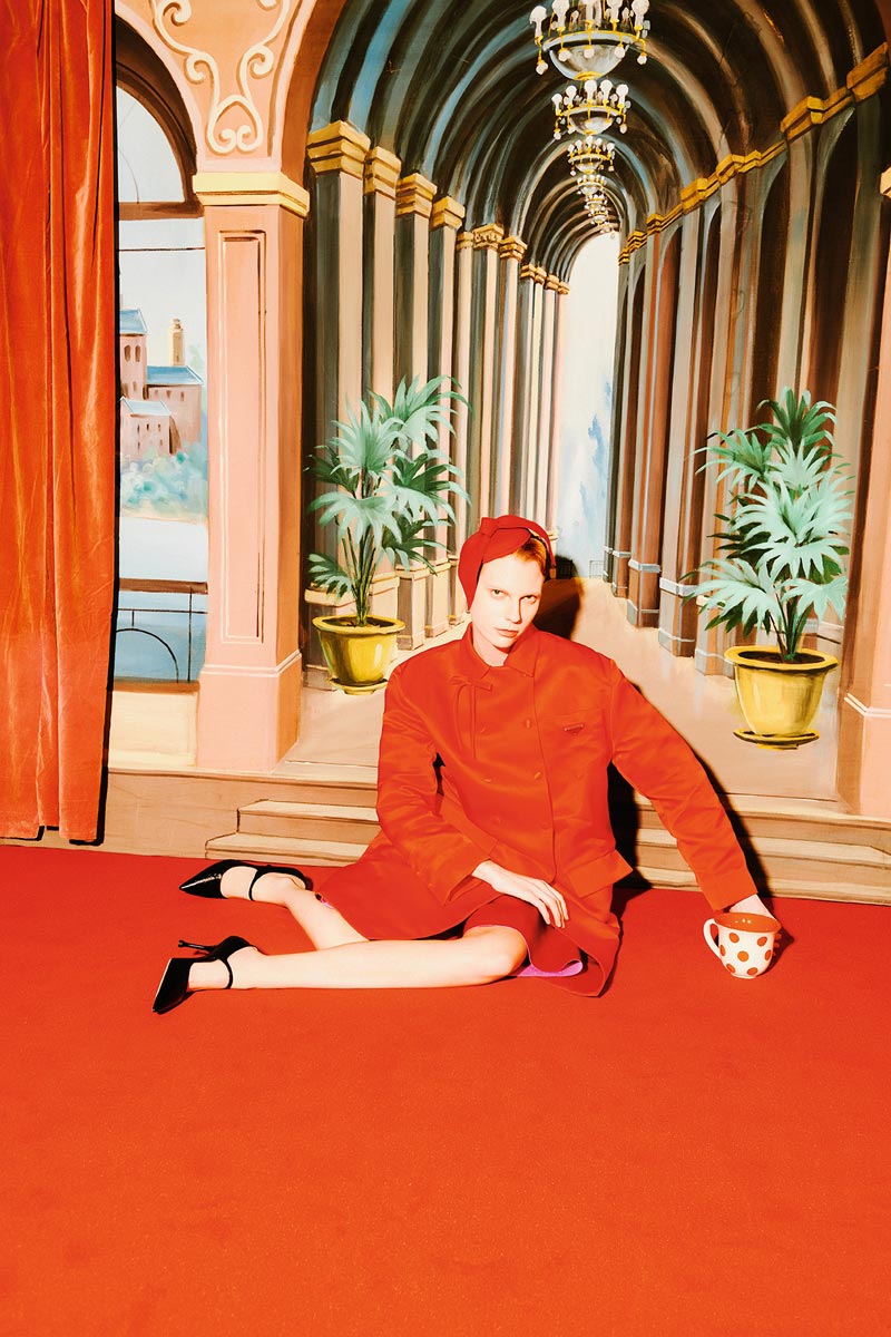 Satin coat $35,400 Pointed heels $TBC Both by Prada
