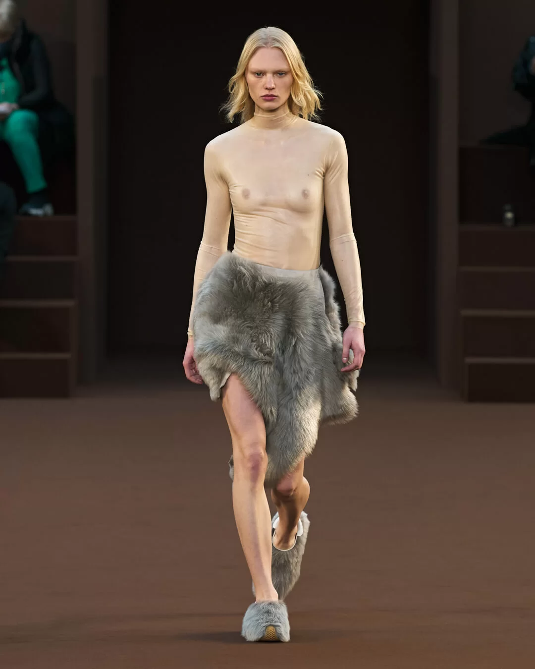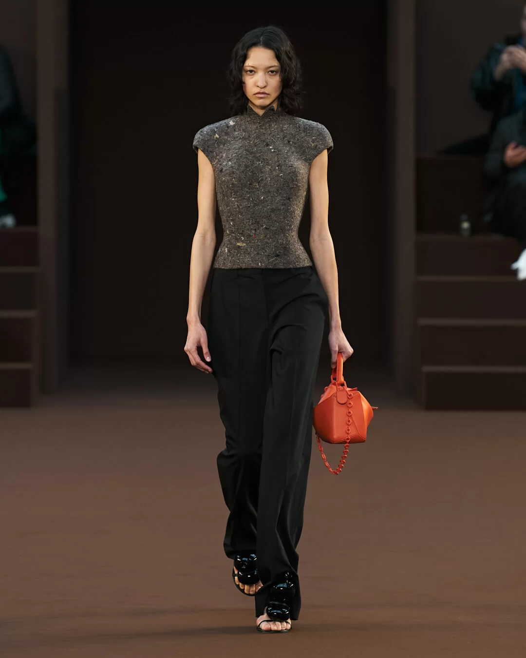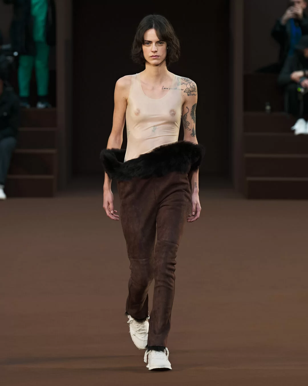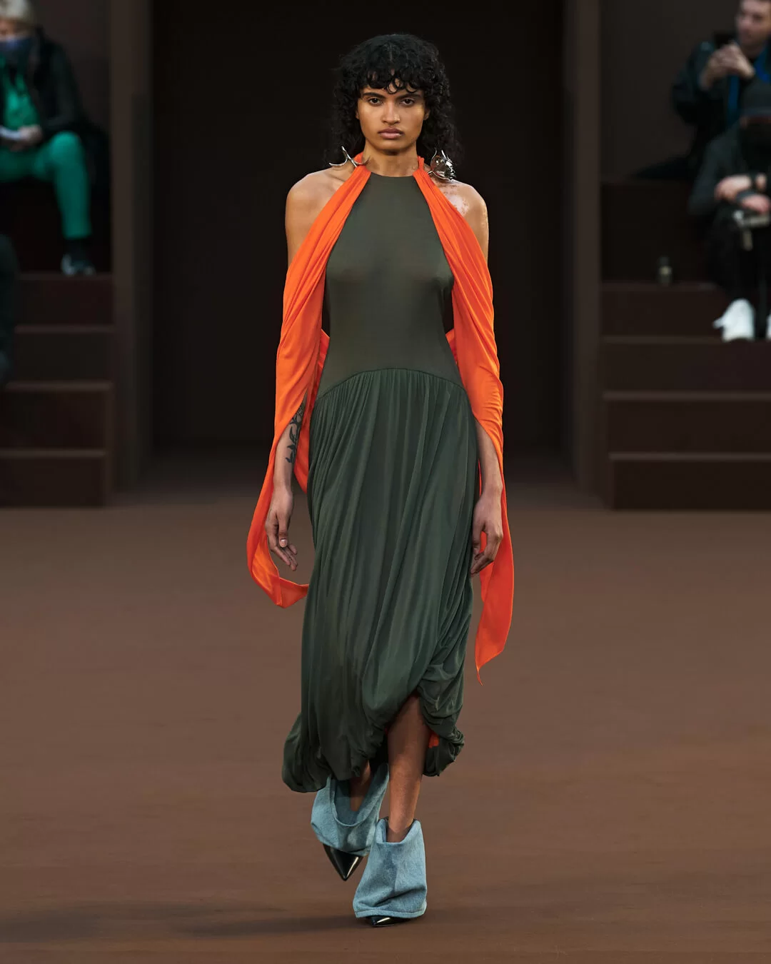 而藝術家另一個作品《AQUARIUS》則被複製後置於時裝騷場地入口處,畫面中男兒健美的體態如理想化的男性身軀,表現了圖像崇拜主題及對圖像引起慾望的一種質疑和反思。創意總監 JONATHAN ANDERSON 在今季系列就從這種思考出發,特別是有關如何透過時裝掀起人的原始感觀反應, 於是他藉著強烈的物料質感和誇張的造型尋覓箇中奧秘。