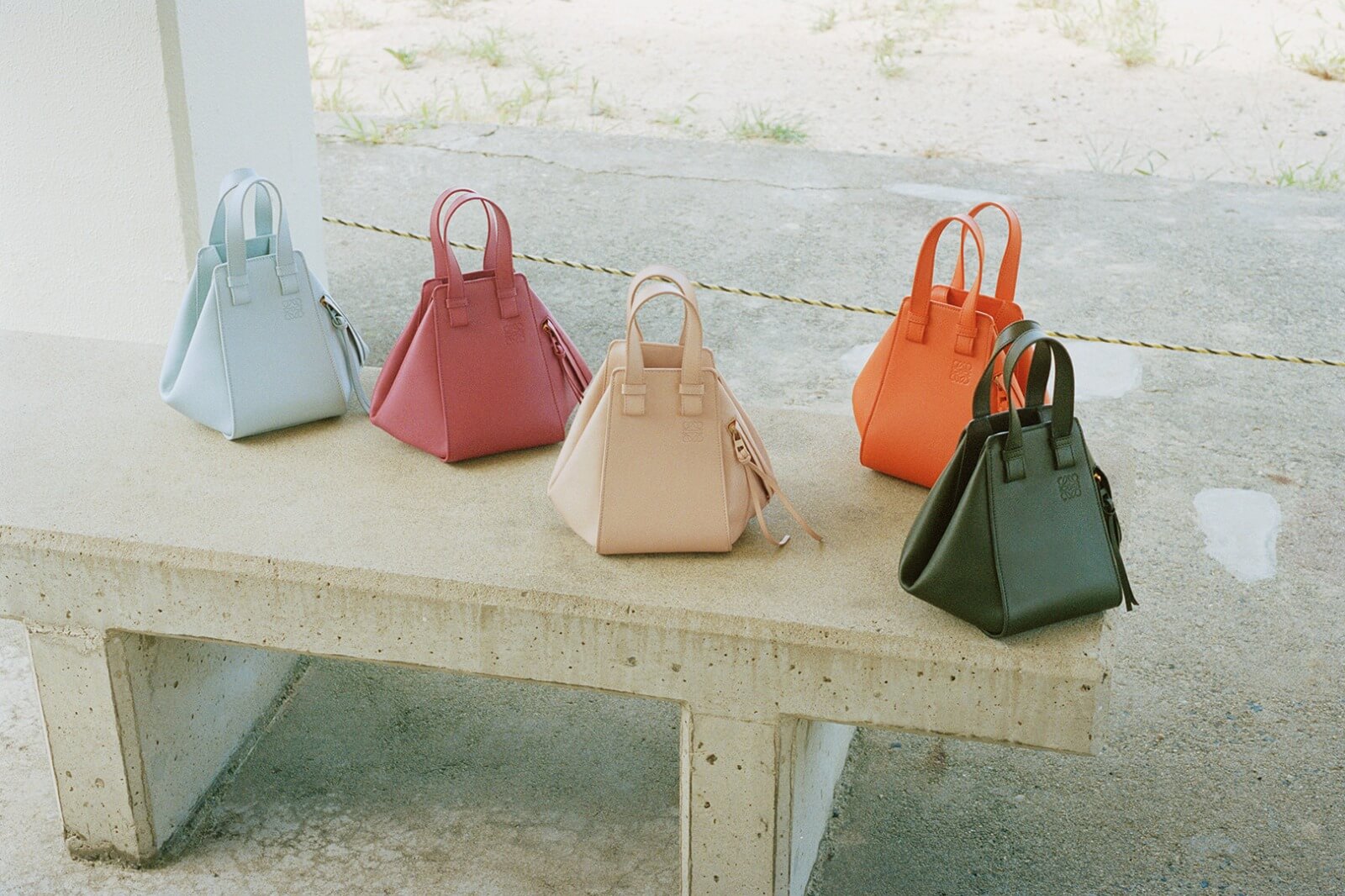 LOEWE 新作 HAMMOCK COMPACT 保留系列的獨特結構,但尺碼比例更緊湊小巧,尺碼介乎於細碼及迷你版之間,斜背、肩背或手提皆宜,迎合當今女士的活躍時尚生活方式。手袋以高級光滑小牛皮製作,顏色方面,備有復古綠、海藍、梅紅、橙色及米白色等選擇。