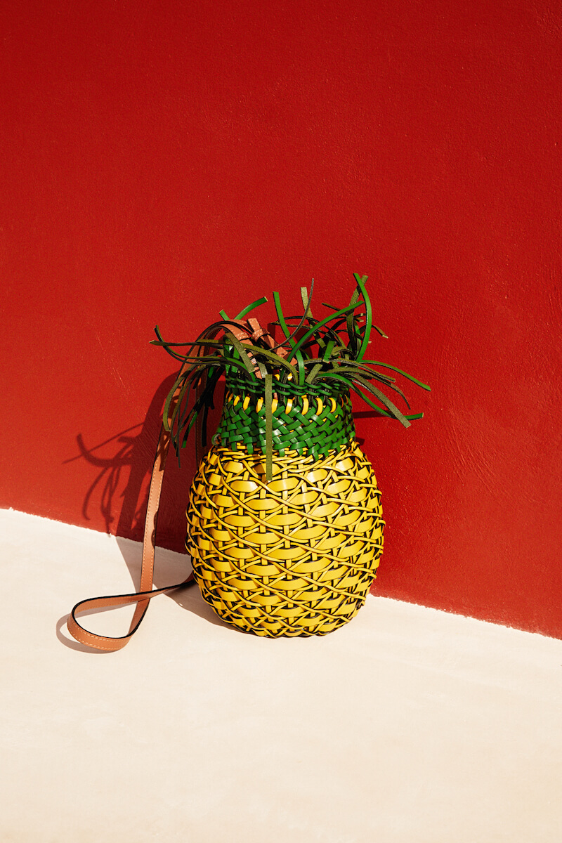 當然,PAULA’S IBIZA 標誌性的迷幻風格自然少不了,今次就將鸚鵡、白鴿與番紅花等圖案混入迷幻版本的 LOEWE 標誌中,並加入勾織元素點綴於連身裙、連帽衛衣、褲腳及短袖恤衫上。而上衣及長袍的幾何細節可見手工的質感,鬆身及不對稱服裝輪廓像隨意掛在身上,從容不刻意正是設計態度所在。而關注社會的 JONATHAN ANDERSON 也將 ANAGRAM 織籃交由哥倫比亞 CORPORACION OFICIO Y ARTE NGO 手工藝合作社中的女工匠手工編織,宗旨是令女工匠可以財政獨立並為子女提供教育機會,她們的織籃製品送到西班牙由 LOEWE 皮革工坊再加工製成。而 PAULA’S IBIZA EAU DE TOILETTE 淡香水已於去年面世,今年芬芳重臨,中性的香味帶有不羈自我及熱帶氣息,如將遠離煩俗的歡悅氣息載入瓶中,為 IBIZA 系列添一抹香氣的深度。