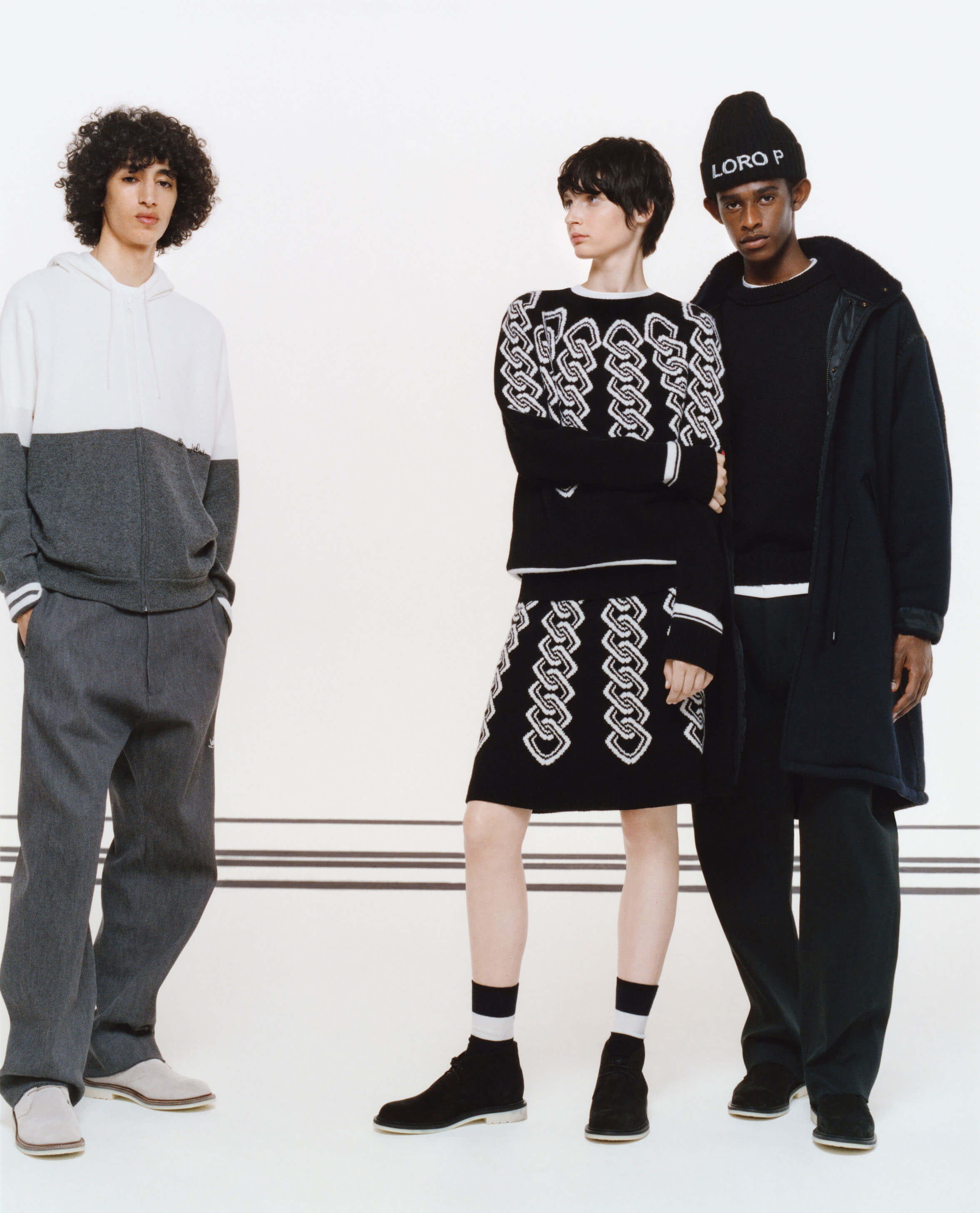 今次合作也是藤原浩首次以個人名義與其他品牌聯乘合作,重點以他的角度將 LORO PIANA 的經典設計改造,推出 10 款設計俐落的造型,並加入日本的純淨元素。重點有「TSUNAGHI」鎖鏈圖案的幾何設計,圖案有著雙重意義:在日本文化中象徵幸福和互動交流,而於今次的合作,則有著雙方世界觀結合的意思。