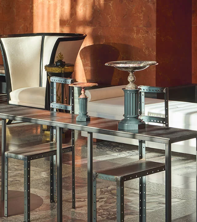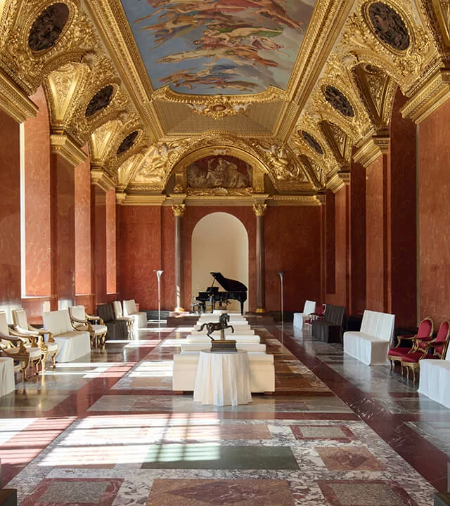 此次,LOUIS VUITTON 選擇在巴黎羅浮宮發布全新系列,該地曾是法國王后奧地利的安娜(ANNE OF AUSTRIA)的夏宮,呼應了家與藝術這兩大主題。設計師兼舞台設計師 MARIE-ANNE DERVILLE 精心挑選了不同时代的傢具和精品,包括 18 世紀傢具工匠 GEORGES JACOB 的作品、1930 年代 MICHEL DUFET 微創作的藝術風椅、19 世紀陶藝家 PIERRE-ADRIEN DALPAYRAT 的雕塑作品,以及她親自設計的傢具,將空間構建成跨越不同世紀的法式美學親密空間。