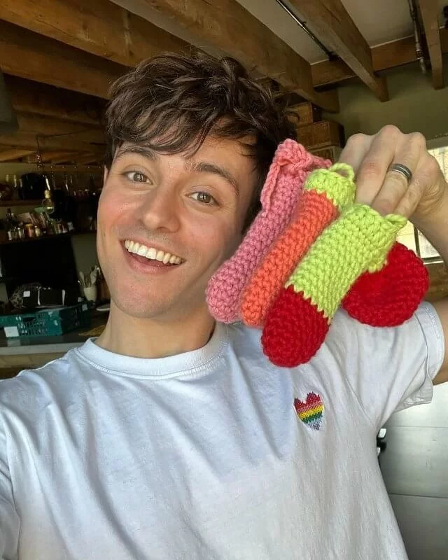 擁有陽光男孩的笑臉和完美腹肌的「跳水王子」TOM DALEY 熱愛針織手藝,除了有運動員的身份外,更有屬於自己針織作品的品牌平台 MADE WITH LOVE BY TOM DALEY,最近他推出了新品,呼應品牌名稱,作品名為 MADE WITH LOVE WILLY WARMER ,故名思義是和 WILLY (陰莖)有關,形狀看起來有點奇妙,而 TOM DALEY 更在平台上咧出招牌笑容,向大家示範多種不同的穿戴方式,例如可當作頸鏈、耳環、髮箍、手袋等等,認真鬼馬。