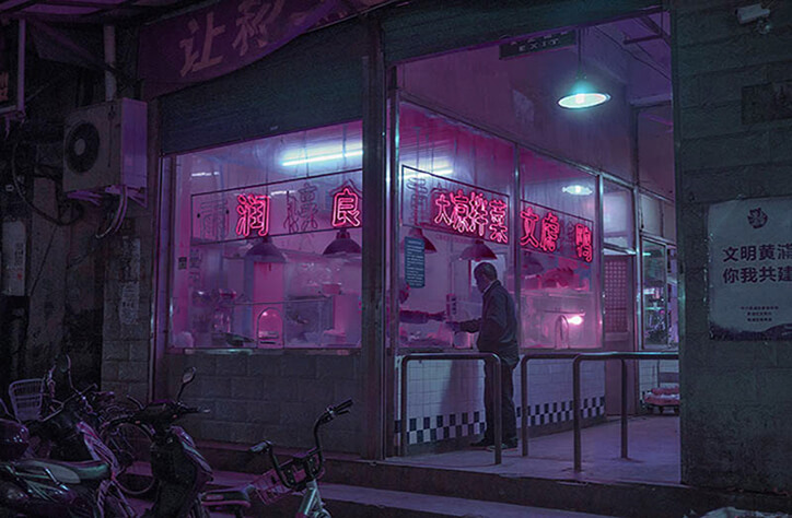 「作為90年代科幻電影的忠實粉絲,我想將這種美學應用於亞洲的街景上。」Marilyn Mugot這樣說。這位法國攝影Marilyn Mugot 一直流浪,總是沈醉於陌生國度的迷失感。她遊走中國重慶、桂林,遊走過香港潮濕的街道,攝下了一系列名為「Night Project」的作品。在她鏡下,看到了我們忽略了的魔幻現實主義。唐樓樓閣上的暗燈是在等待著誰人?轉角巷弄的士多又在夜裡為著何事堅持?