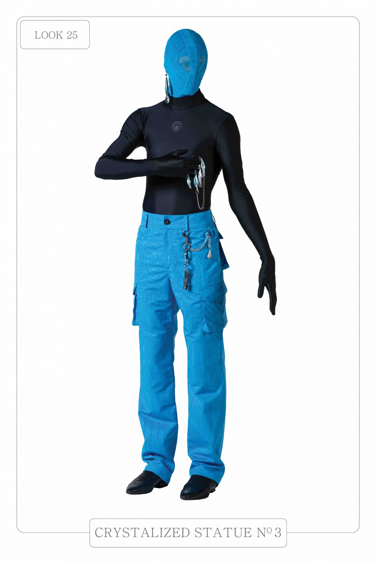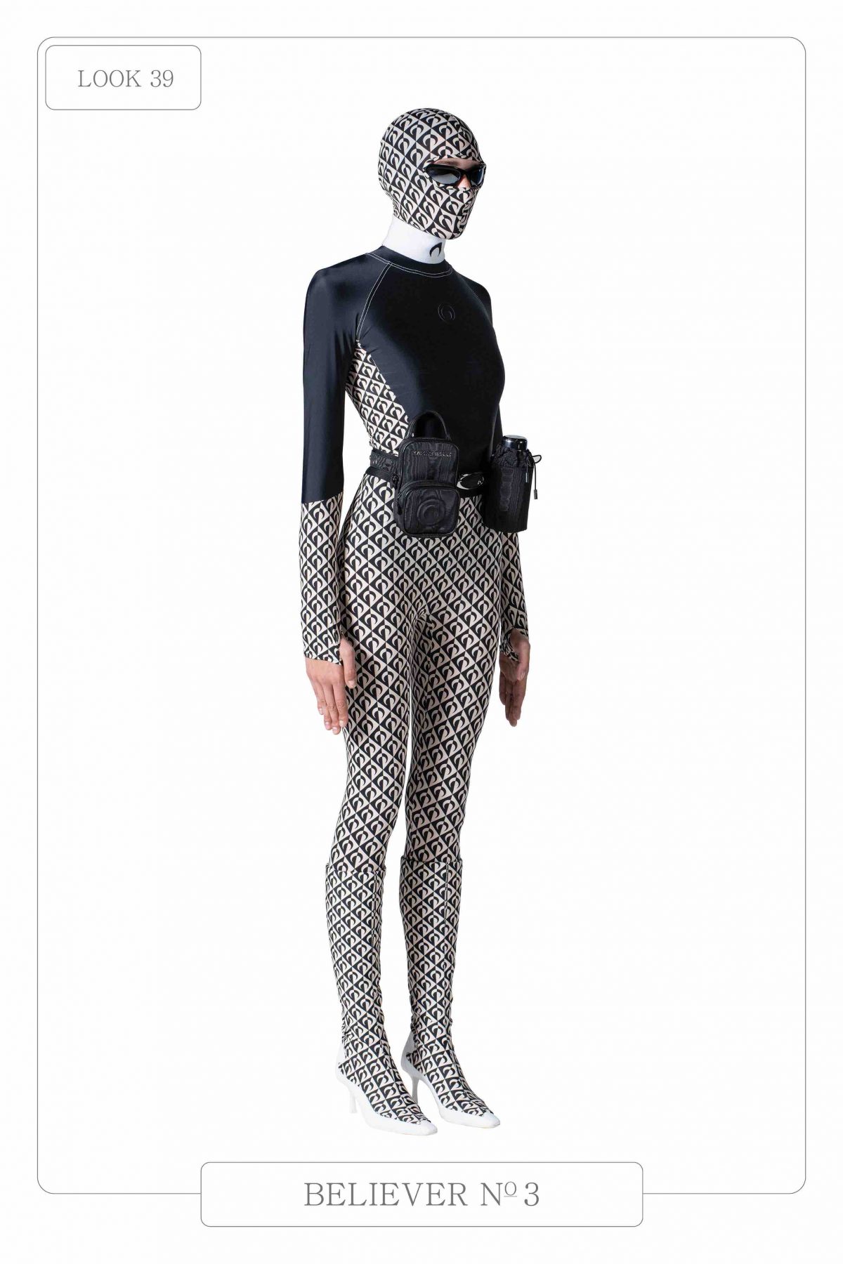 這季,MARINE SERRE 帶來的SS2021系列混合著民族風格、未來主義、科技感,更帶一點CULT味。整個系列由裸體、無性別、無性徵的人作為序幕,總共有43套,當中所謂的「民族風格」有許多都是用舊地毯製成的。其餘剪裁都以貼身俐落為主,每一套的焦點都清晰易見。另外,這季也呼應了新冠疫情,帶來了充滿未來感的護目頭罩。
