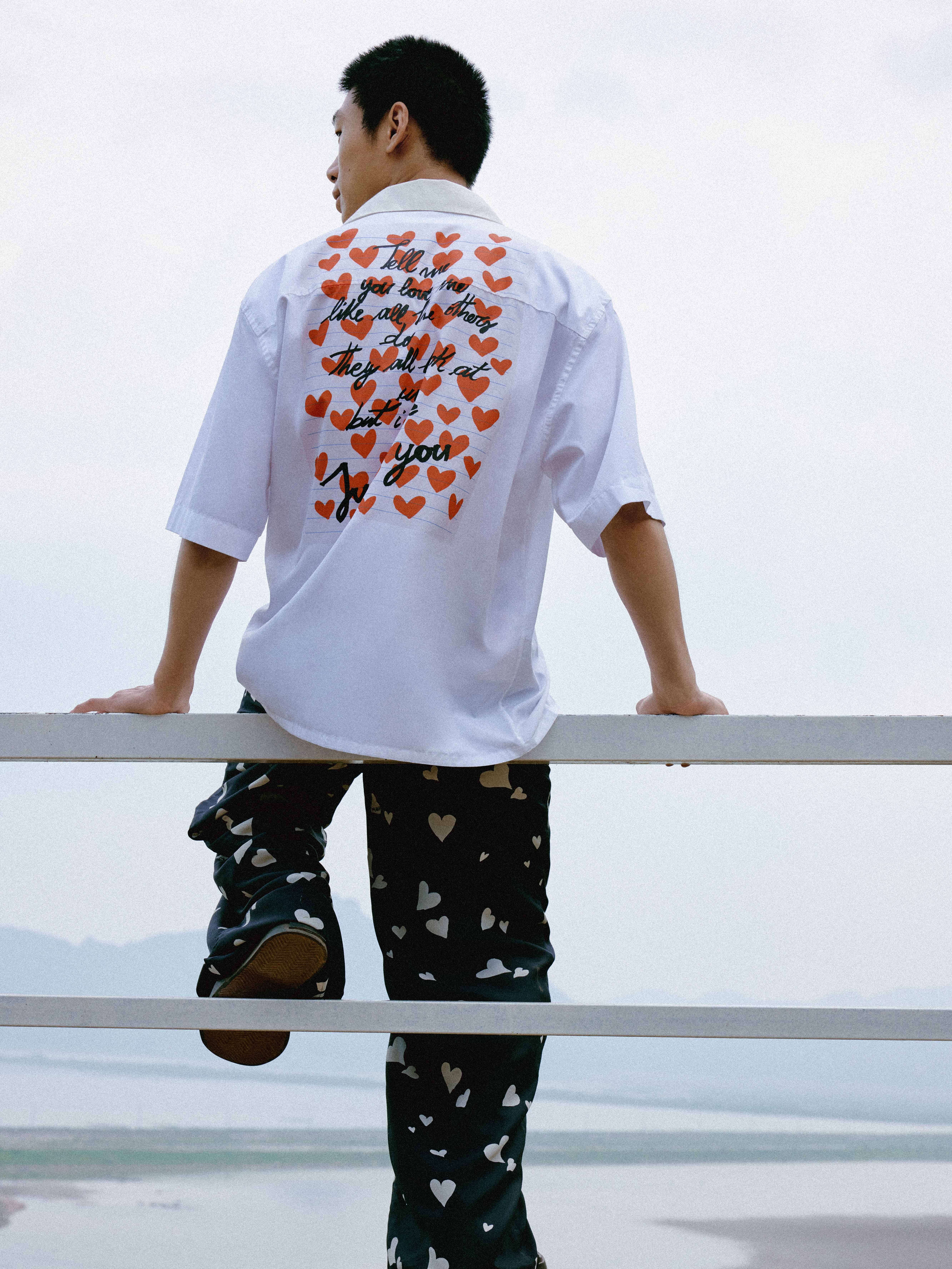 本次限定單品將愛心元素、浪漫詩篇與 MARNI LOGO 互相結合,涵蓋 T-SHIRT、恤衫、衛衣款式,以七夕中甜蜜且充滿愛意的氛圍,延續一貫無性別的衣著配襯風格。以情書形成作為恤衫背後 GRAPHIC、OVERPRINT 設計的背心及長褲,色調以黑、白、藍、紅、黃為主,可見標誌性的間條紋及近期大熱的運動元素結合,盡顯品牌活潑玩味的性格,從 STYLING 上的 MIX & MATCH 完美體現 MARNI 在顏色比例配搭上的獨特美學。