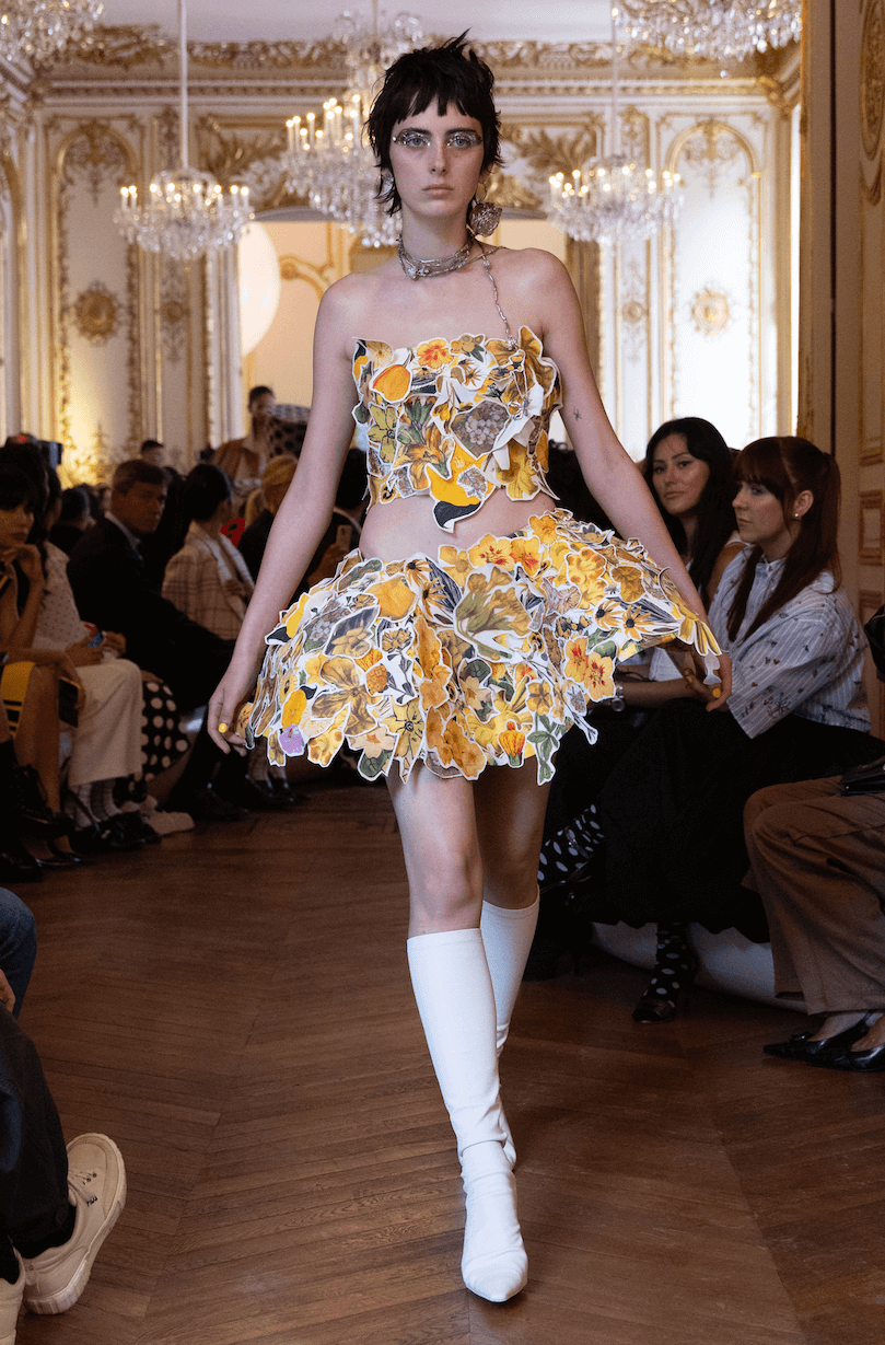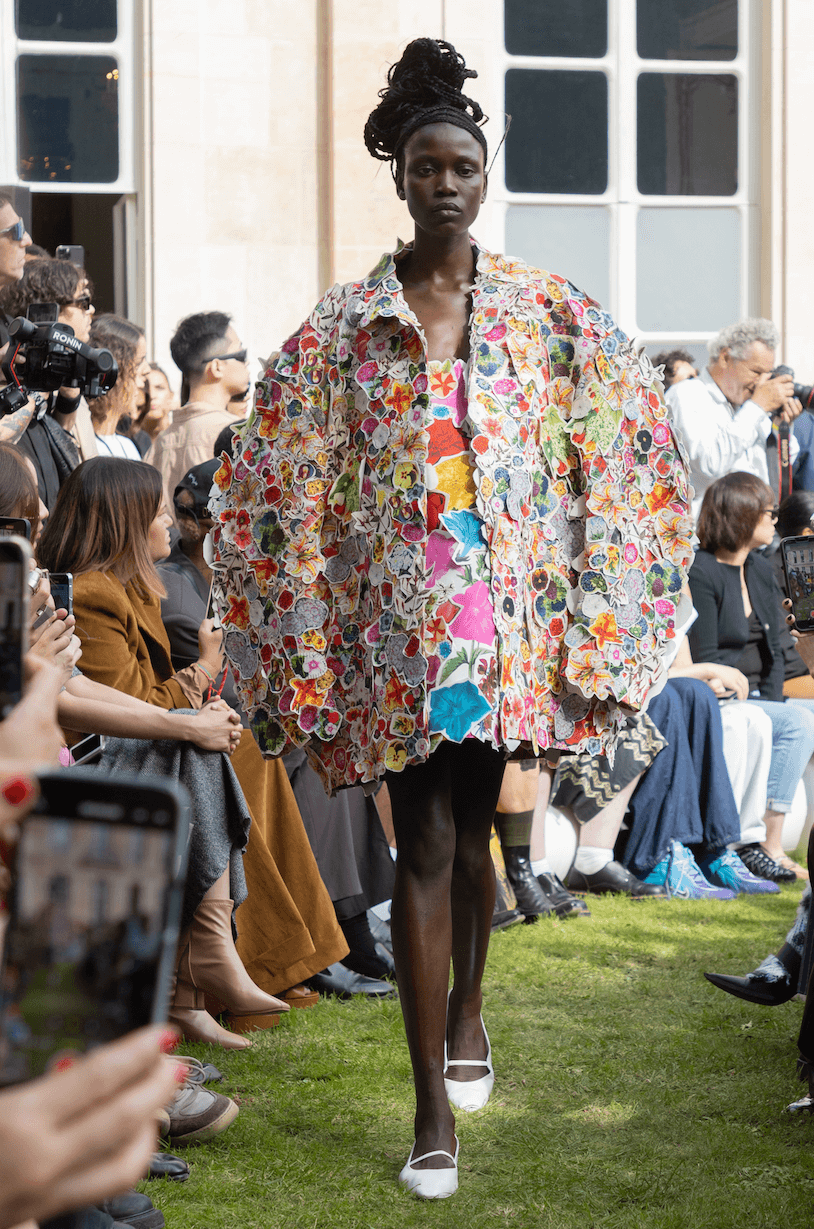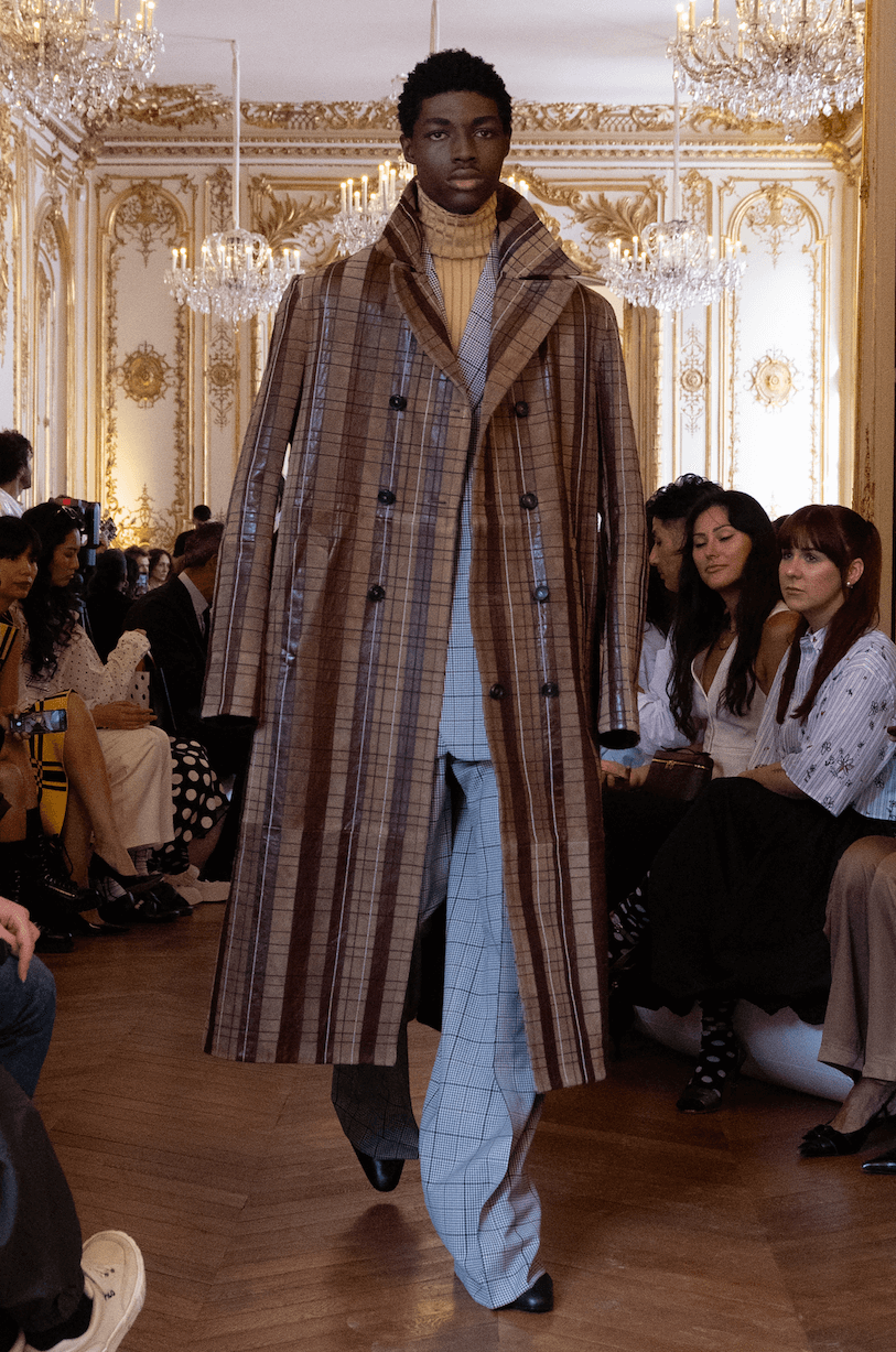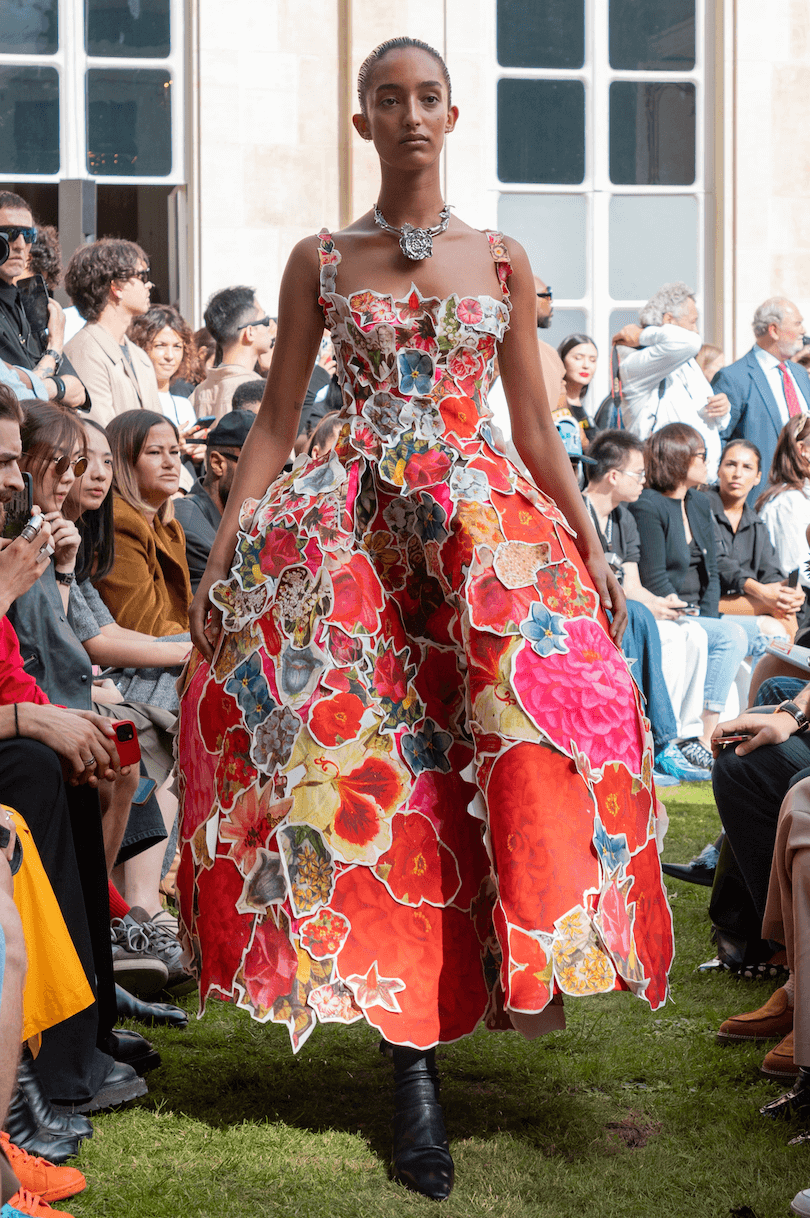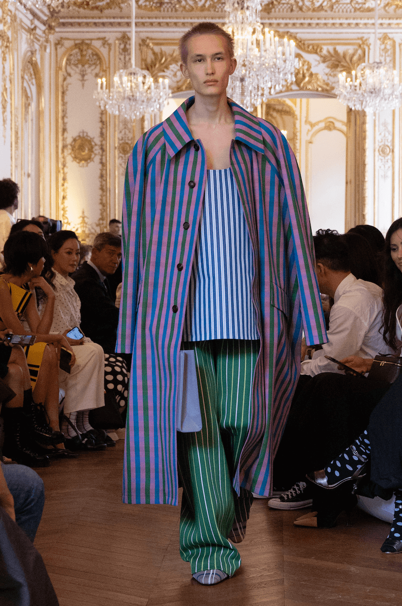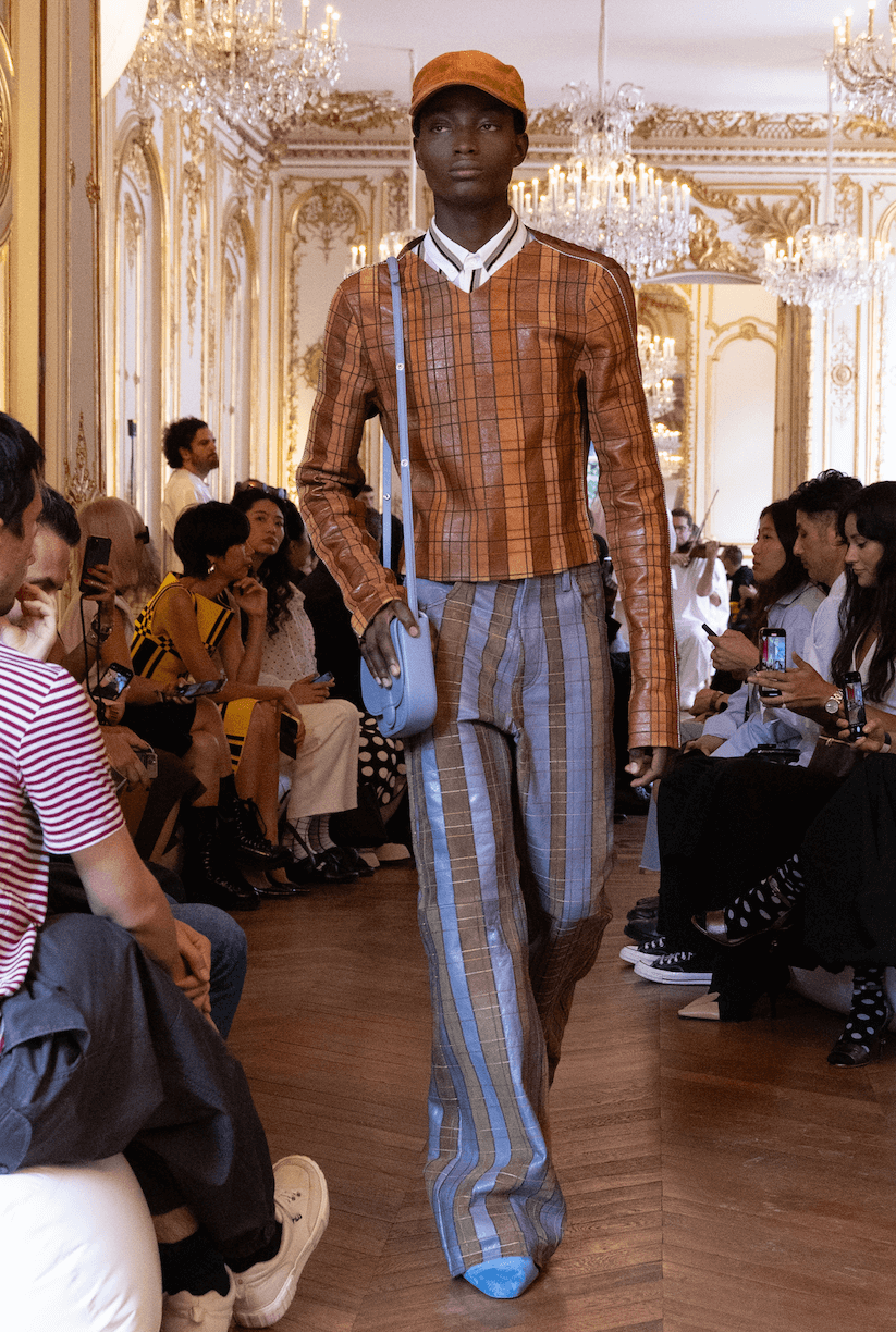 MARNI SS24 在巴黎市中心一座宮殿舉行,此地曾經是 KARL LAGERFELD 的私人住宅,在 FRANCESCO RISSO 的掌舵下,MARNI 設計出不同富冒險精神、玩味十足卻摩登時尚的系列,精心雕琢,將平面線條幻化為立體的輪廓。新系列也不例外,除了一如以往的色彩繽紛之外,從超 OVER-SIZED 大褸到四四方方的西裝外套,彩色格紋和條紋結構既具標誌性亦帶來另一種新觧感。經典著裝重塑成全新的模樣:毫不修身的超短連身格仔裙呈現出一種新的性感;漫不經心的透明設計;堅挺的皮革套裝俐落有型;如花卉剪紙的拼貼裙子配上玫瑰項鏈,趣味十足;有更多款立體精緻如雕塑品的禮裙讓人驚艷;當然少不了經典實穿且被受 GEN-Z 喜愛的短版針織套裝或西裝款式。