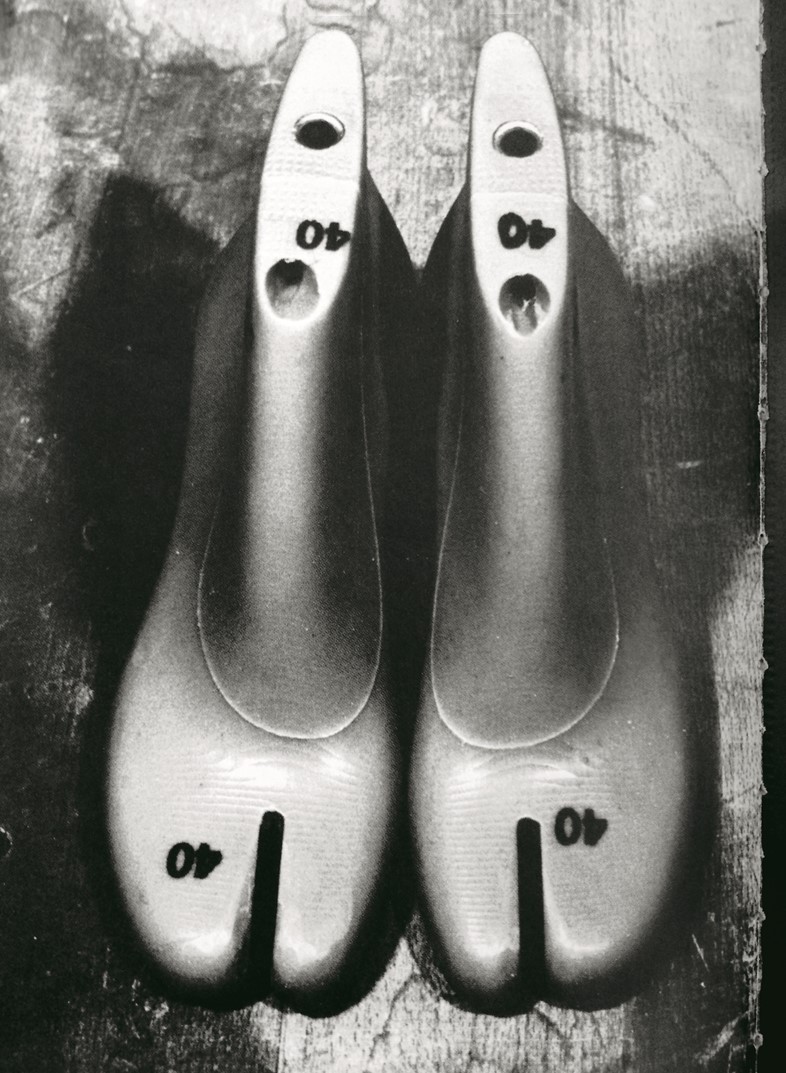 Margiela的Tabi Boots靈感來自於日本的忍者和將大拇指分開的傳統襪子,據說設計把拇指與其他四隻腳趾分開,不但更舒適,亦可讓人更靈活地活動。1996年春夏系列,Martin Margiela再接再厲,利用膠紙,把分趾的厚底高跟鞋鞋底,與腳掌纏為一體,設計出一對充滿藝術性與實驗性的透明膠紙Tabi Boots,成功把忍者鞋推至最巔峰狀態。