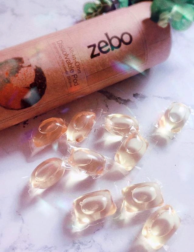 品牌如Aesop會回收PET 1或PP 5塑膠製品作循環再生用途,原創自香港的Zebo更利用可以被完全生物分解的聚乙烯醇(PVA)薄膜包裹多用途皂液,取代塑膠容器。每個小顆粒都遇水即破,釋出一次分量的溫和皂液,不含硫酸鹽(Sulphate)、對羥基苯甲酸酯(Paraben)及矽質(silicon)。既可充當洗髮乳,也可用作沐浴露,方便外帶和旅遊,也大大減少浴室角落那堆膠瓶空罐。