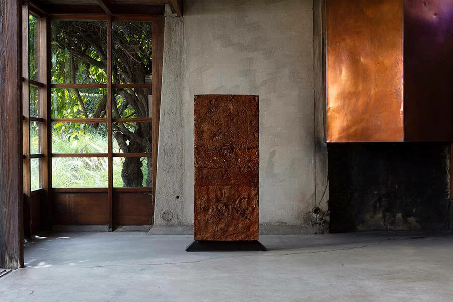 SCHINDLER’S HOUSE 是一座歷史悠久的建築,由奧地利建築師魯道夫辛德勒 (RUDOLPH SCHINDLER) 設計,原始的極簡主義建築成為是次展覽的歷史與創作背景,與他的作品產生對話。HELMUT LANG 偏愛「帶有過去的傷痕和記憶」的材料,讓空間充滿著過去和未來的幽靈。