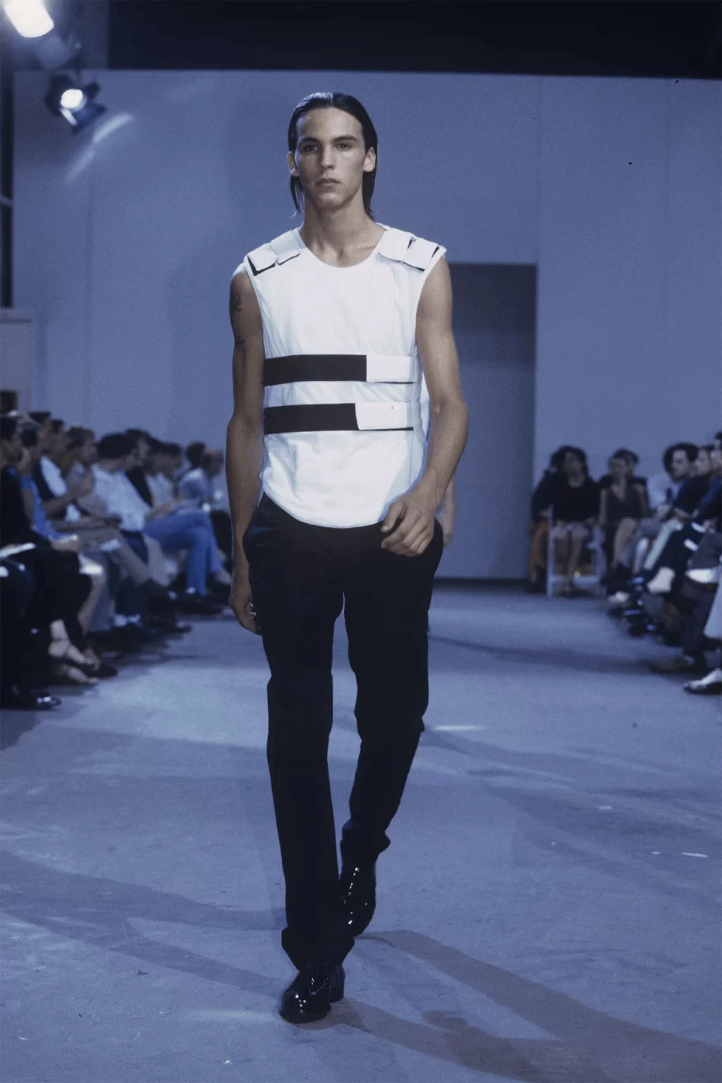 分解和重組是 HELMUT LANG 一貫的設計手法,大家可能會想起 2003 年秋冬成衣系列重塑身體輪廓的安全帶外套和 1994 年設計的橡膠和蕾絲連身裙。以上皆可見 HELMUT LANG 並沒有拋放棄他在時尚生涯中培養出來的理念。他改變了媒介,但依然思考著以下問題:居住在空間意味著什麼?材料如何承載歷史?形式如何形塑身分?