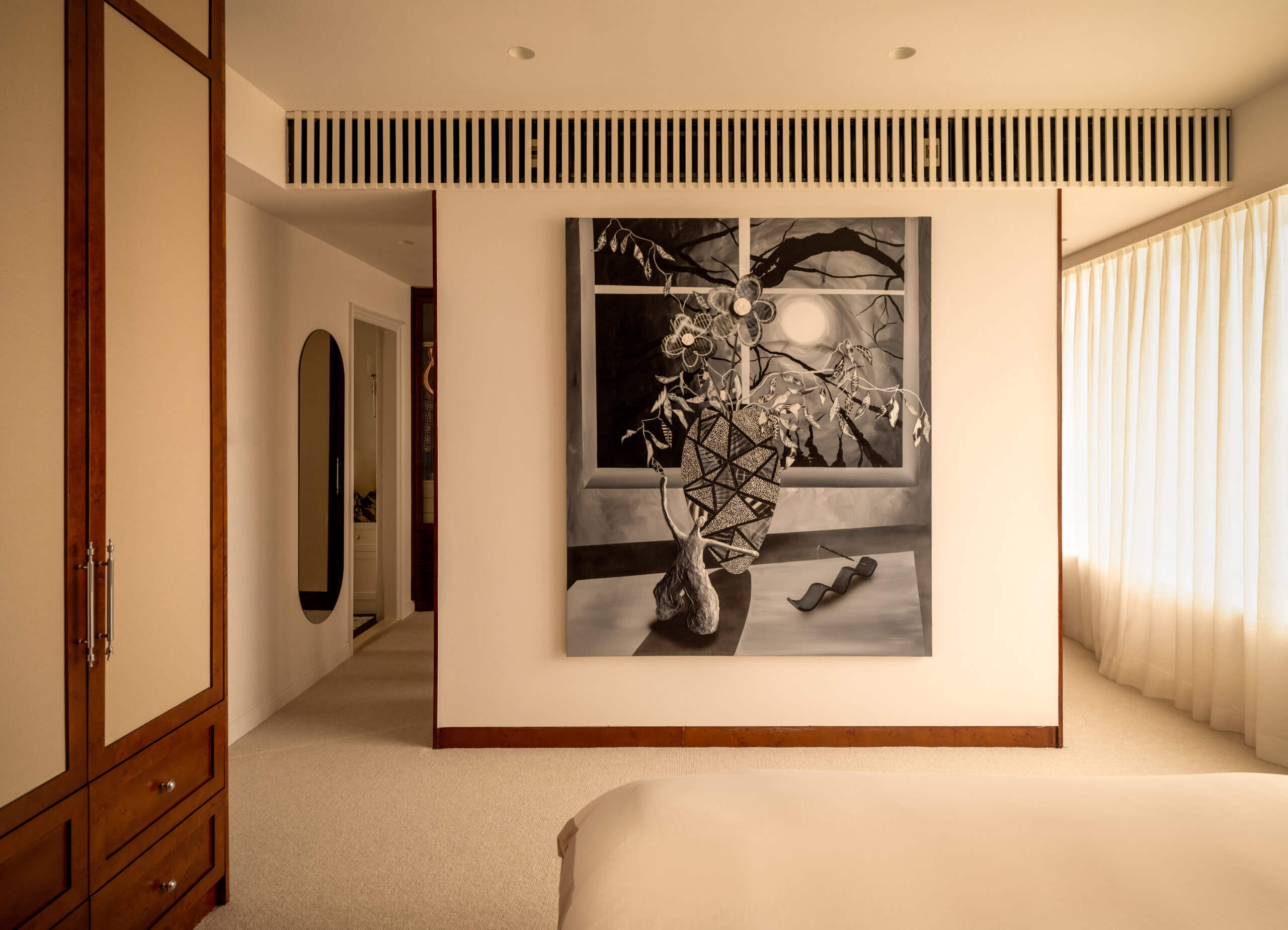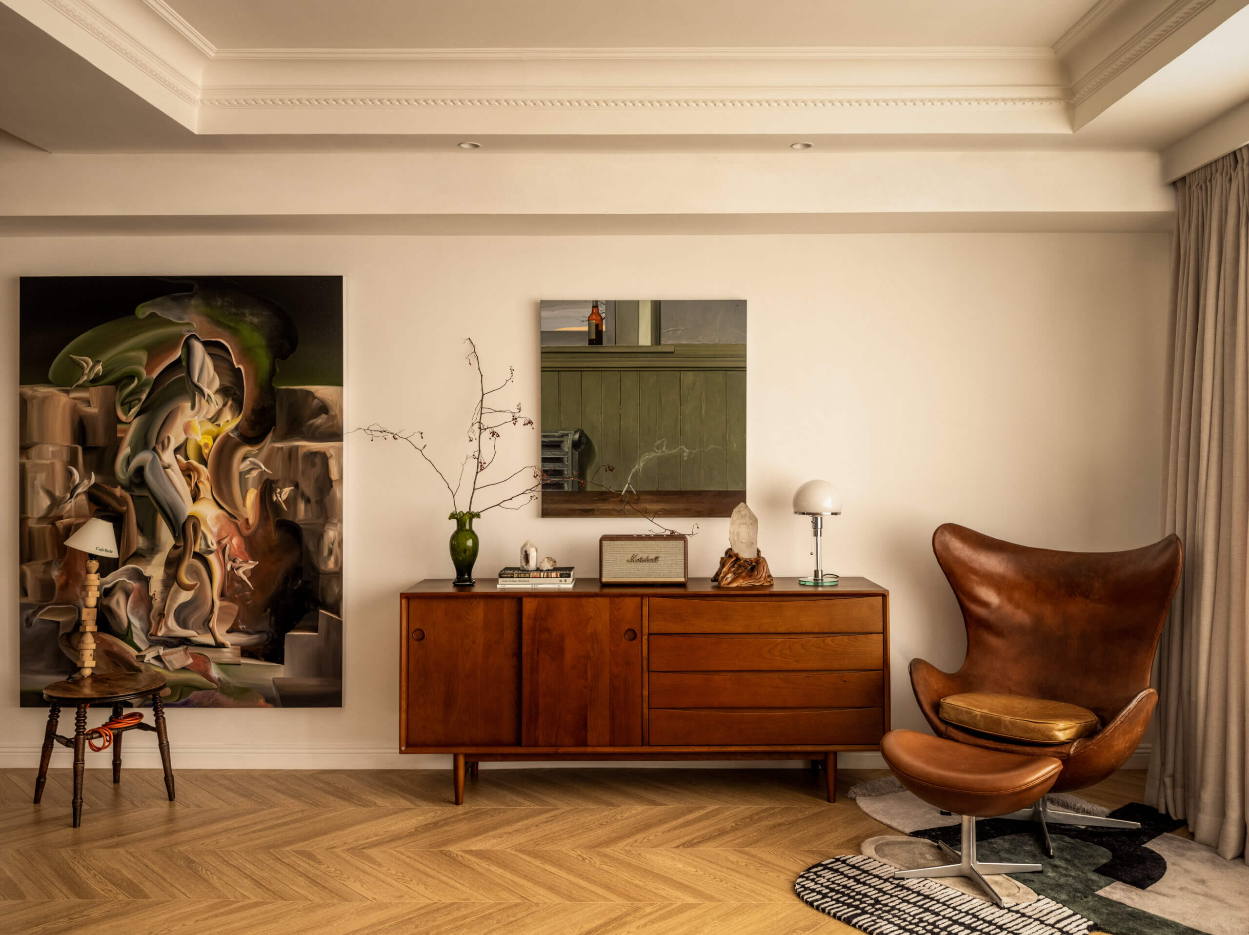 Q: 和熱愛藝術的屋主合作時,我最重視的是「互相理解」而不是「誰說了算」。屋主的收藏代表了他們的品味與人生經歷,而我的角色,是幫他們把這些故事用空間語言說出來。 在這個過程中,我會花很多時間去了解他們收藏背後的原因:為什麼喜歡某位藝術家、是否有特別的情感記憶、希望每天在家看到怎樣的氛圍,甚至是他們對光線與顏色的耐受度。這些交流往往比單純談「風格」重要得多。