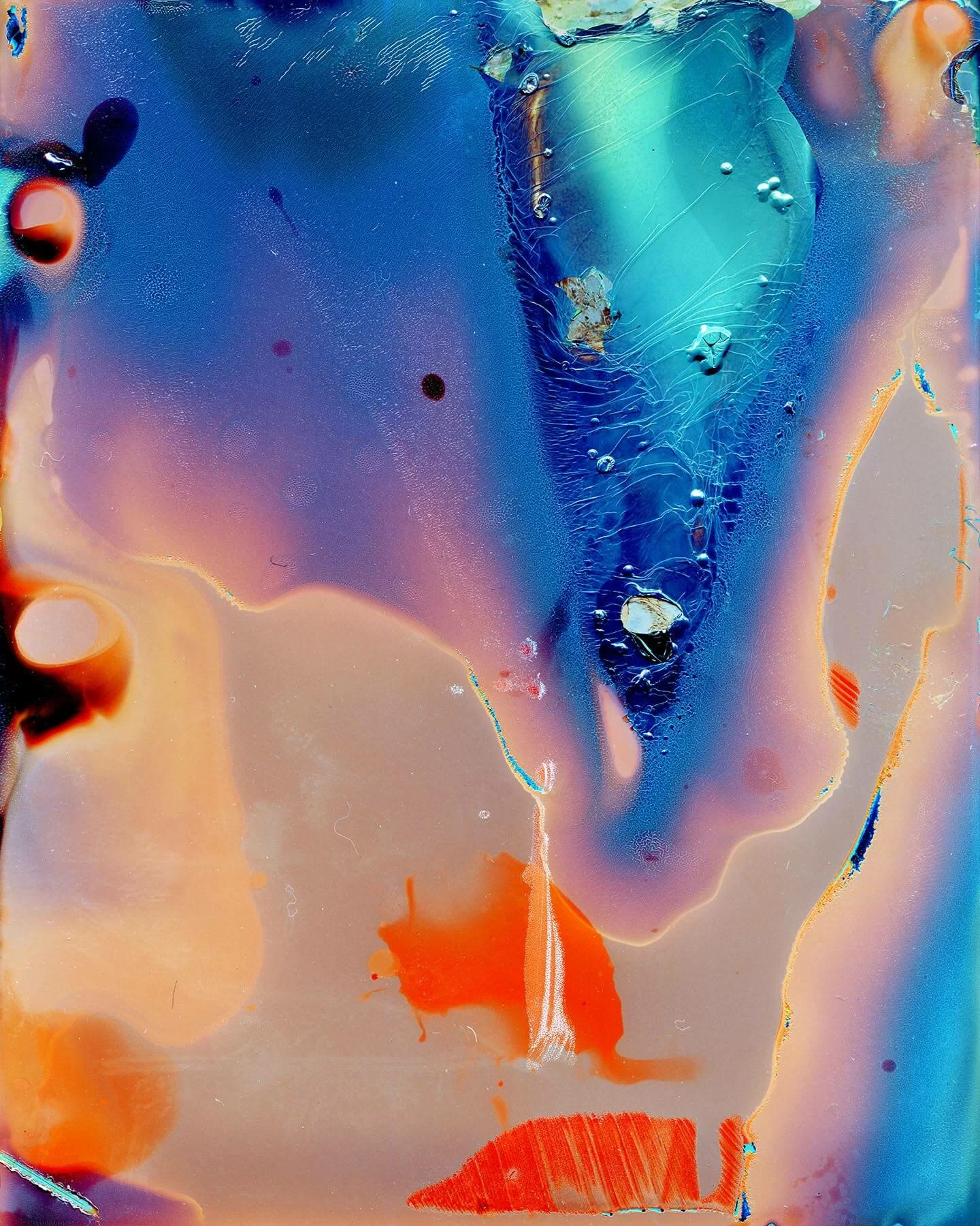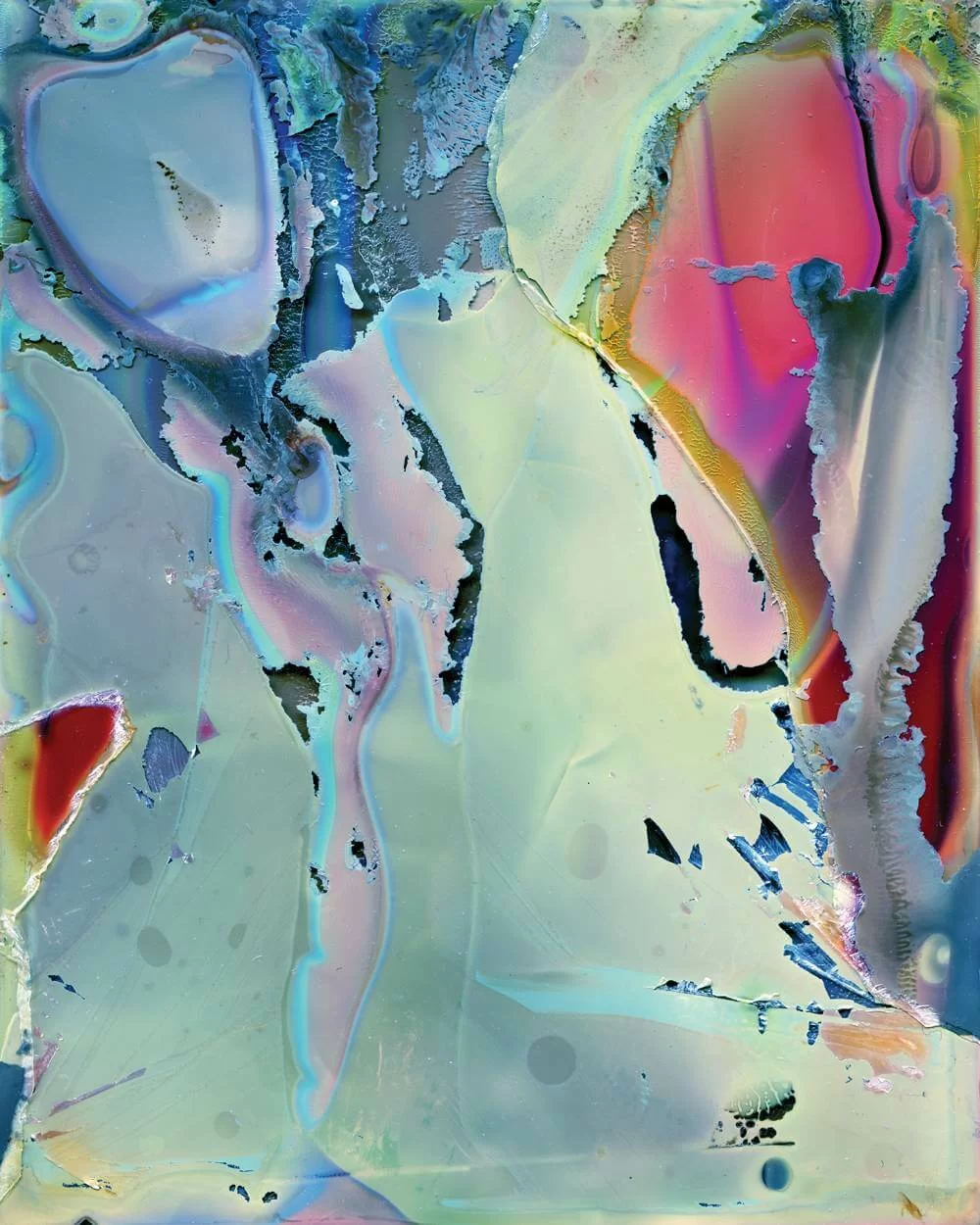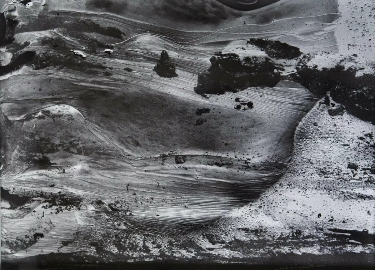 橫田的作品因其令人難忘的物理特性著稱,既像炸開的煙花,又像輕盈的雲霧。在他銀色調、以直觀創作的作品中,橫田故意破壞傳統的顯影方法,將膠片暴露在漏光中、燒焦底片,或將其置於沸水和酸性液體。剩下的不是攝影的對象,而是一個充滿陰影、紋理和不可預測的扭曲抽象世界。他的影像乍看之下像科幻電影場景的遺跡,像爆炸一樣消除了所有細節和起源,有時還會出現扭曲、無面孔的輪廓。藝術家帶觀眾進入超現實主義的世界,在若隱若現的城市建築和自然有機形態之間取得平衡。
