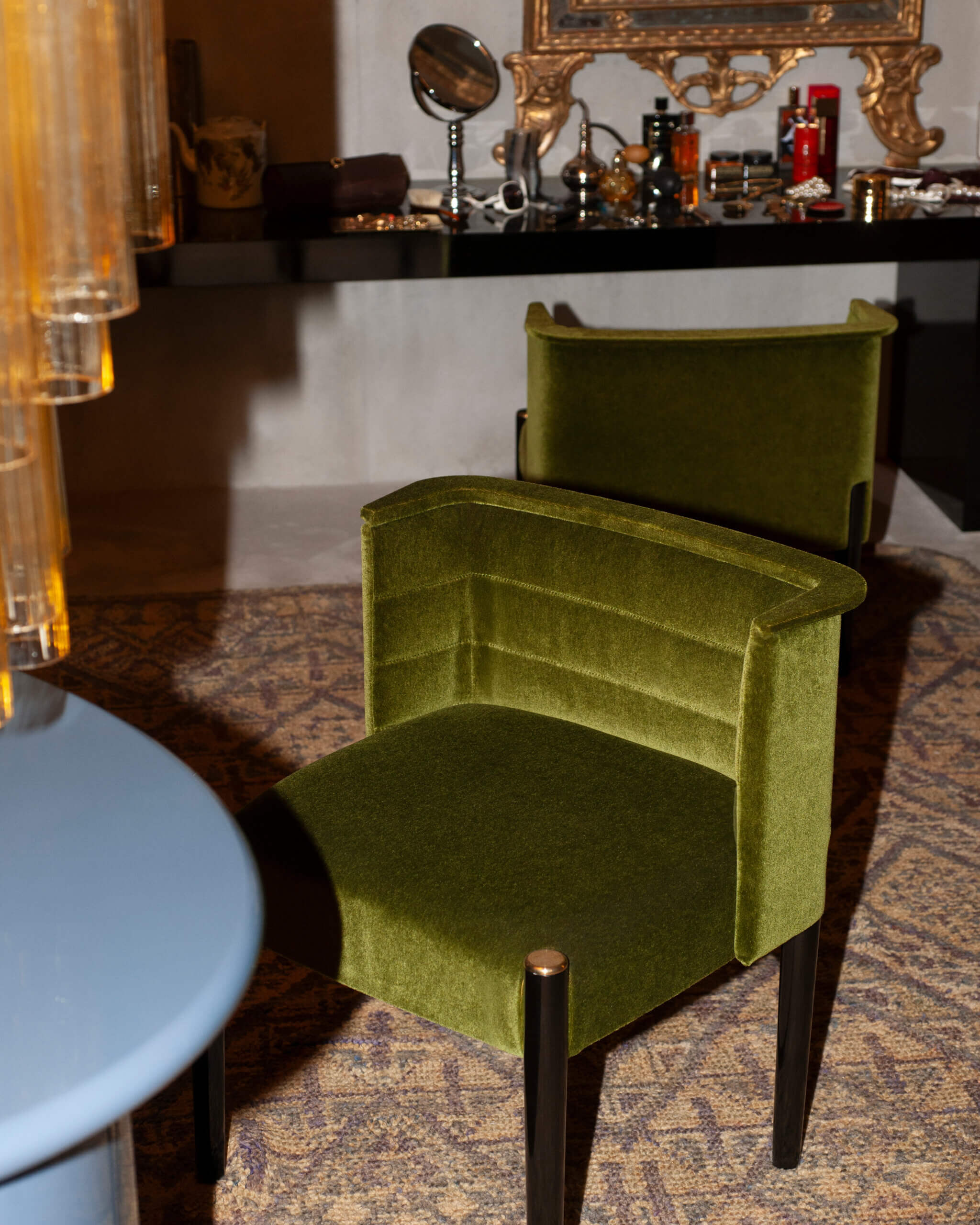 LORO PIANA 選用的質感極佳的雙層駱馬絨、燈芯絨、絲絨家具,在啡黃到淡李色之間泛起一層記憶的薄紗。