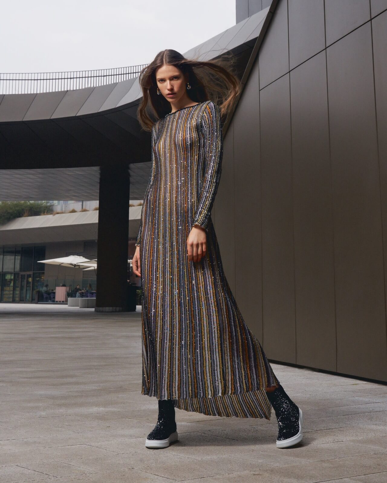 然而,疫情籠罩下,可能有很多人受黯淡的社會氣氛和心情影響而穿着顏色較簡約的衣服,時裝品牌為了迎合顧客口味,近兩季衣服系列的顏色也相對保守。而 MISSONI 就一如故我以鮮艷的針織顏色和閃爍的珠片作為這個系列衣服物料,為的就是希望人們能夠在陰沉的氣氛環境下繼續保持生活的優雅和活力,並且對未來繼續保持希望。