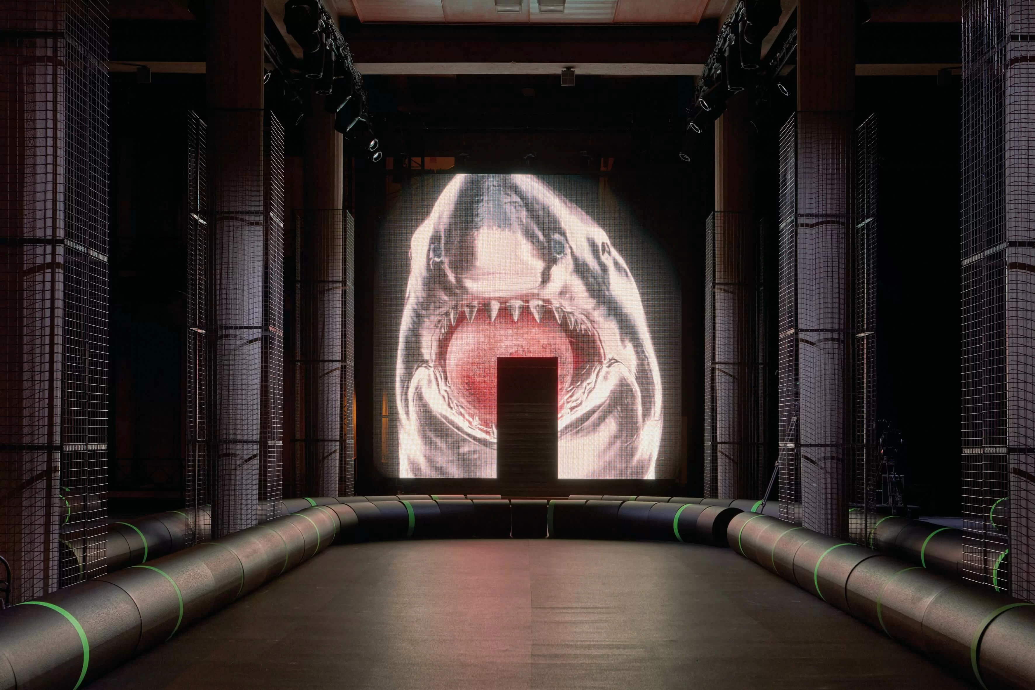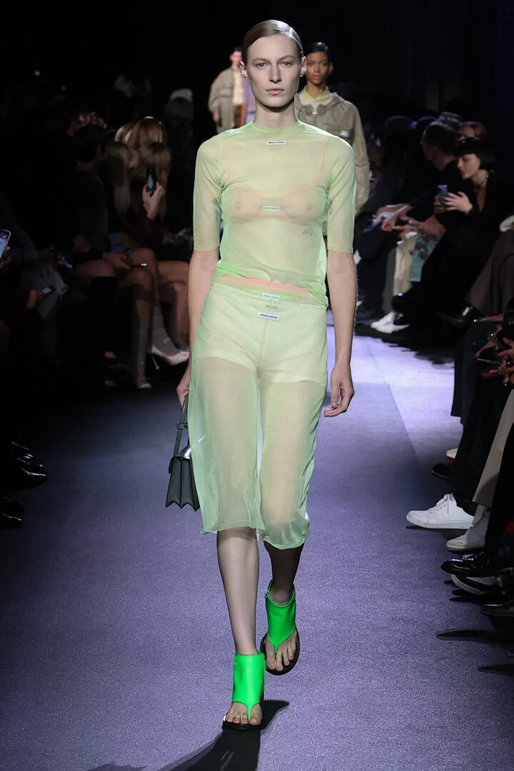 以上是來自藝術家 SHUANG LI 李爽為 MIU MIU 2023春夏時裝秀創作的旁白內容節錄。系列IN TRANSLATION以時裝把反應詮釋為現實,強調所有概念在傳譯的過程中皆會變異成新的形態,每個訊息都只是一種傳譯,沒有什麼被真正翻譯。而 SHUANG LI 的作品橫跨多個媒介,與 AMO 呈現水底電子基建的場景、與 LINYOU XIE 合作虛擬實景的動畫,還有由 ELI OSHEYACK 創作的音樂,嘗試探索有形與無形之間的困惑,透過機械傳送的情感的合成本質、轉瞬間到達的信息背後有著環繞全球的基建支撐、因電子故障沒被送達的信息到了哪裏等等,所有因溝通而產生的落差。