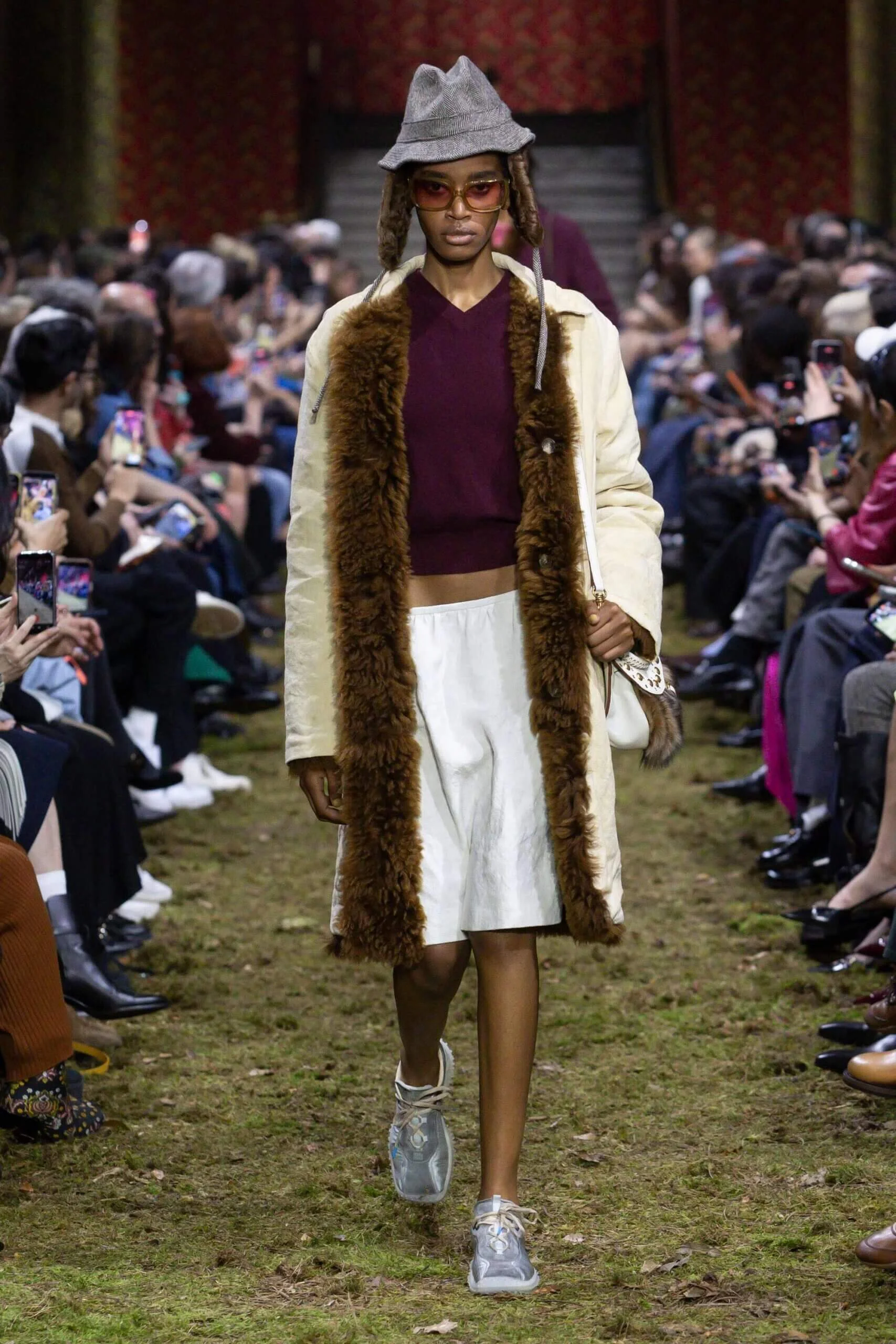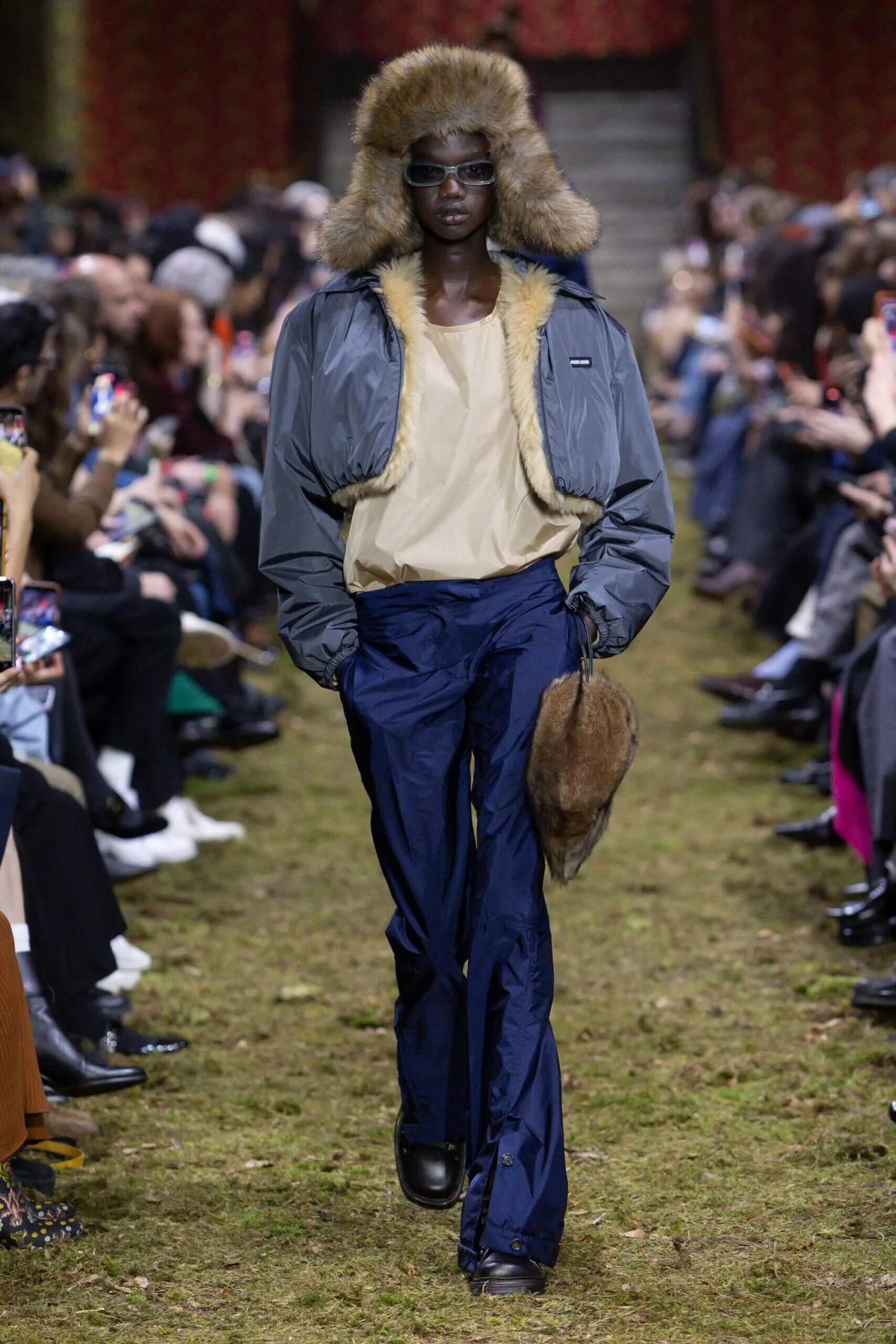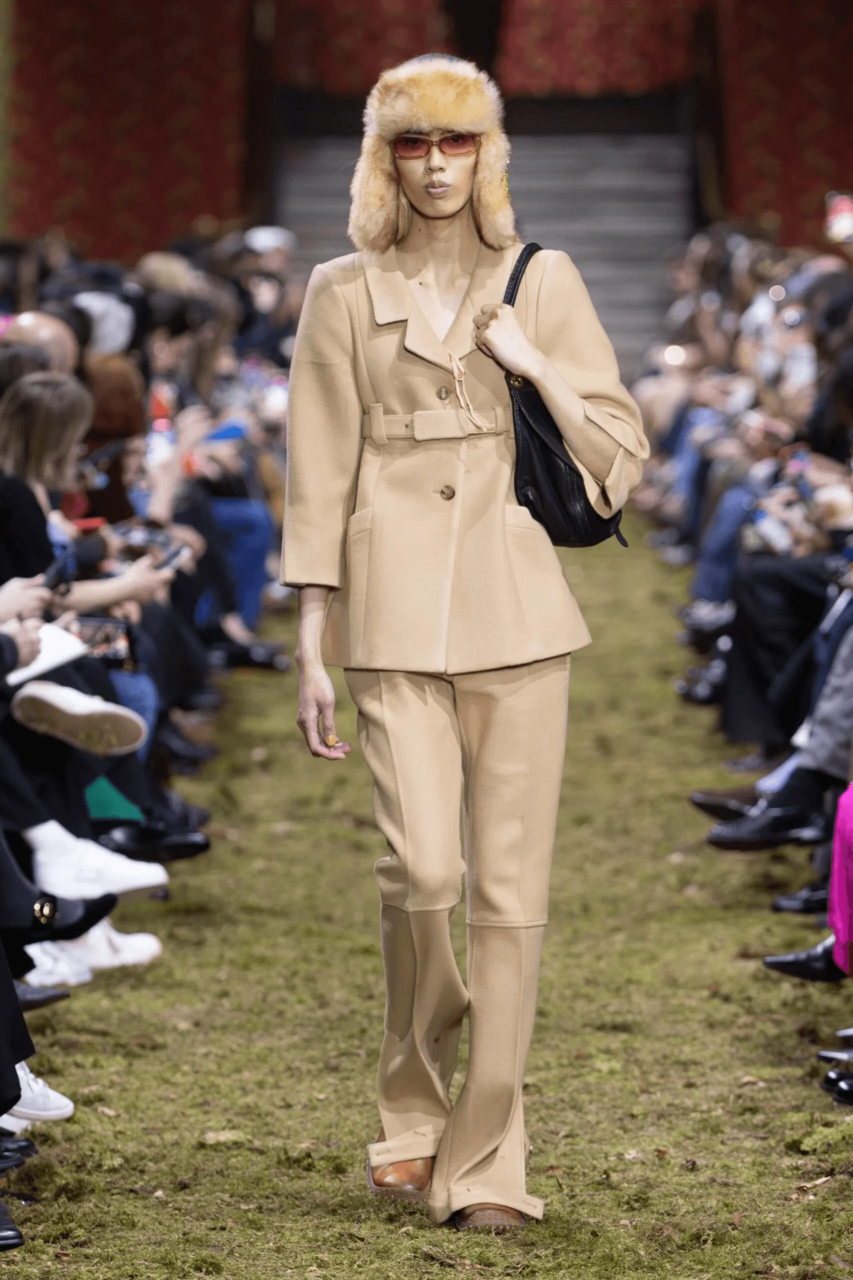 在巴黎時裝周的最後一天,MIUCCIA PRADA 以極簡姿態重新定義「身體自主權」來發表 MIU MIU 2026 秋冬系列。秀場選址 PALAIS D’IÉNA 富麗堂皇的殿堂,更把伸展台改造成一片草地,呼應自然意象。