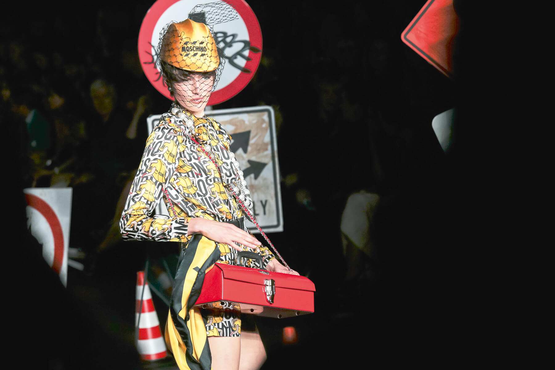 當編輯收到 Moschino 2016 春夏騷的工地警示牌邀請函 (並附上一頂安全帽),心情已經無比興奮。Jeremy Scott 果然沒有令大家失望,他把時裝表演場地變成工地,模特兒就像一個個 fashionable worker。設計師運用上世紀六十年代的典雅剪裁混合各種鮮艷的螢光色彩,並利用如漫畫式圖案打造出富卡通感的俏皮女裝,更特別的是這次他將道路標誌、工地警示牌以及清潔用品等加入設計中,甚至連著名美國卡通飛天小女警也變身成為模特兒身上的服裝與手袋,令人會心微笑。