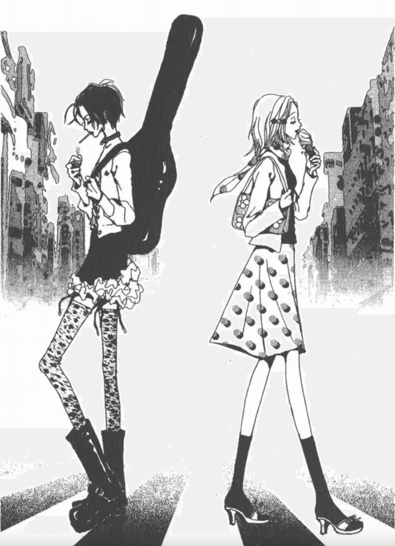 我們從小看書、電視劇和電影,不斷接受故事中男女主角對愛情忠貞不渝的歌頌及理想的堅持。初次接觸《NANA》時,大約是在中三,當時宅女友人極力推薦,說是什麼最佳戀愛範本。青春時期,對愛情的幻想是一心一意,是一生一世。雖不求能擁有電影《鐵達尼號》(TITANIC) 中 ROSE 和 JACK 那樣淒美愛情 (或許我只是想活久一點),只求能遇上能借我抄功課的學霸男友「江直樹」。所以對於《NANA》中描繪的多角關係「戀愛範本」,我帶着說不清的抵觸感。