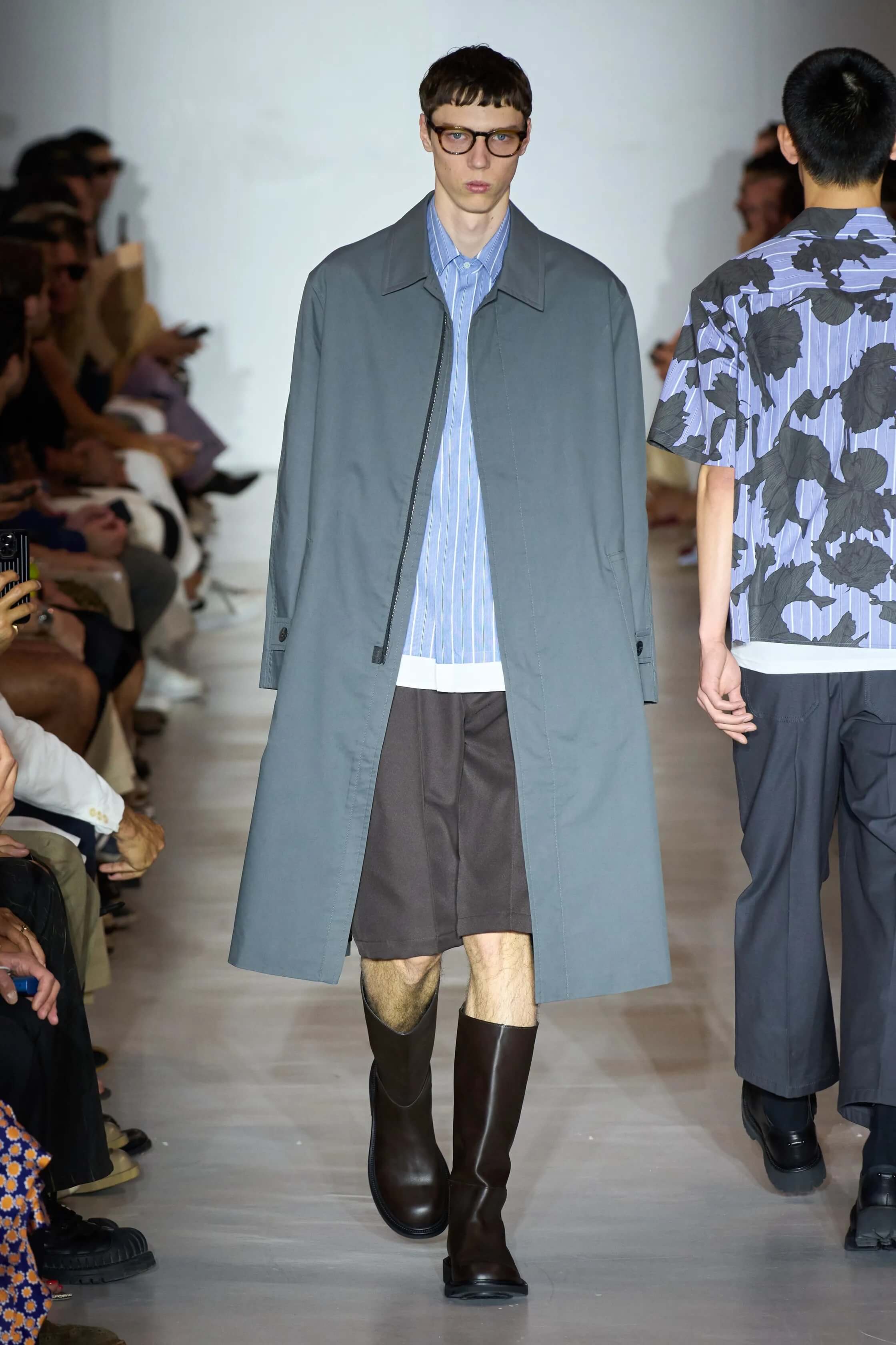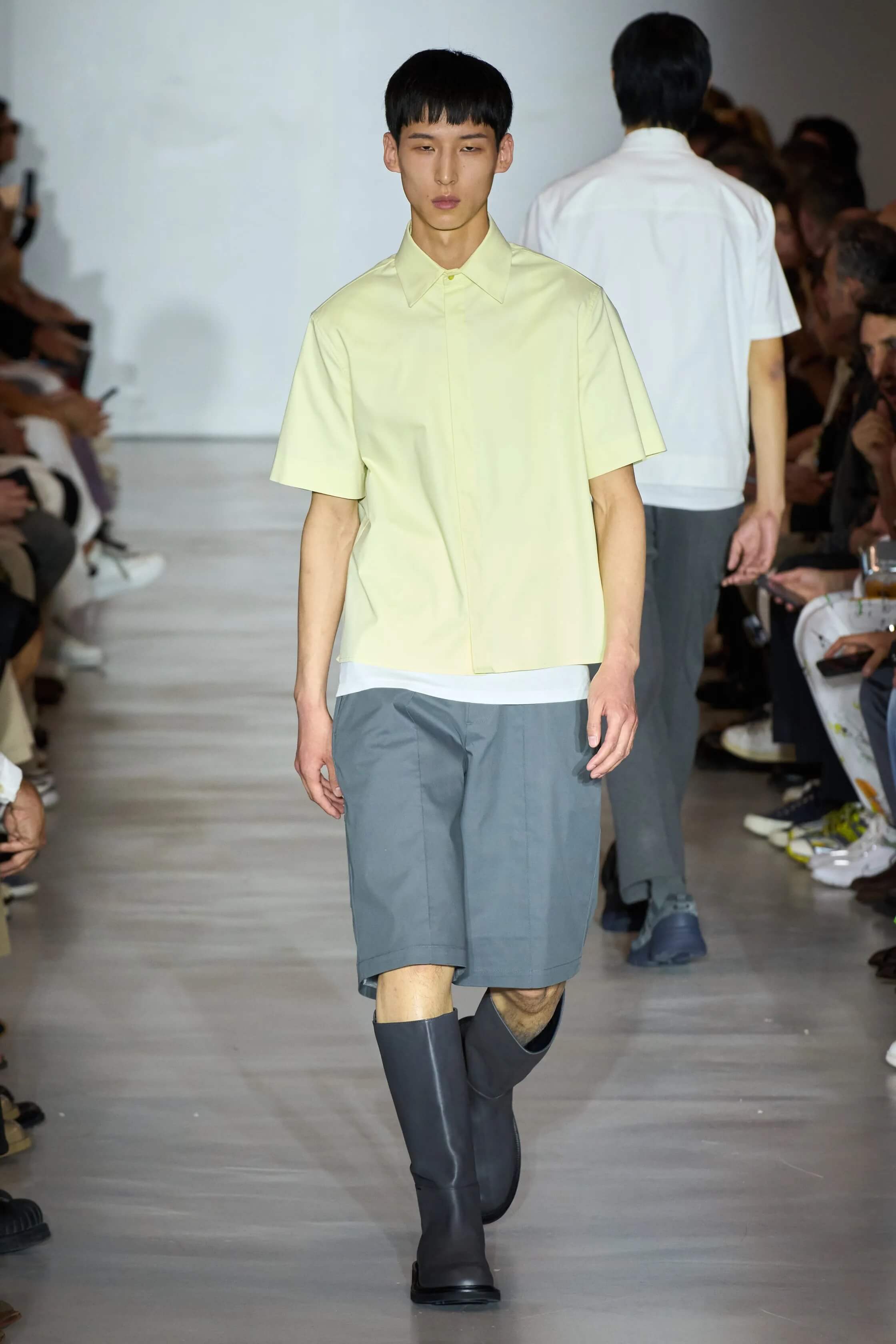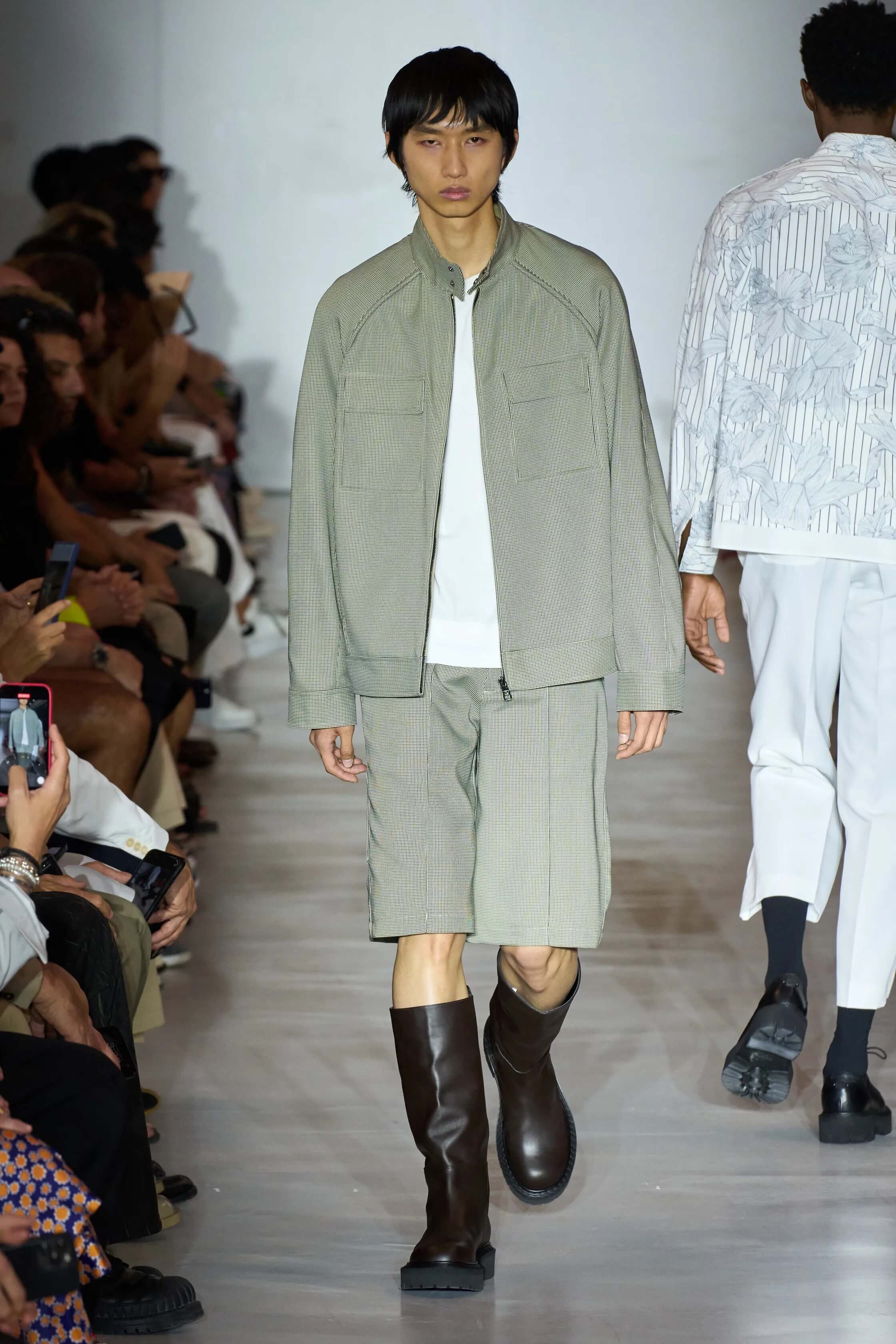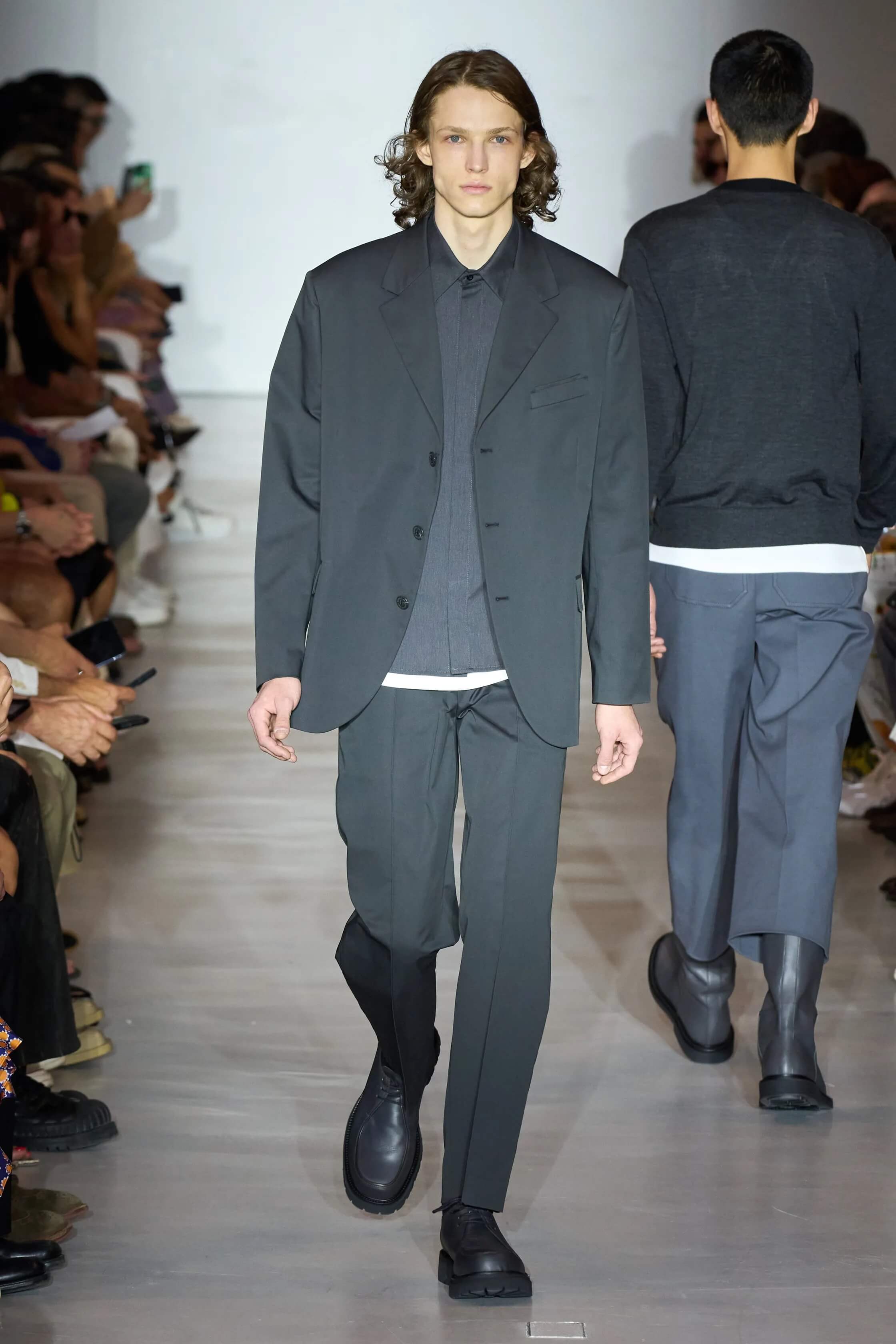 NEIL BARRET SS24 的設計植根於工作服的概念,特別是工業制服,作為其概念基石。這些單品經過精心設計和不斷並置,在功能性方面表現出色之餘,同時採用更加適合日常生活的設計理念。透過使用高品質物料,重新設計其顏色、比例和元素,轉而採用更具運動傾向和活力的顏色如淡綠色、淡黃色、淡藍色、灰色以及啡色,摒棄慣常使用的顏色,提升了這些單品的時尚前衛感,為春夏系列注入活力。